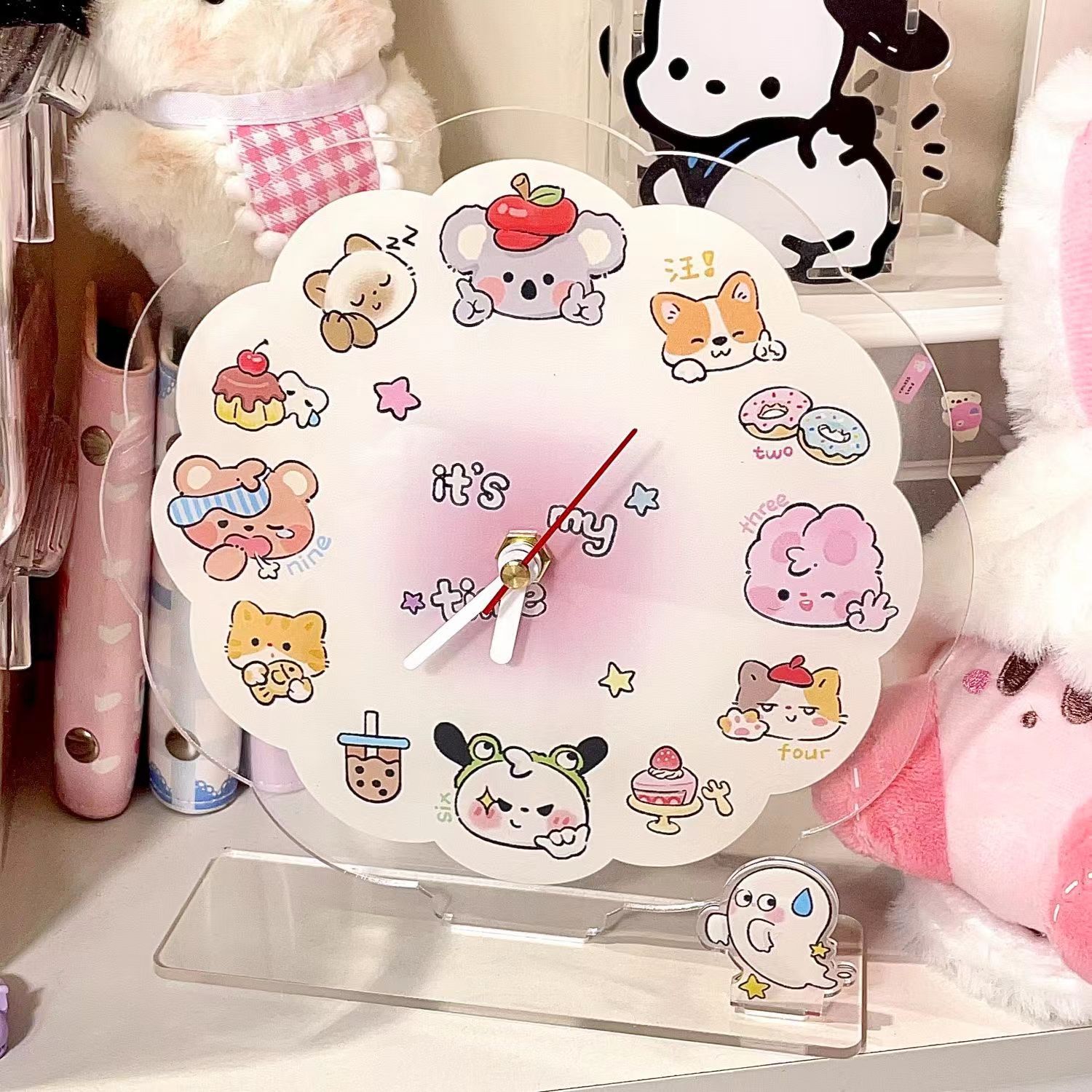 Krayon kartun kecil baru jam akrilik lucu kreatif sederhana desktop liontin terpasang di dinding ins tampilan tinggi