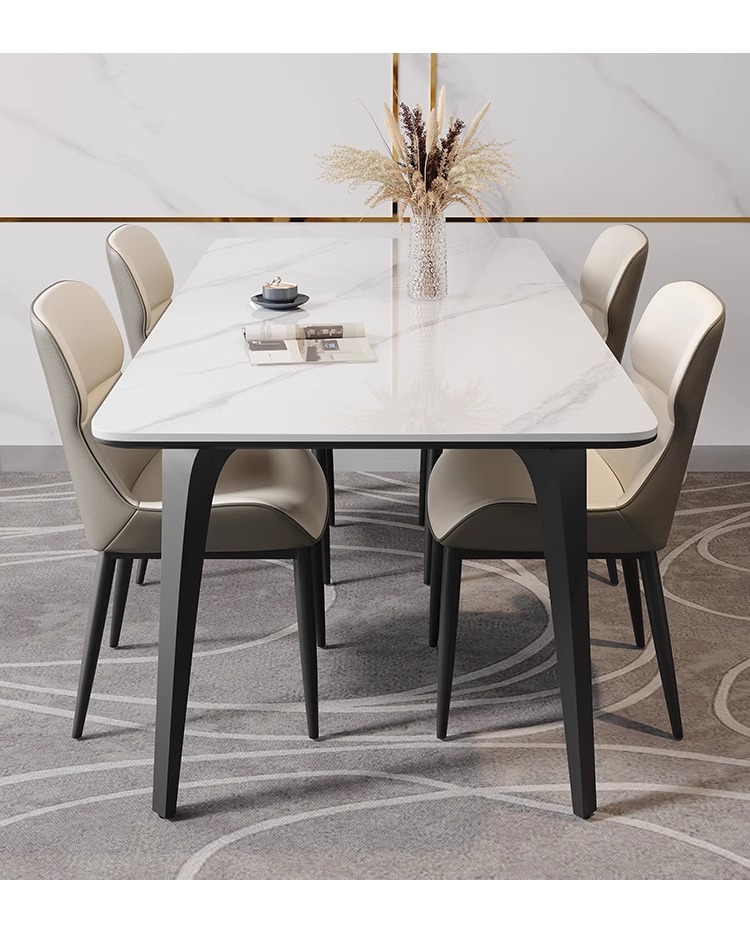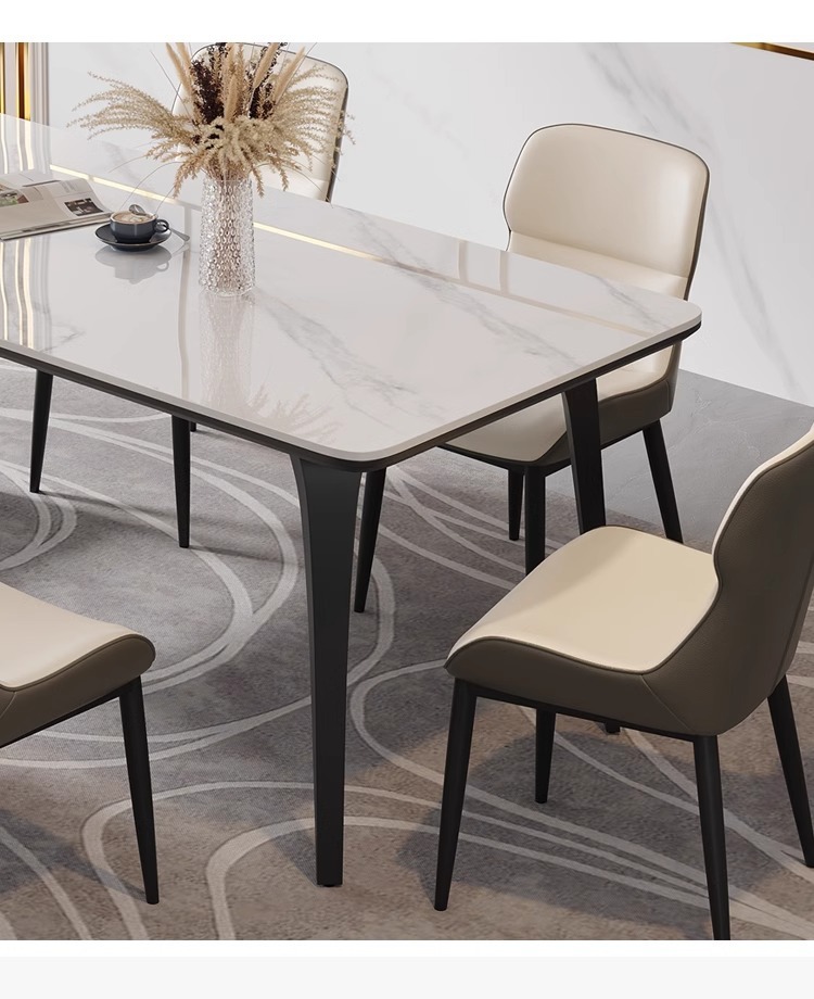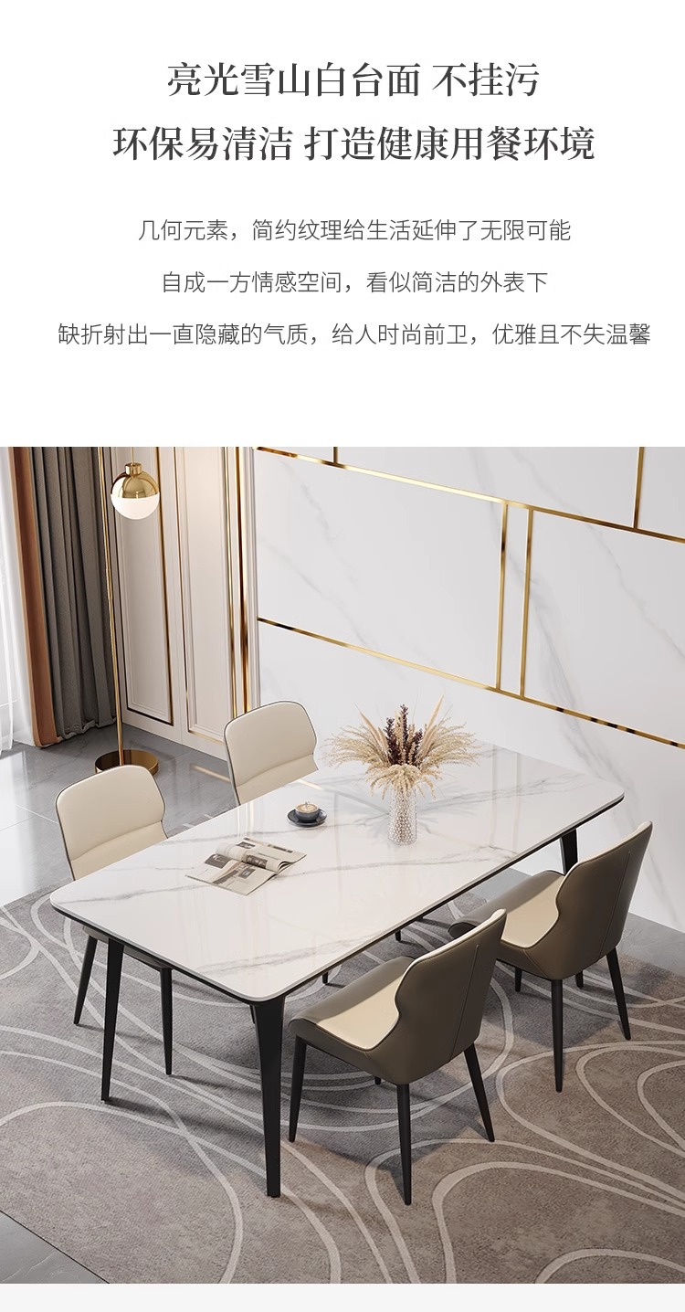 Meja Makan Papan Batu Mewah Ringan Gaya Italia Meja Makan Persegi Panjang Sederhana Modern Tipe Rumah Tangga Kecil Meja Makan Papan Batu Kaki Gajah