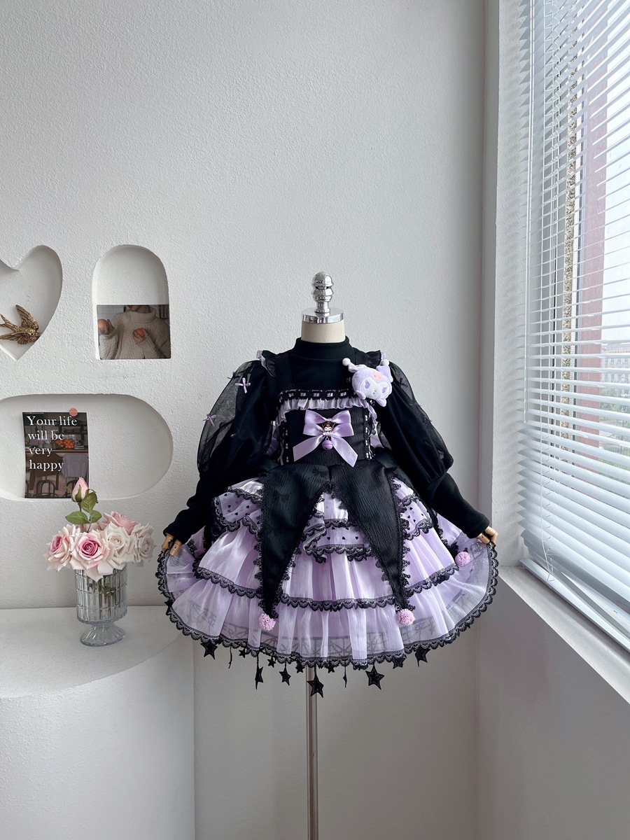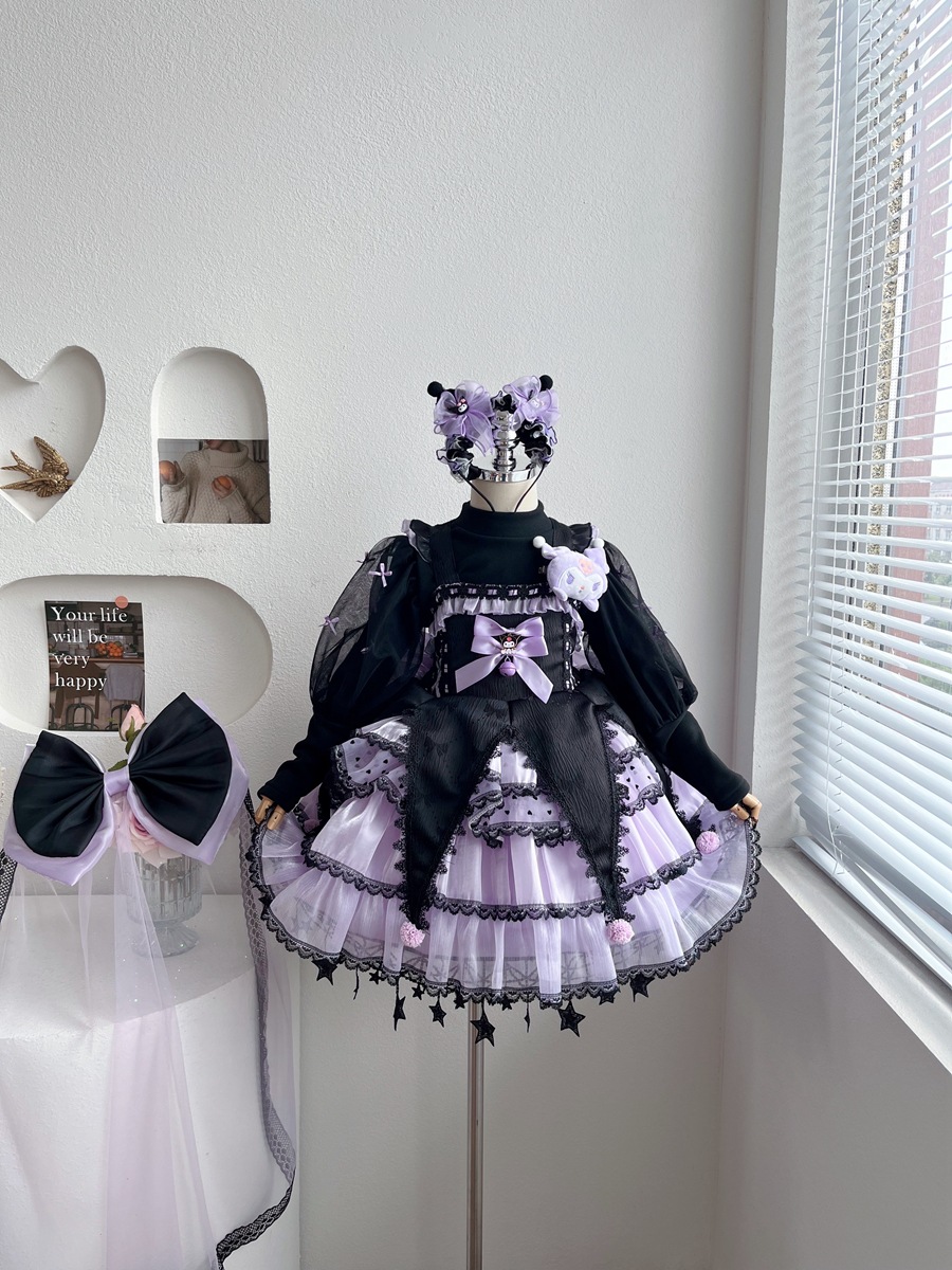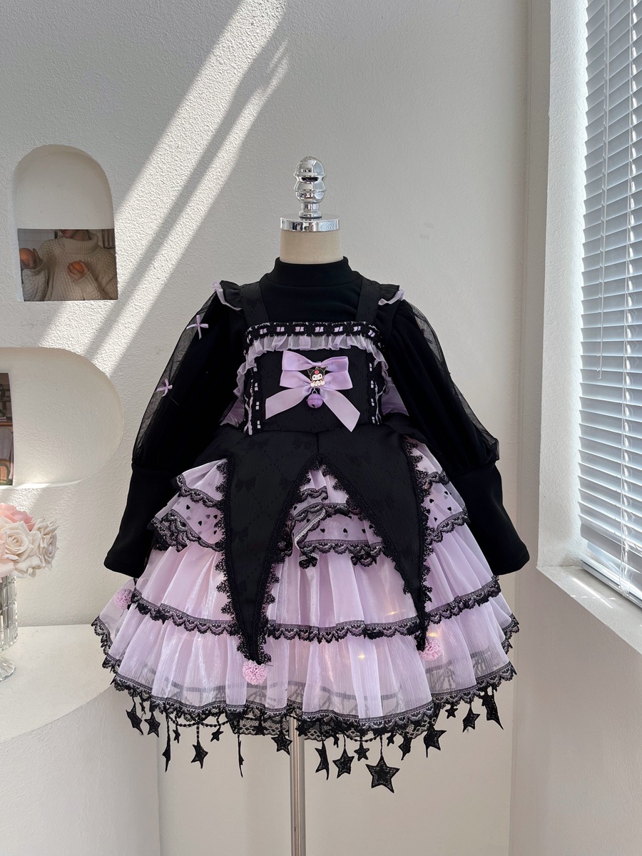 外贸童装女童连衣裙秋冬季洋气卡通库洛米公主裙蓬蓬裙子洛丽塔