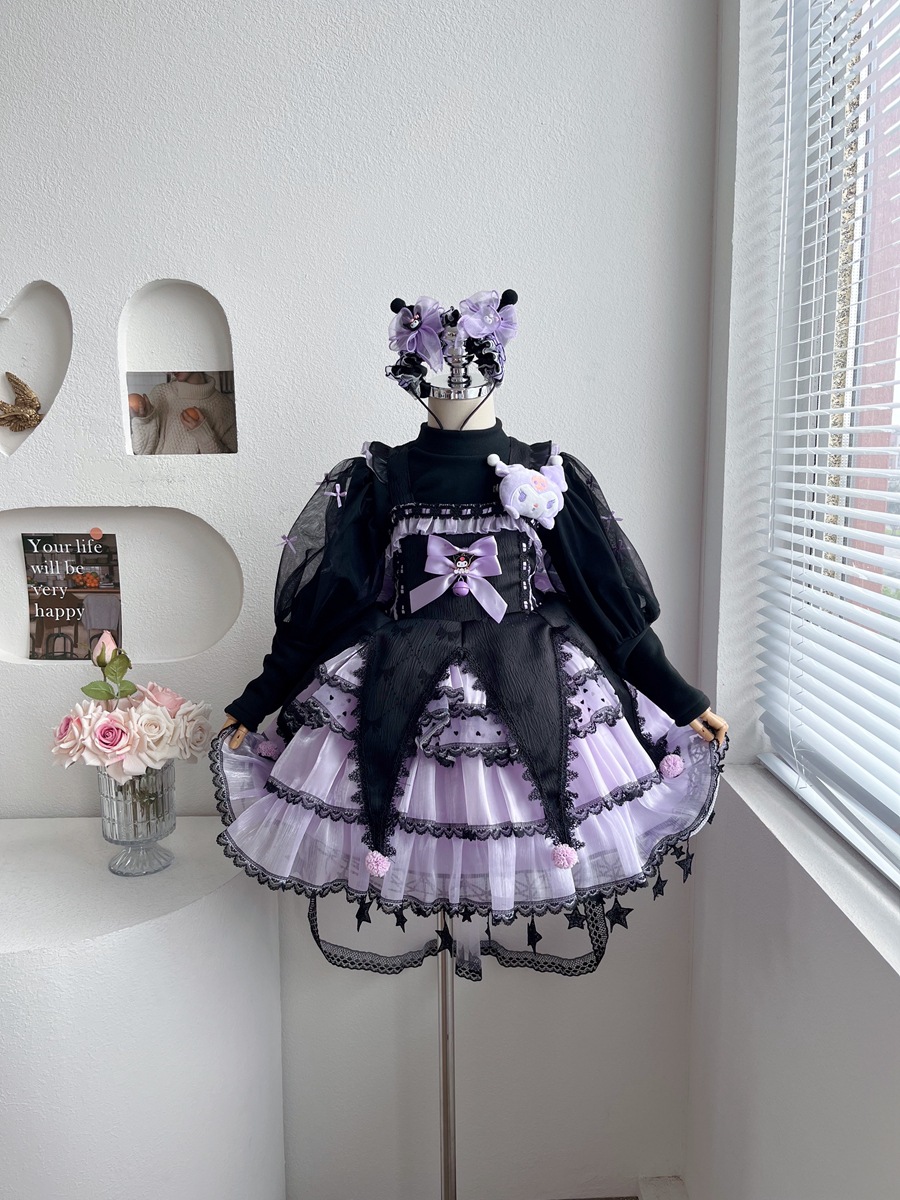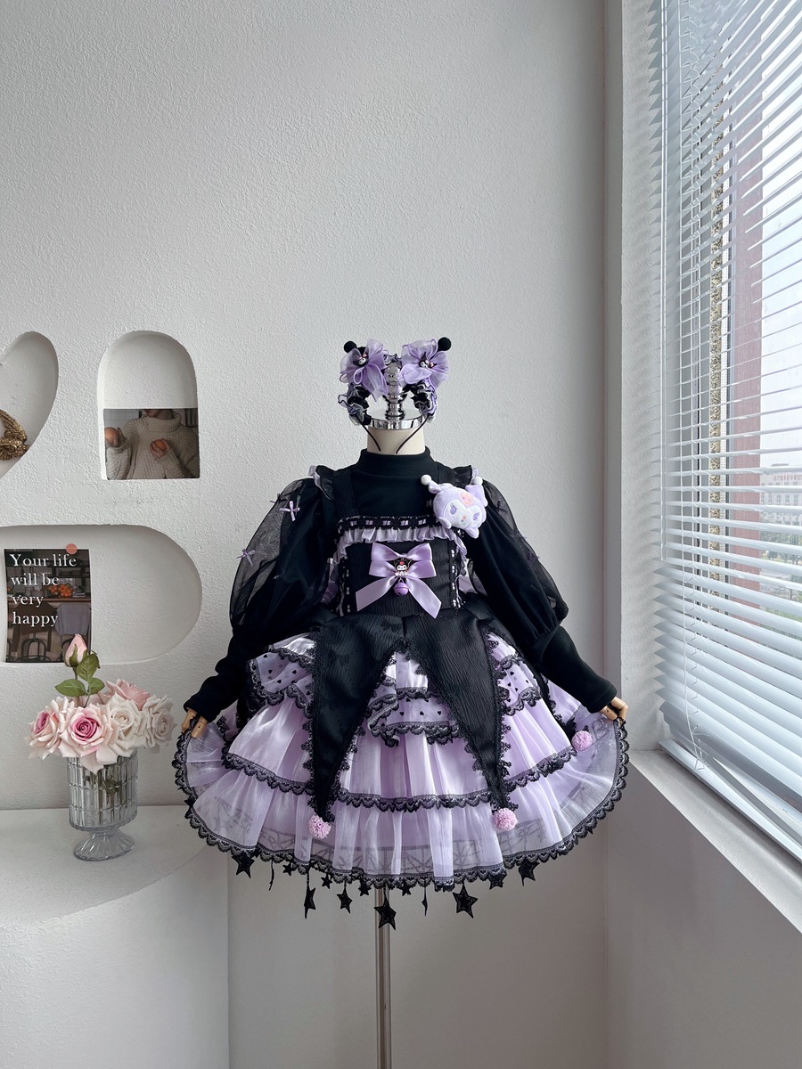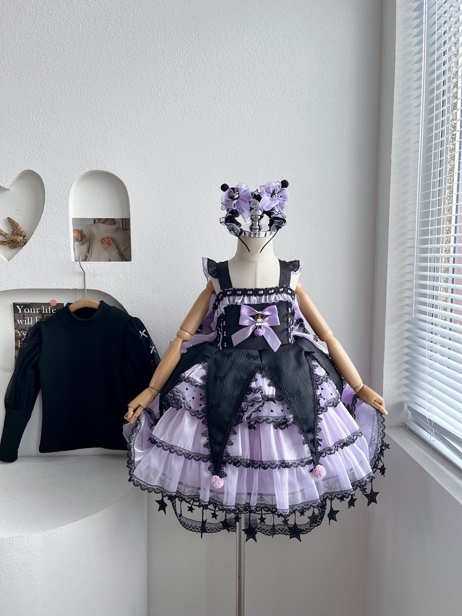 外贸童装女童连衣裙秋冬季洋气卡通库洛米公主裙蓬蓬裙子洛丽塔