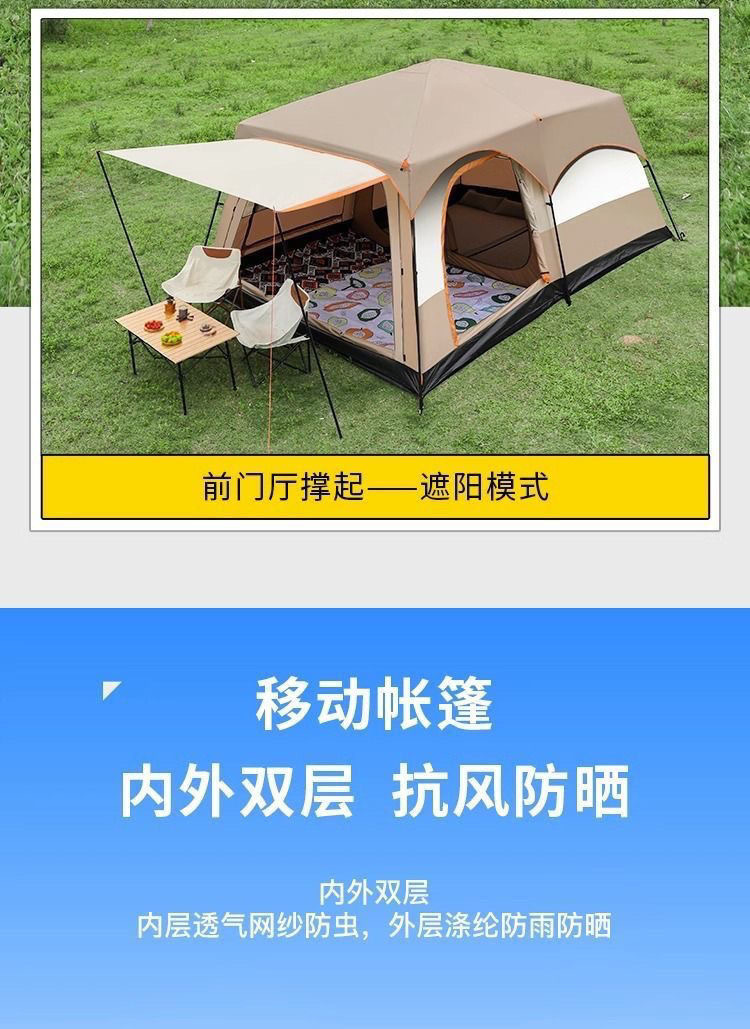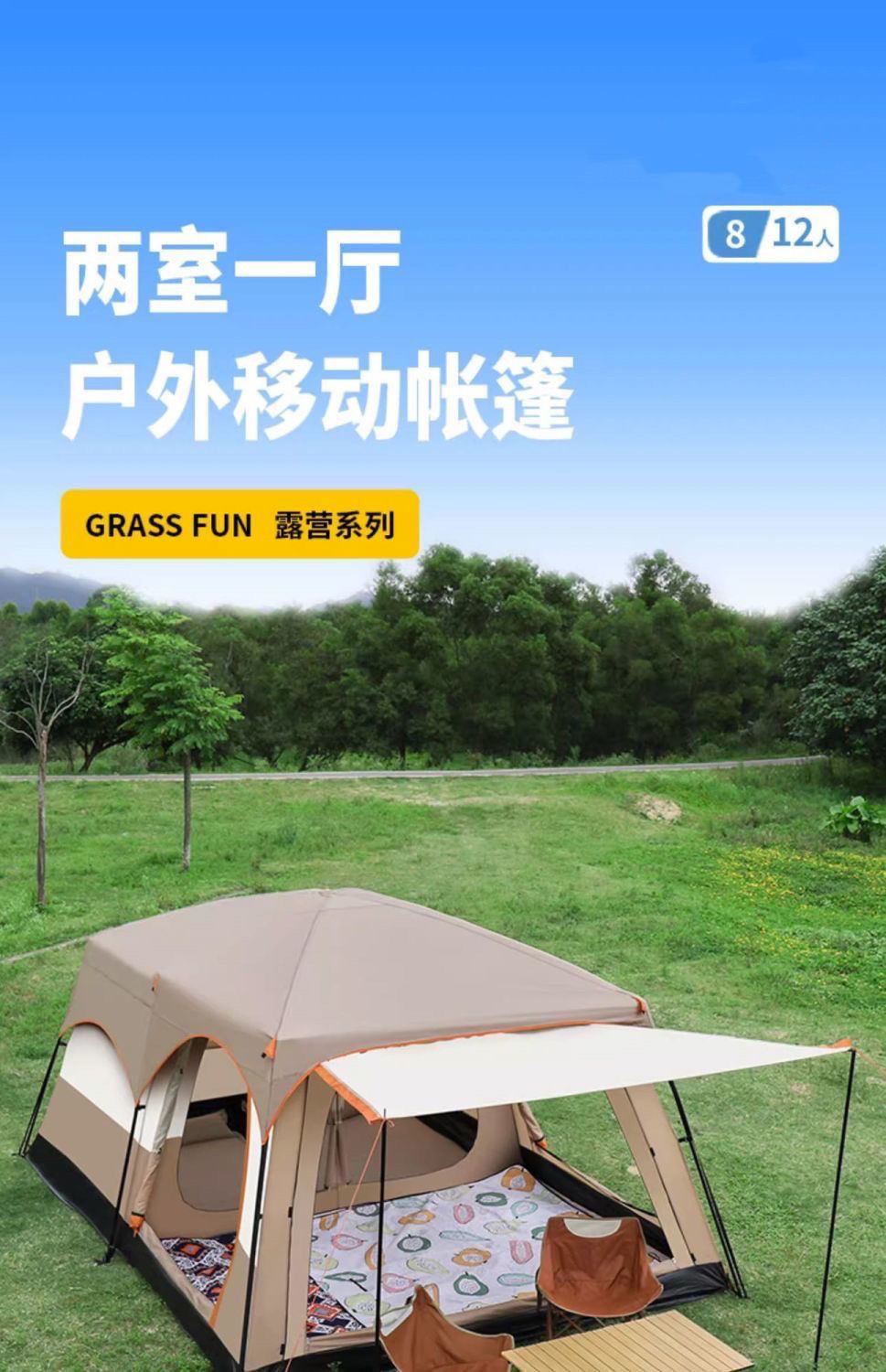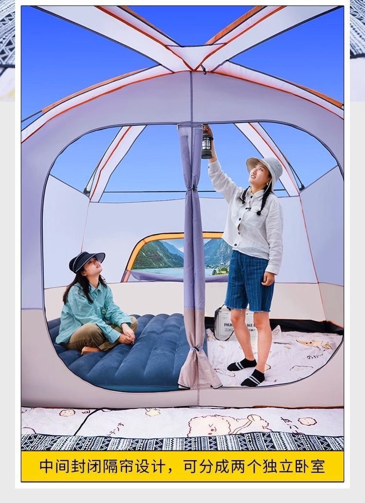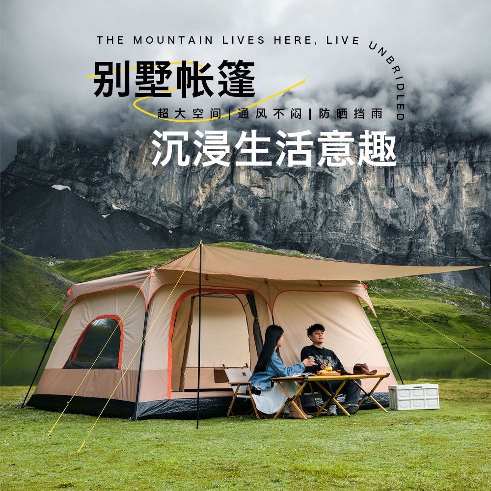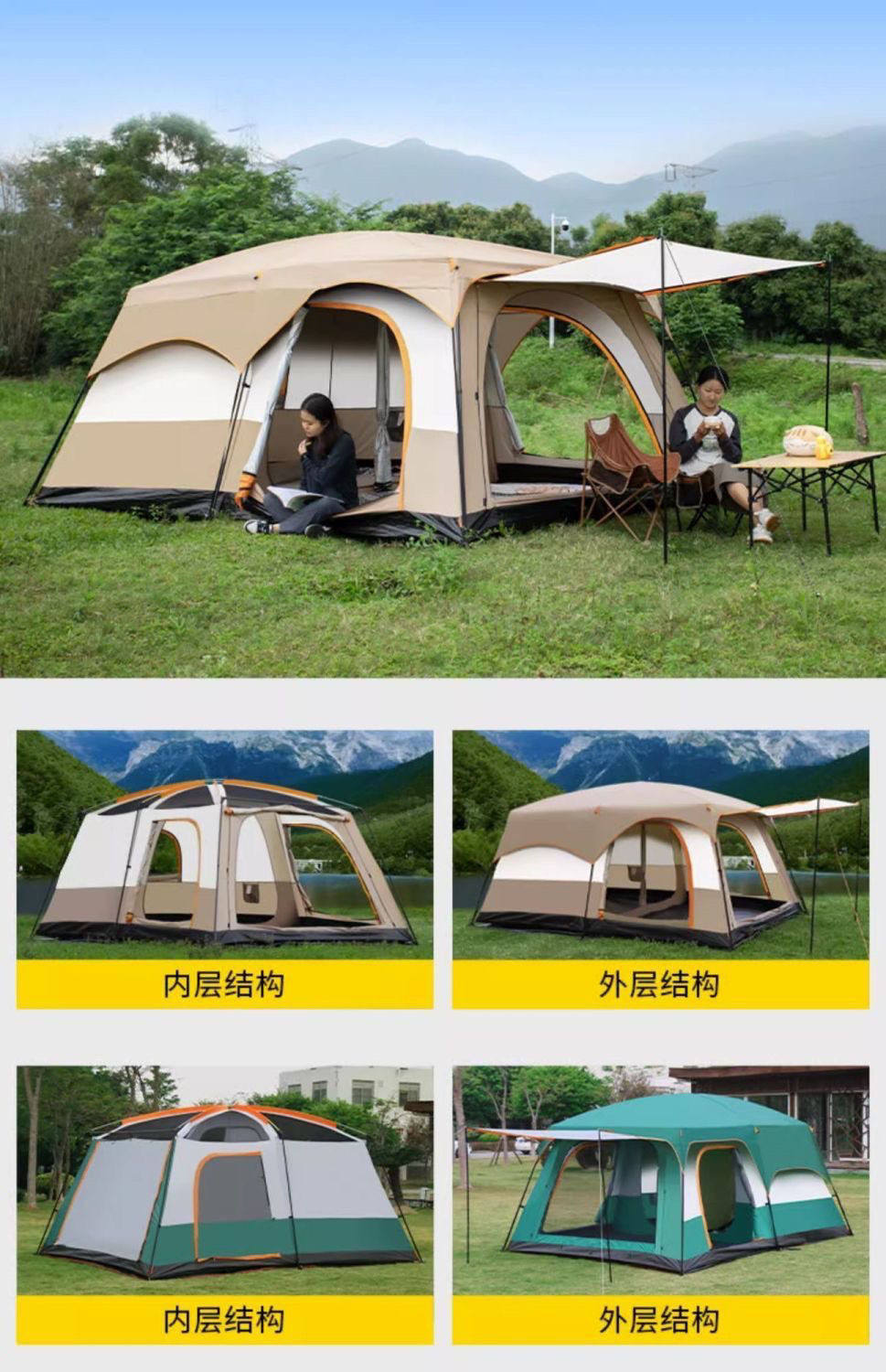 Produsen grosir tenda luar ruangan dua kamar dan satu ruang tamu 4 orang 8 orang 10 orang multi-orang berkemah tebal tahan hujan tenda berkemah peneduh matahari.