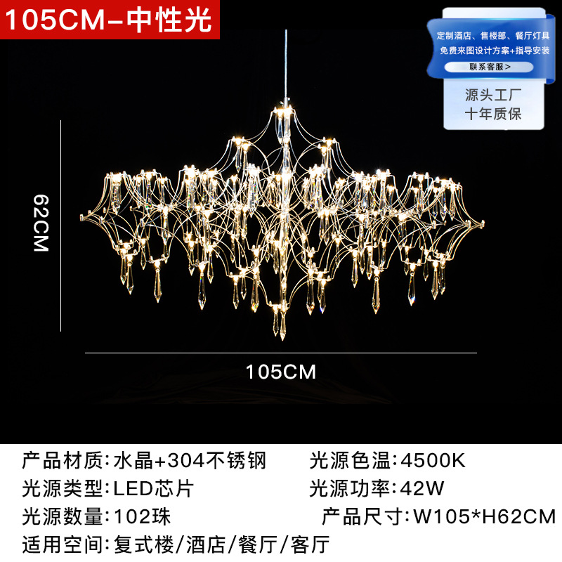Lampu gantung kristal Perancis, lampu kubus LED ruang tamu kamar tidur ruang makan bangunan dupleks mewah post-modern cahaya