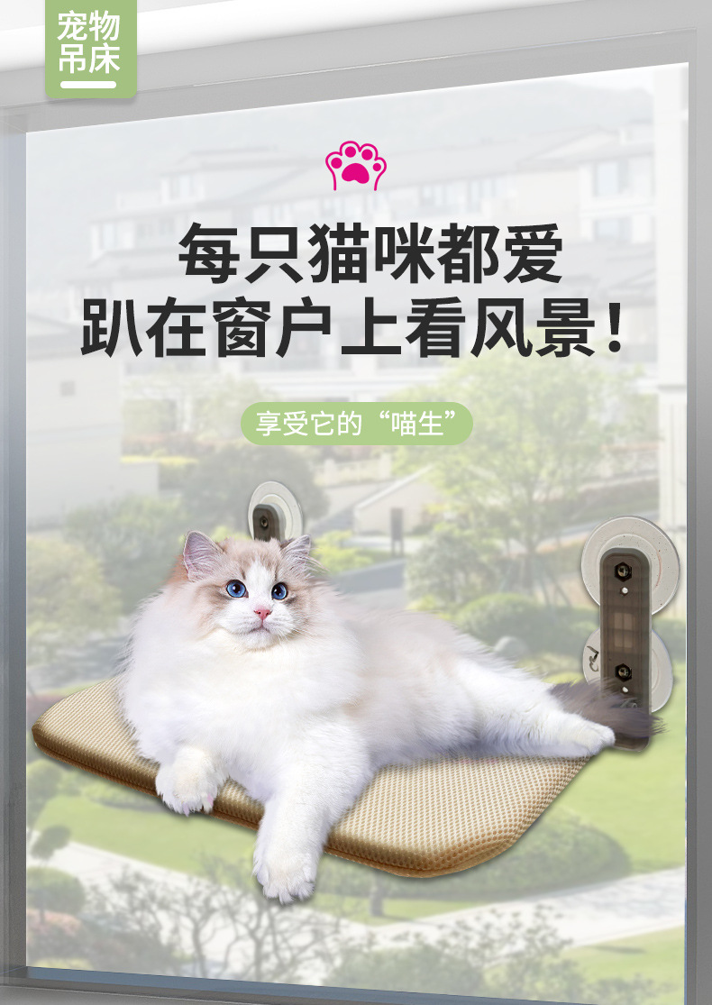 Peralatan Kucing Tempat Tidur Gantung Kucing Balkon Dapat Dilipat Baru Cangkir Isap Kuat Tempat Tidur Gantung Jendela Gantung Kucing Gemuk