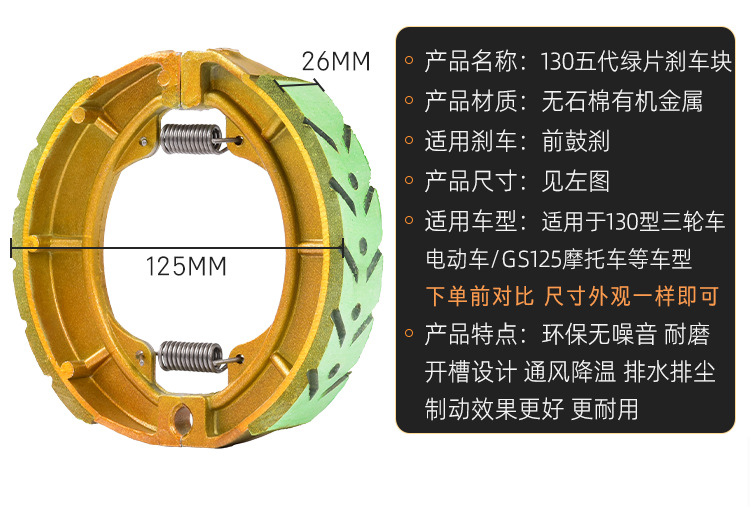 Rem depan dan belakang mobil listrik 110 130 sepatu rem blok CG125 bantalan rem sepeda motor 50 90 80 blok rem drum