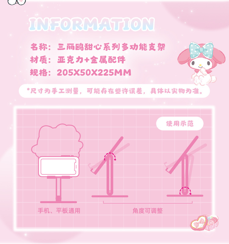 三丽鸥库洛米手机支架桌面懒人平板支撑架折叠手机架升降伸缩直播