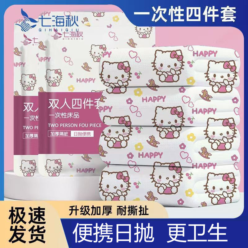 Sarung Selimut Seprai Sekali Pakai Hotel Sarung Bantal Sarung Tiga atau Empat Set Ekstra Tebal Seprai Perjalanan Perjalanan Tunggal Dua Orang