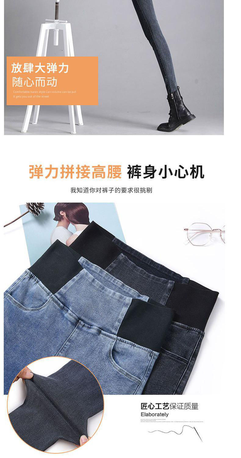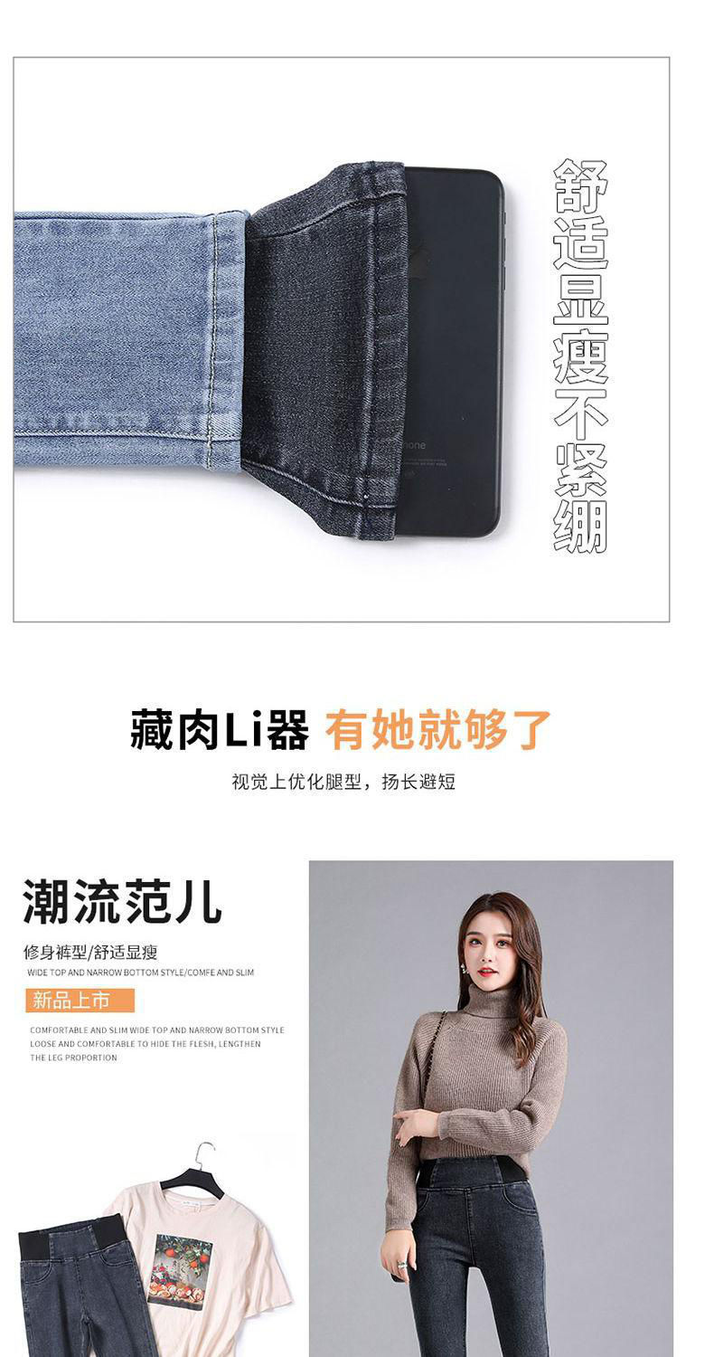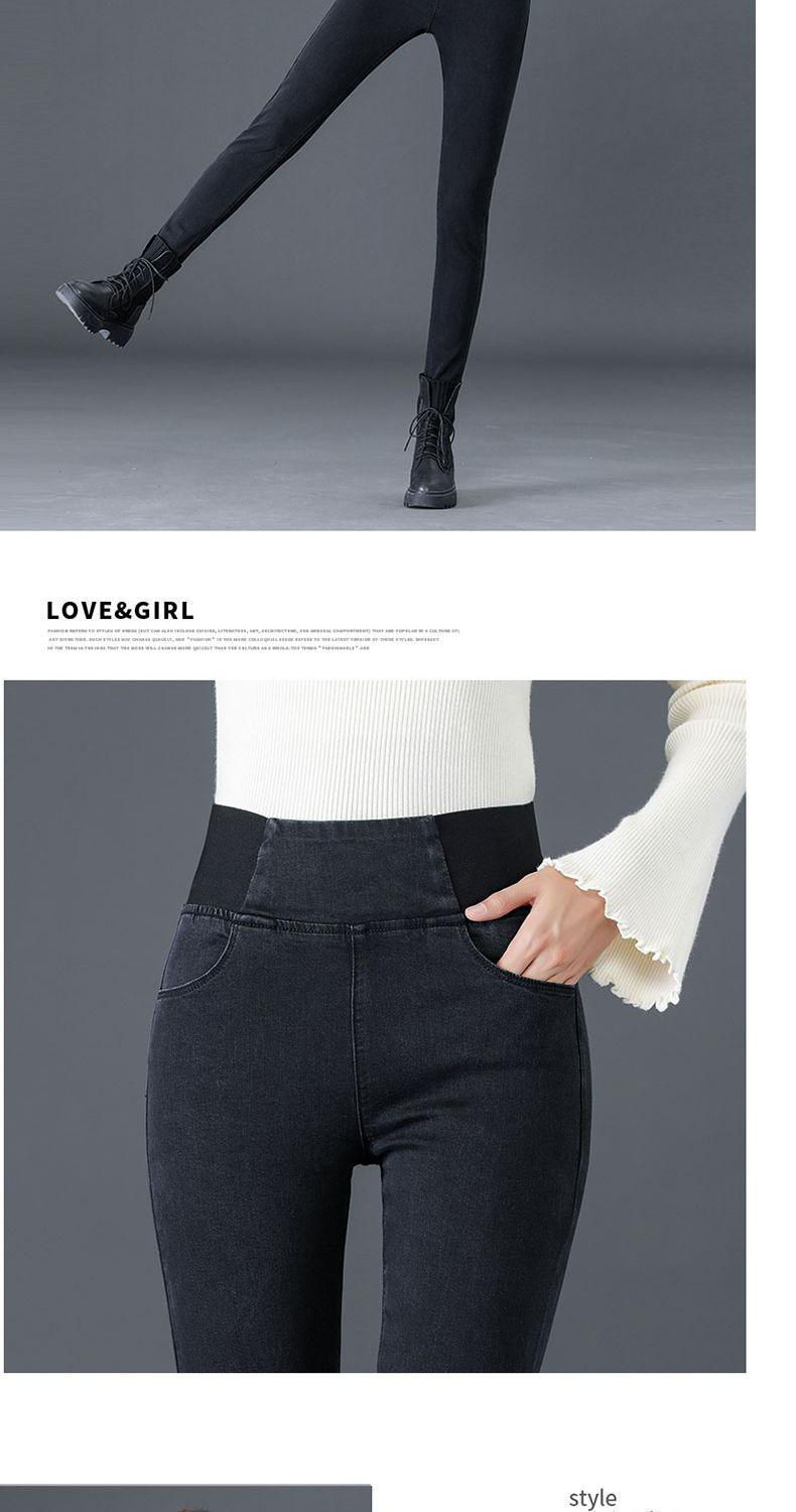 Celana jins pinggang elastis wanita, celana jins pinggang tinggi berlapis bulu, elastis, ukuran besar, pakaian luar musim gugur dan musim dingin, celana pensil ikat perut