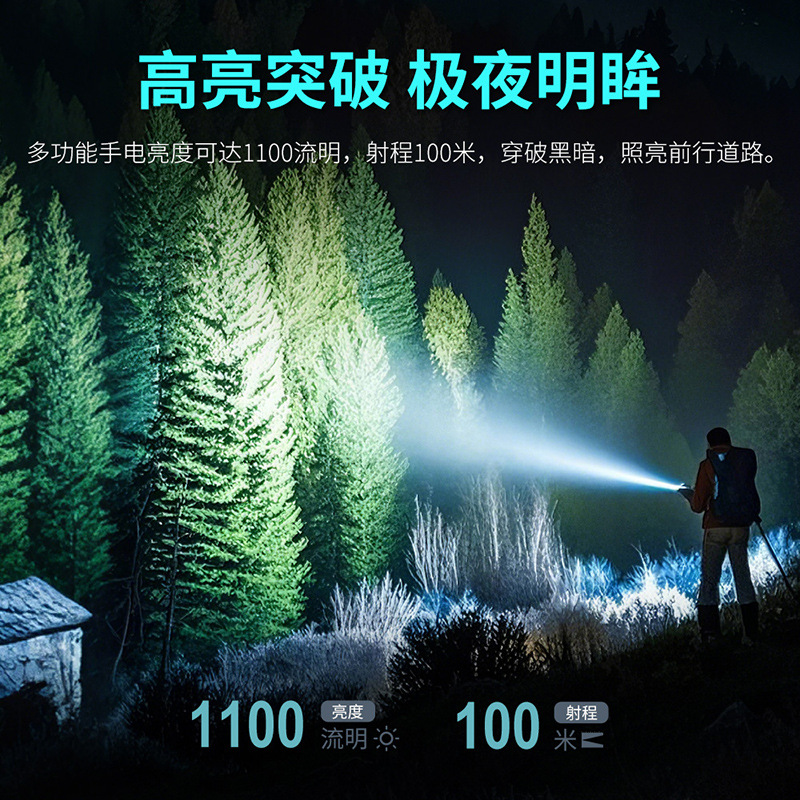 工作模式:极亮模式(双击左侧开关-极亮-长按关闭)1100LM