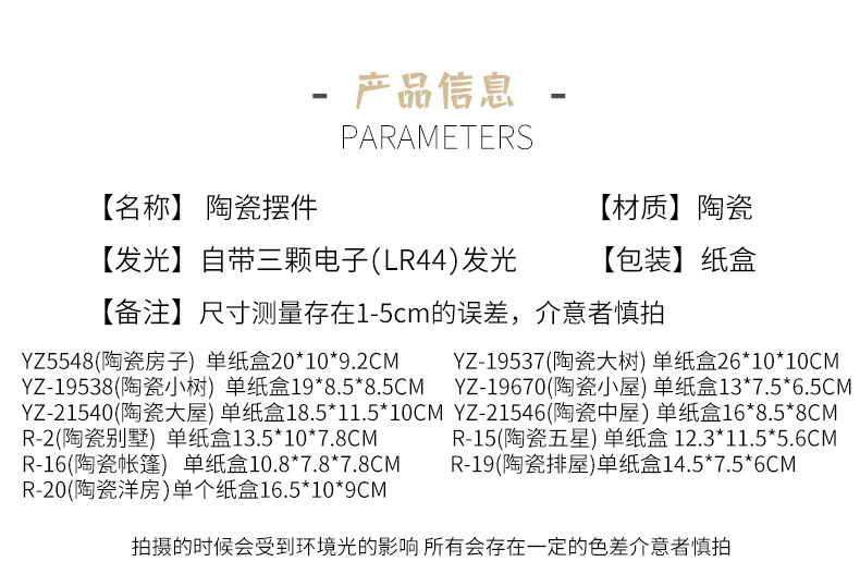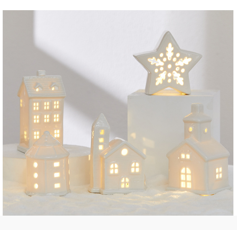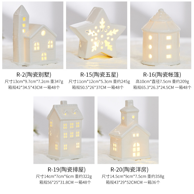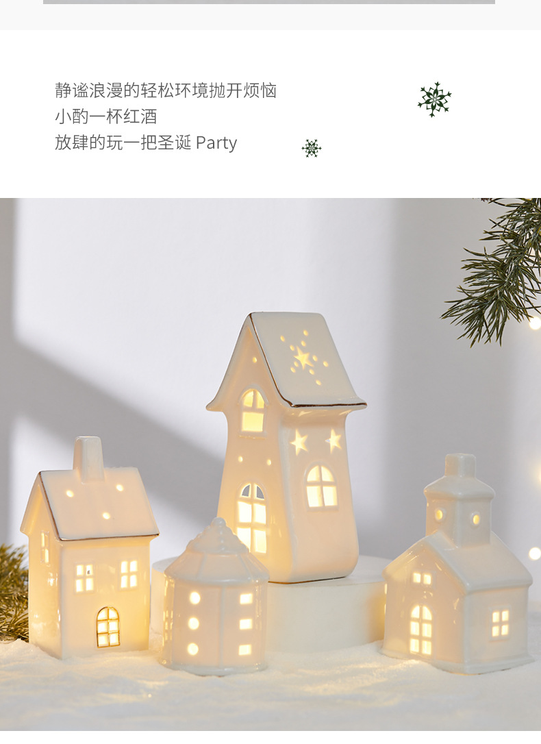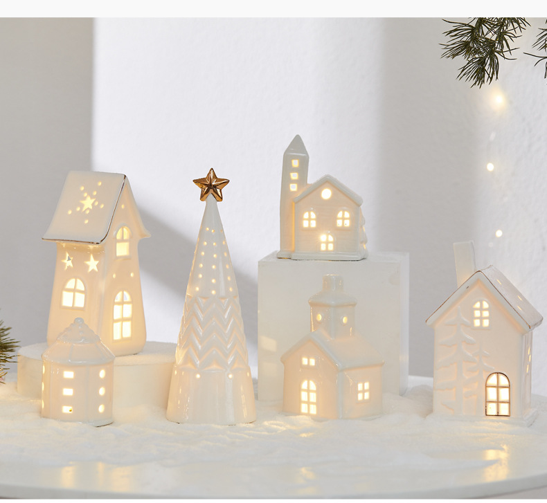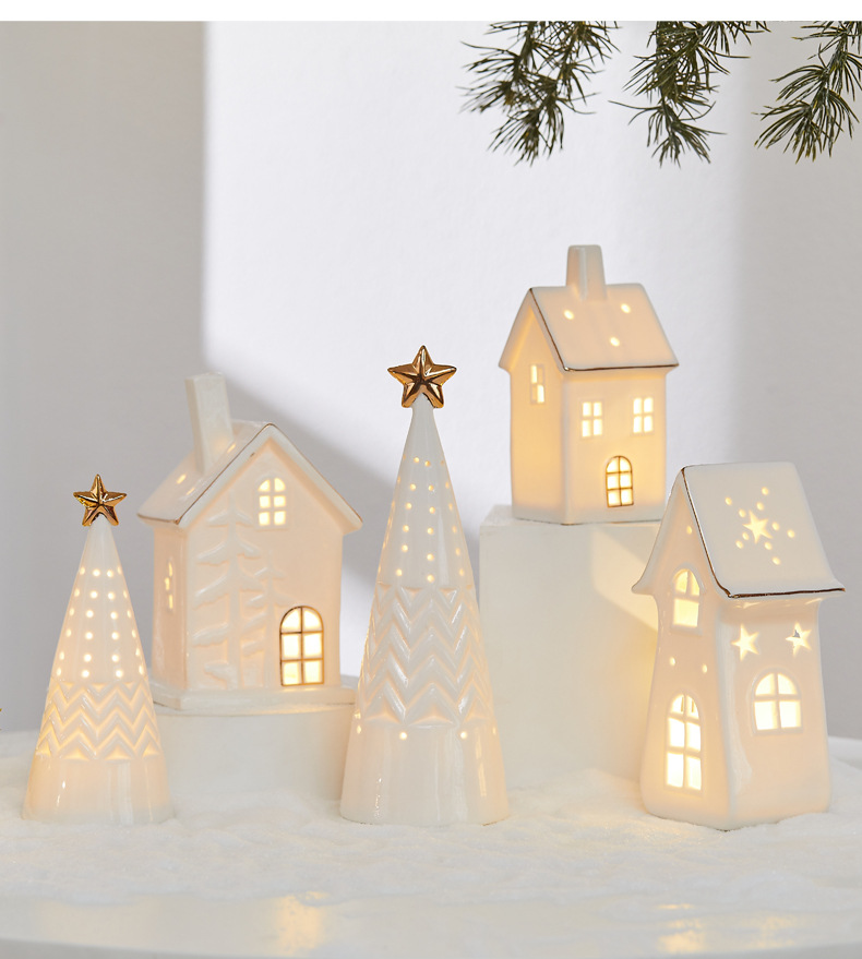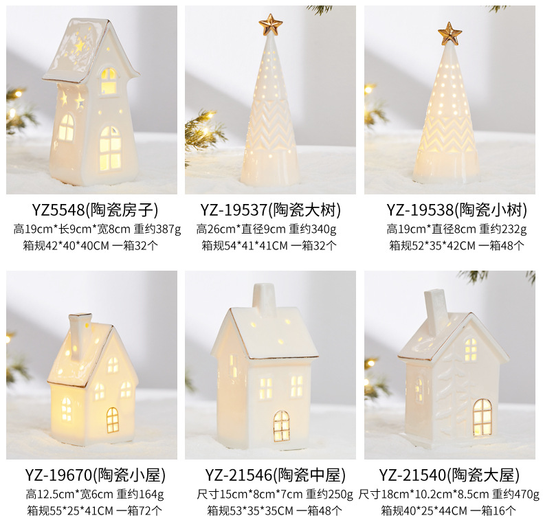 圣诞陶瓷发光圣诞树小屋桌面家用陶瓷摆件场景布置道具圣诞节礼品