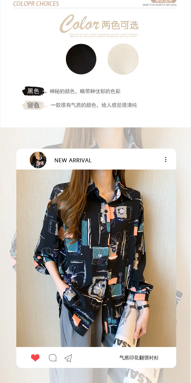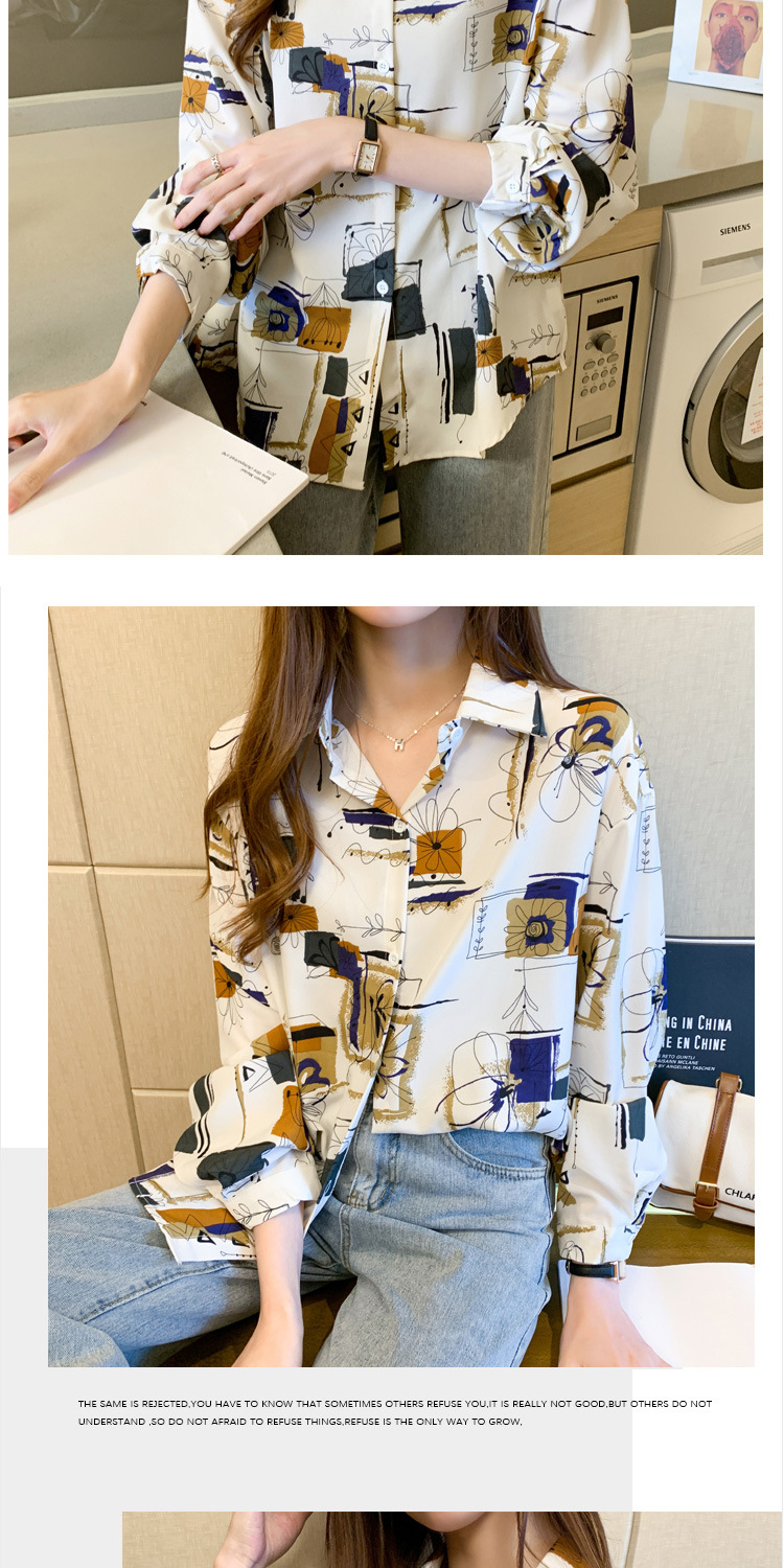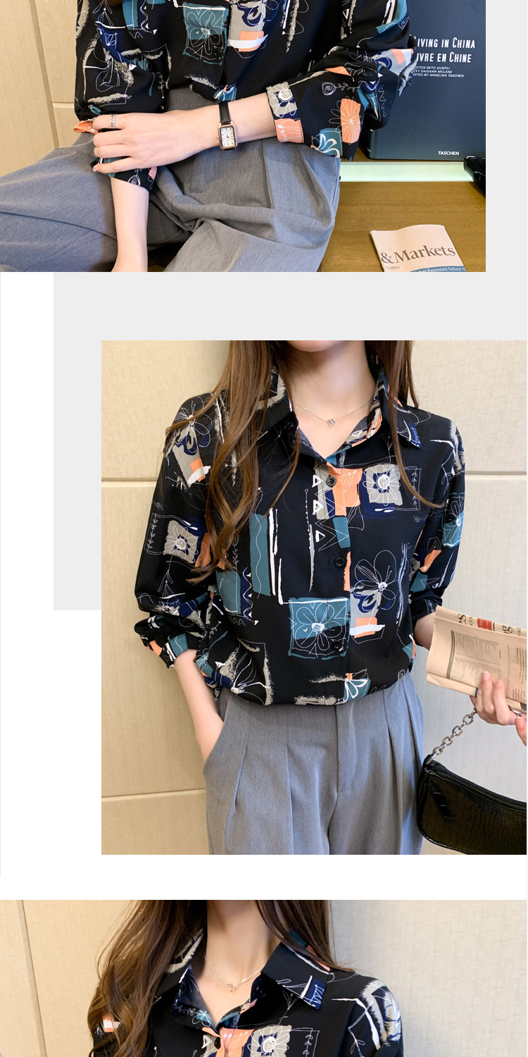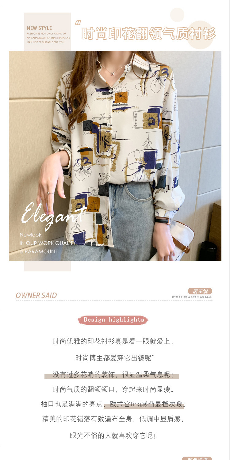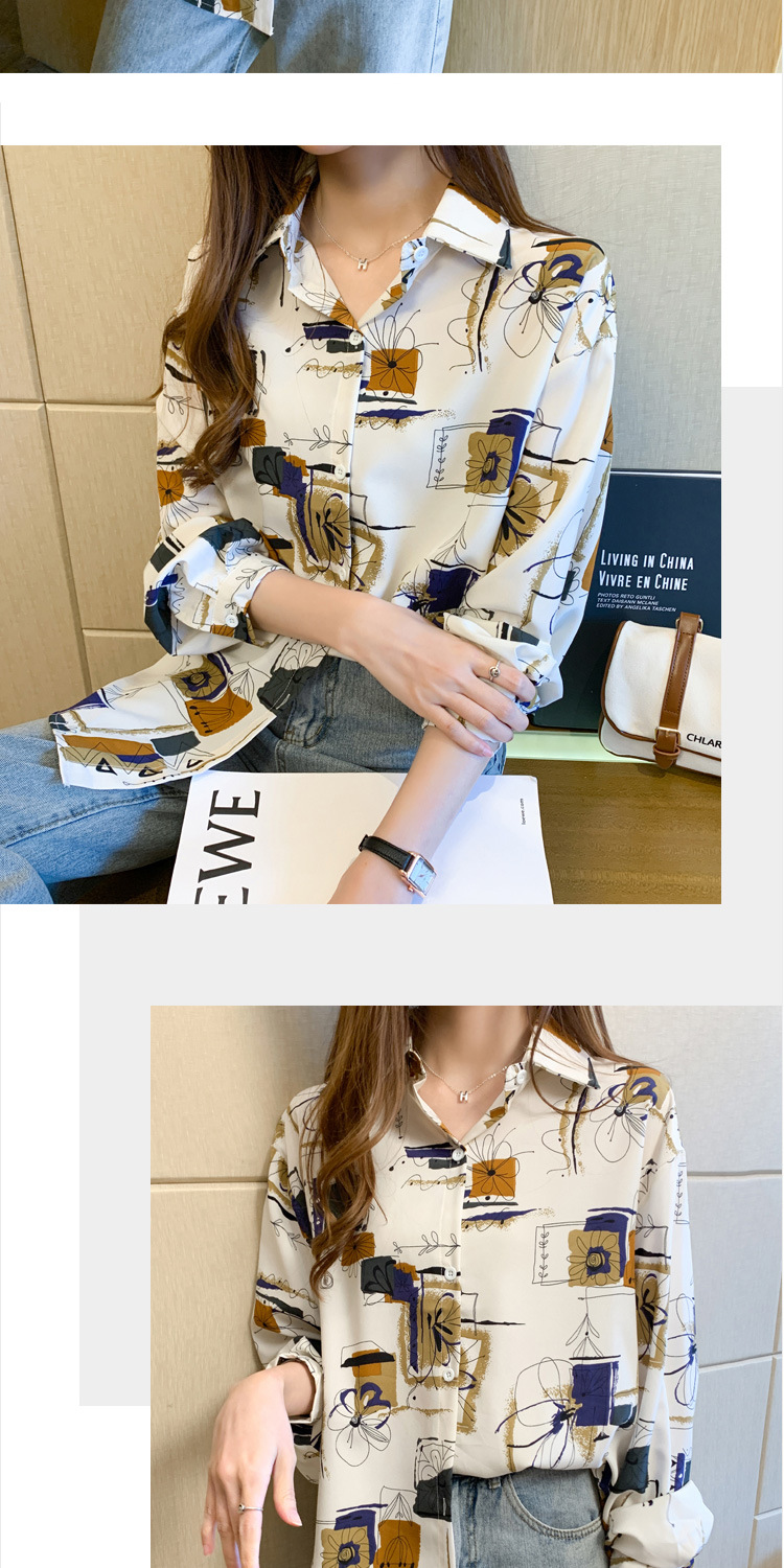 Kemeja sifon lengan panjang motif cetak gaya retro Hong Kong atasan wanita 2025 desain longgar populer niche