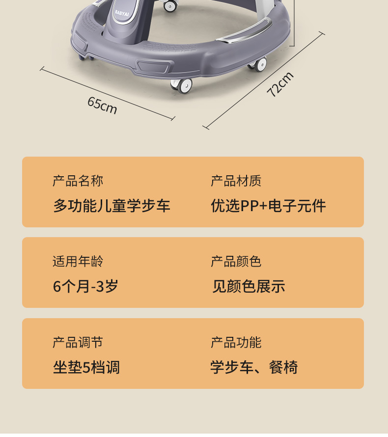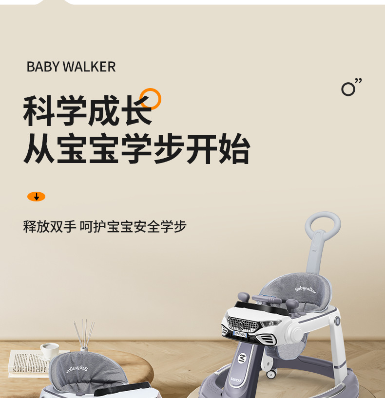 Walker bayi bayi laki-laki dan perempuan bayi anti-rollover 7-18 bulan laki-laki dan perempuan dapat duduk dan mendorong kereta dorong anak-anak