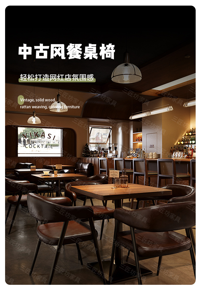 Meja dan Kursi Restoran Gaya Retro Amerika Kombinasi Musik Bar Bar Kecil Kedai Kopi Meja Restoran Komersial Kursi