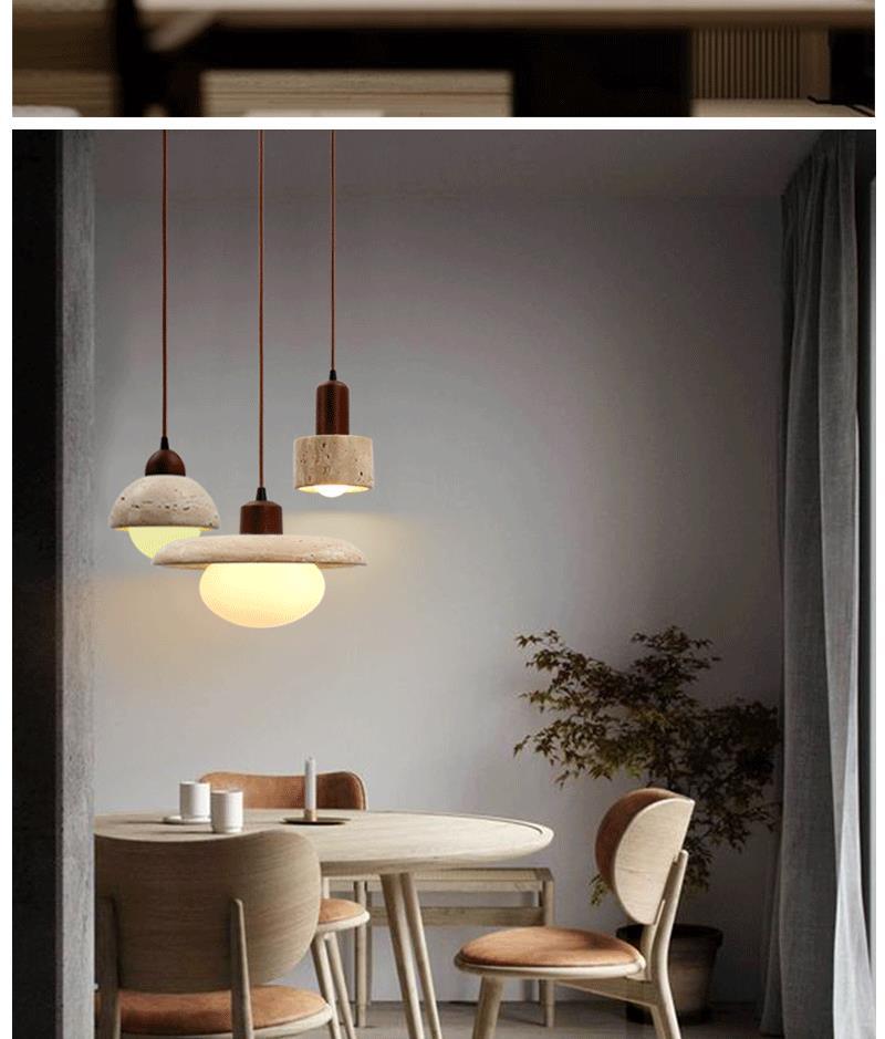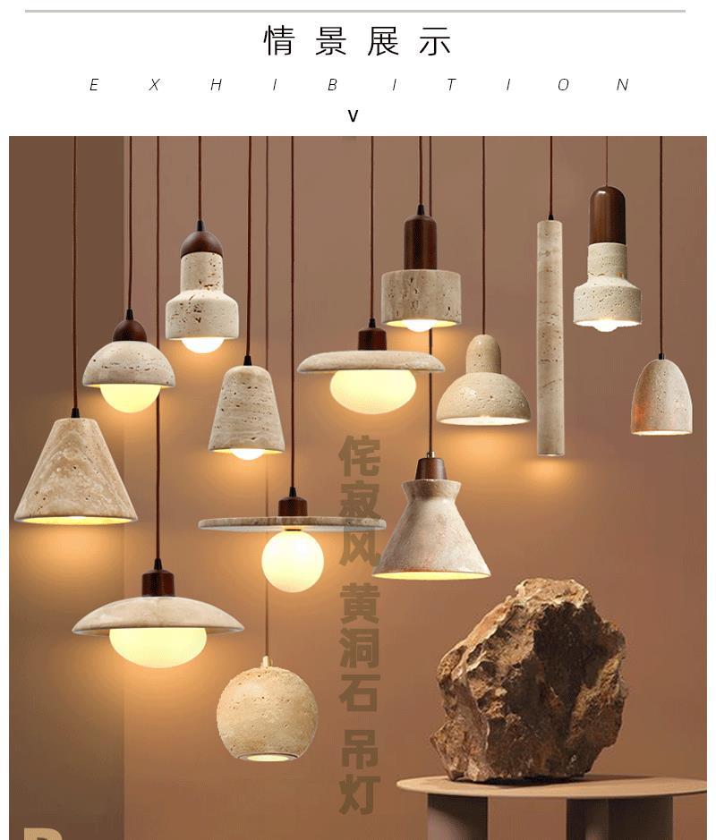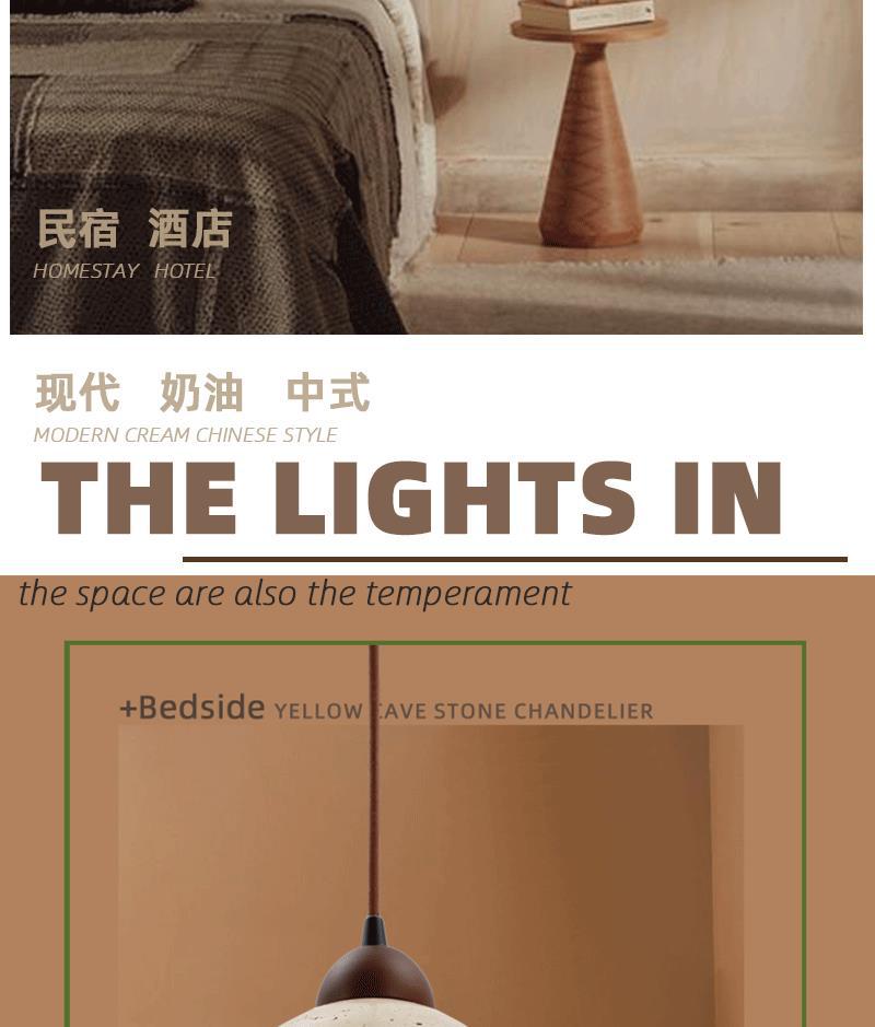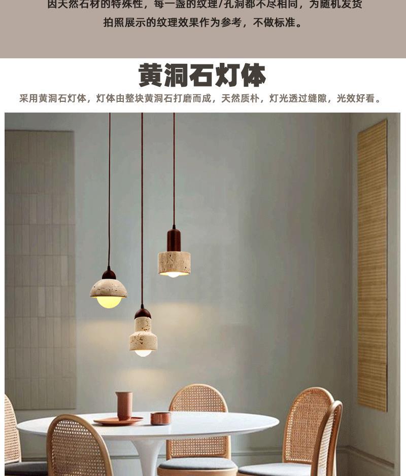 Lampu Ruang Makan Retro Lampu Gantung Tempat Tidur Kamar Tidur Lampu Meja Bar Gaya Krim Angin Keheningan Lampu Gantung Kecil Batu Lubang Kuning Dekorasi Kepala Tempat Tidur