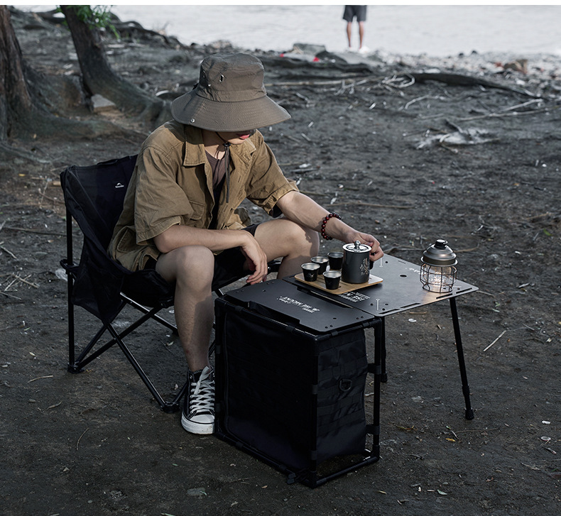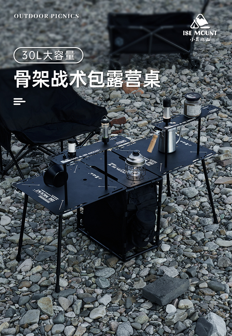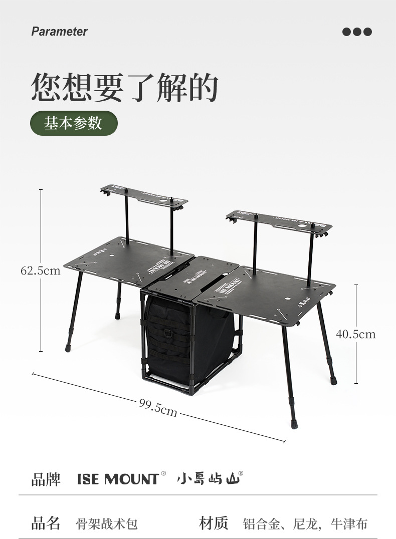 ISE MOUNT Luar Ruangan Berkemah Kerangka Tas Taktis Portabel Ringan Dapat Dilepas Meja Lipat Barbekyu Berkemah
