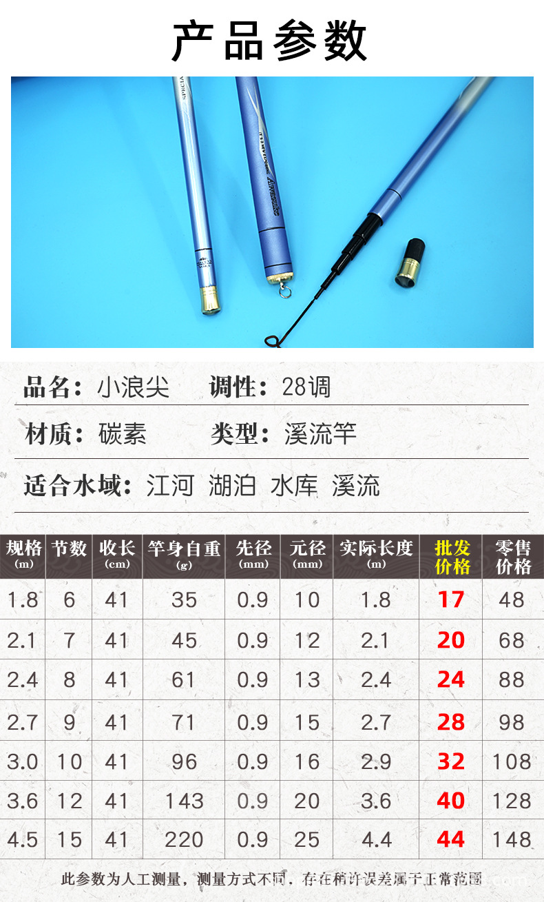 Joran tangan 28 bagian ultra pendek, joran aliran ultra keras, alat pancing enam bagian 41cm yang dapat ditarik, grosir produsen alat pancing.