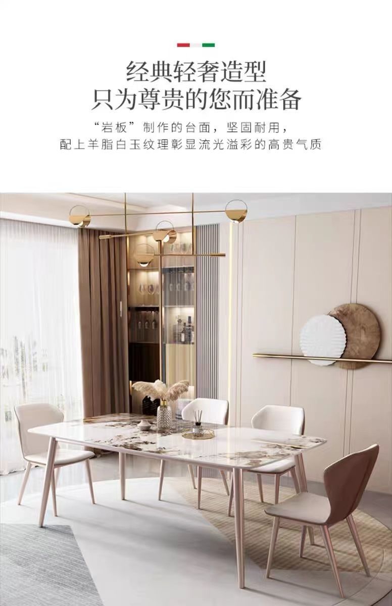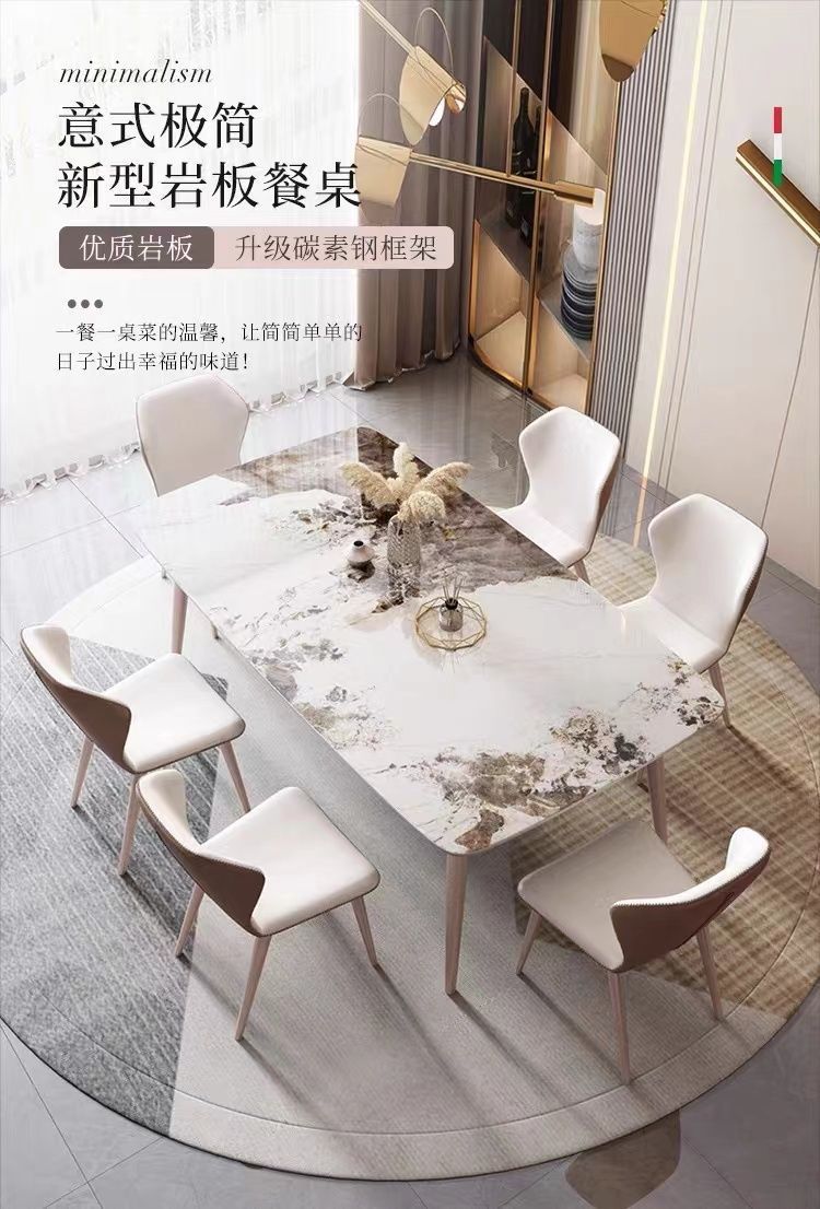 Meja Makan Papan Batu Mewah Ringan Gaya Italia Kombinasi Kursi Makan Meja Makan Apartemen Kecil Sederhana Modern Meja Makan Panjang Rumah Tangga Ruang Tamu Makan