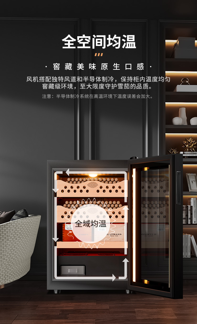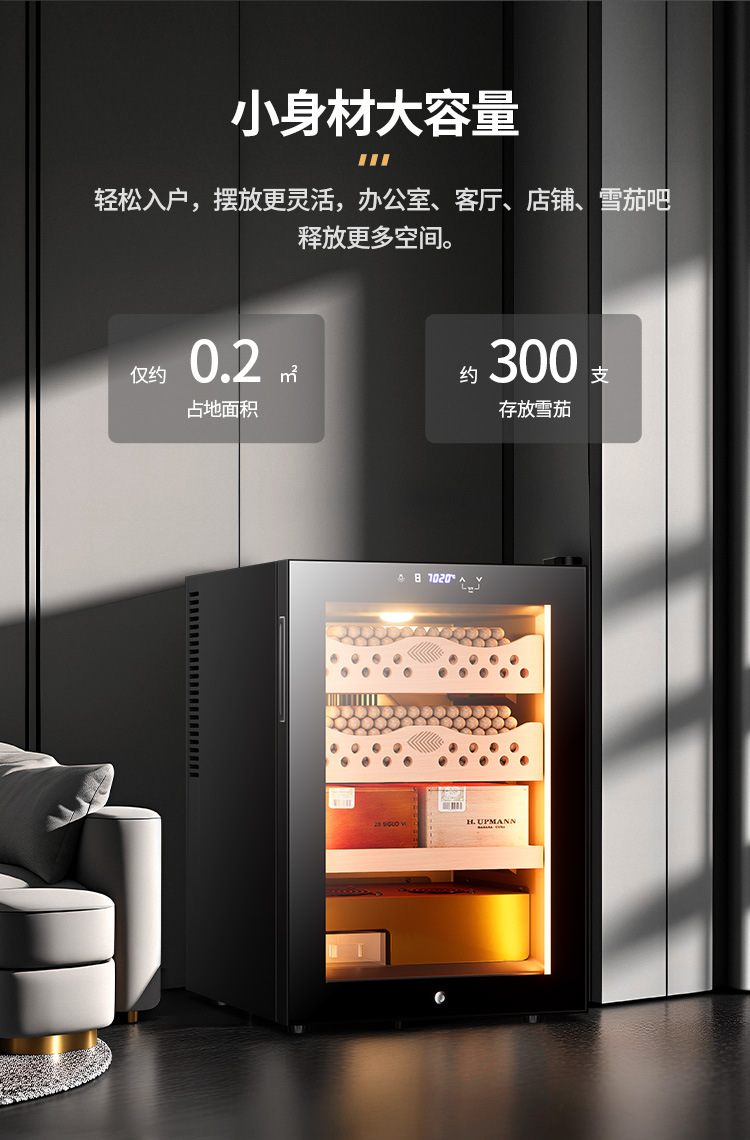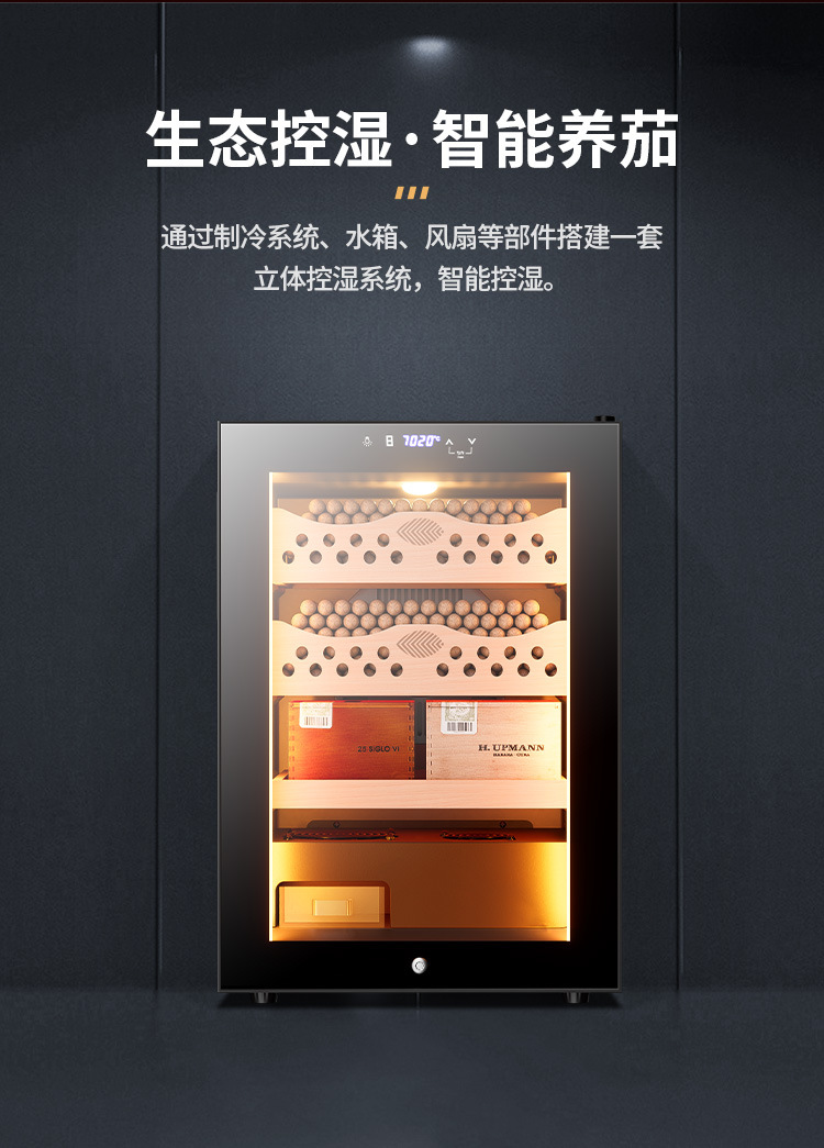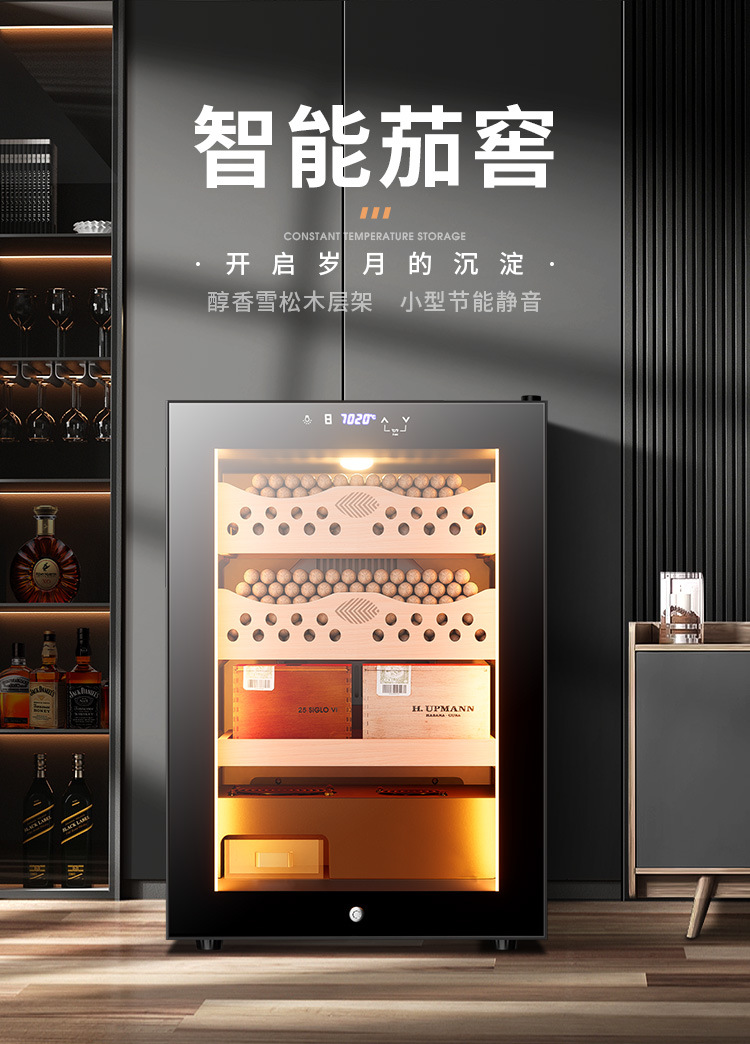 Lemari cerutu pintar Qiaolong 50C1 dengan kontrol suhu dan kelembapan, terbuat dari kayu cedar, mini, kecil, untuk rumah tangga, dapat dipasang di dinding, juga dapat digunakan sebagai lemari anggur.