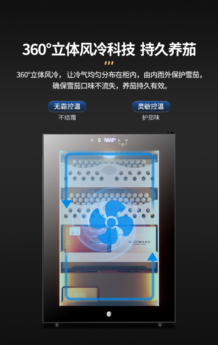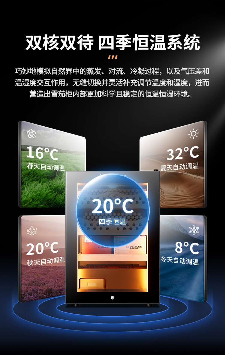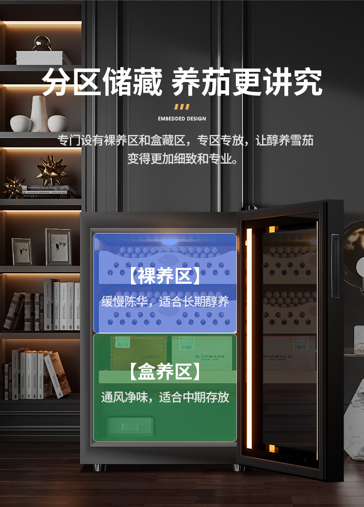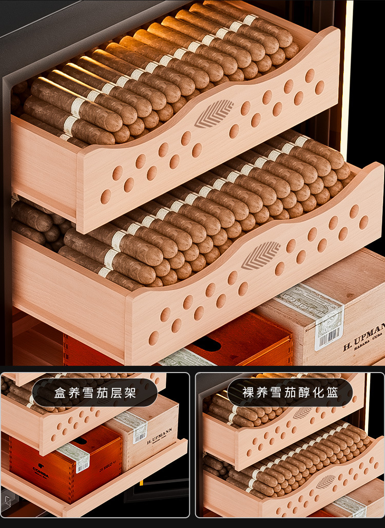 Lemari cerutu pintar Qiaolong 50C1 dengan kontrol suhu dan kelembapan, terbuat dari kayu cedar, mini, kecil, untuk rumah tangga, dapat dipasang di dinding, juga dapat digunakan sebagai lemari anggur.