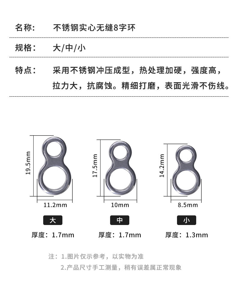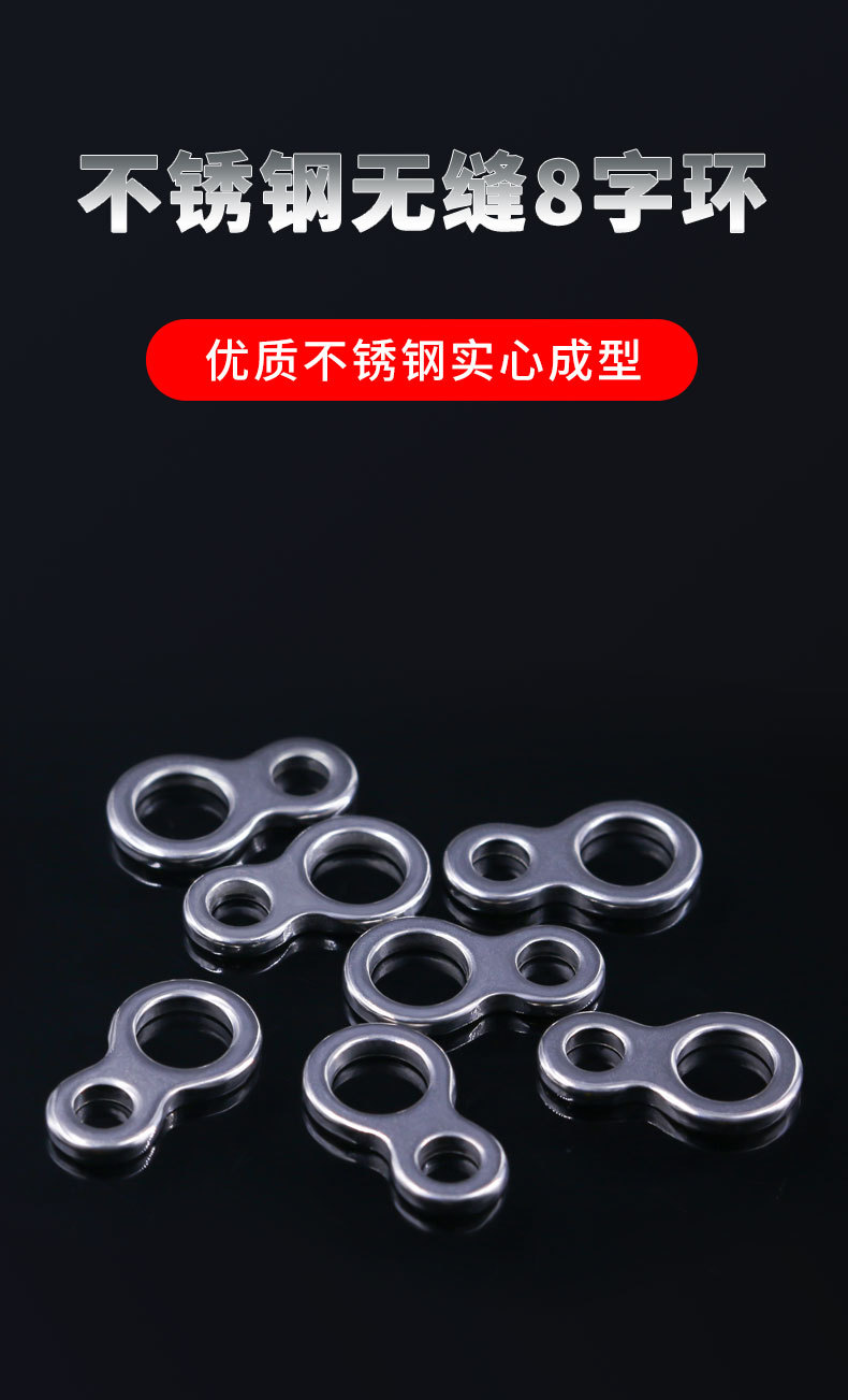 Aksesoris alat pancing cincin penghubung Cincin Luya memancing di laut cincin ganda cincin padat baja tahan karat mulus cincin berbentuk 8 padat