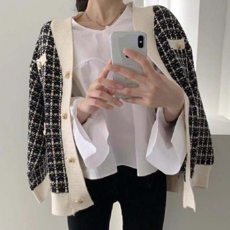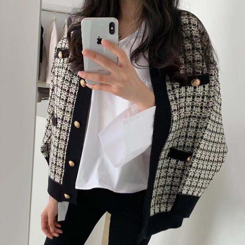 Jaket Sweater Gaya Chanka Elegan Versi Korea Model Baru Musim Gugur dan Musim Dingin Kardigan Rajutan Longgar Tipe Panjang Sedang Mudah Dipadu Padan Gaya Senior Wanita