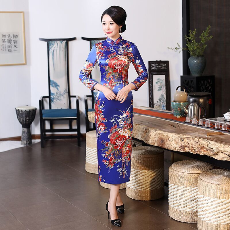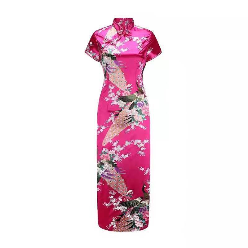 Gaun panjang cheongsam, gaun cheongsam panjang fotografi harian lengan sedang musim panas dan musim dingin model usia sedang dan orang tua 2023