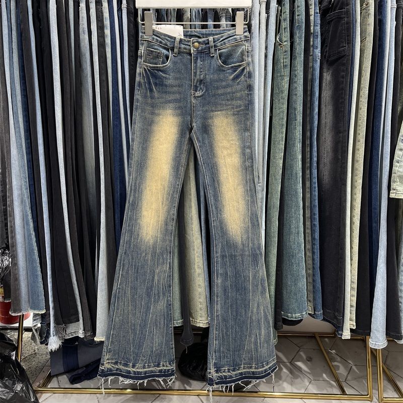 复古微喇阔腿牛仔裤女早春薄款2024年新款宽松高腰拖地喇叭直筒裤