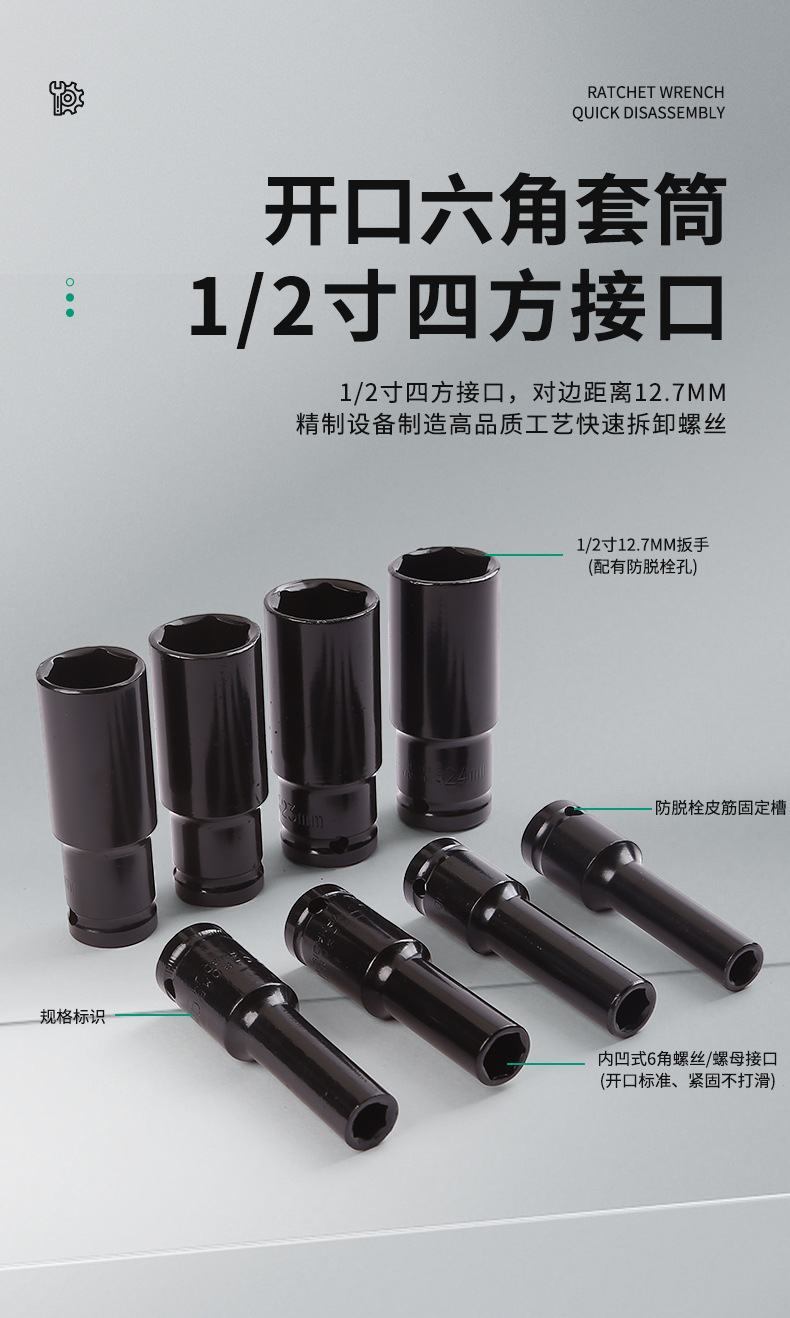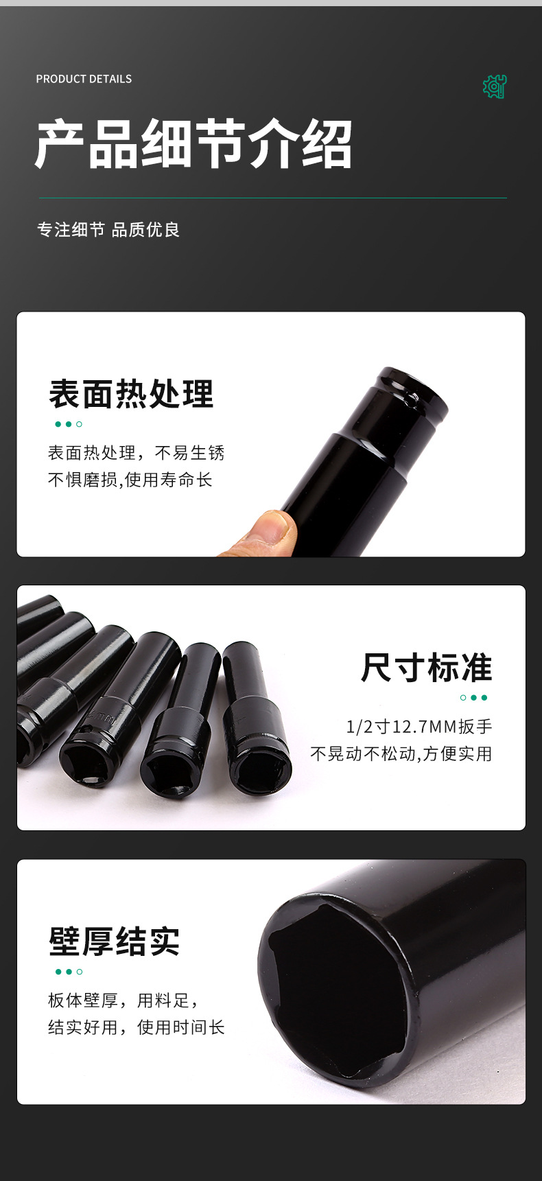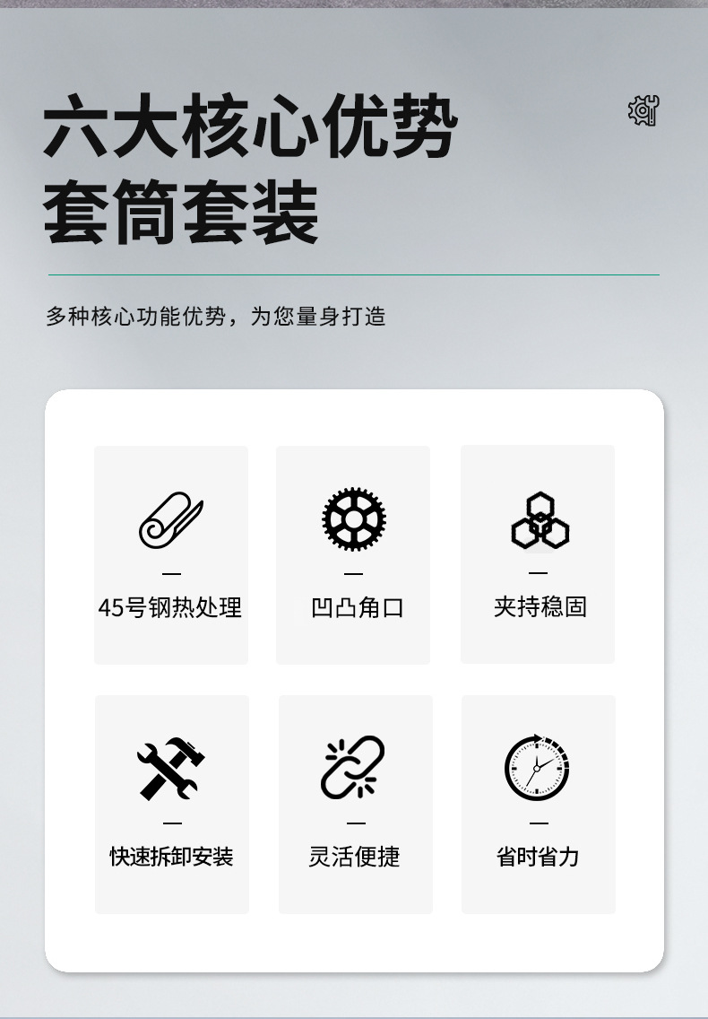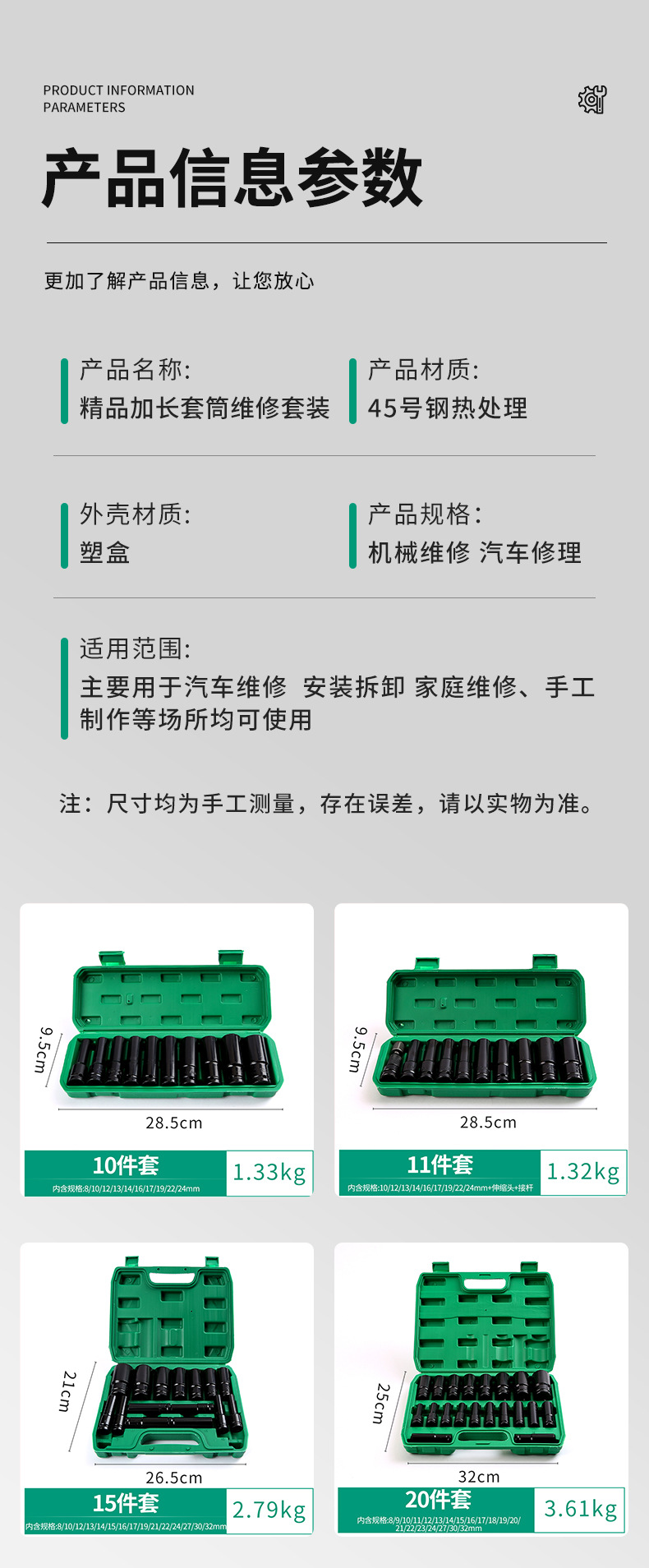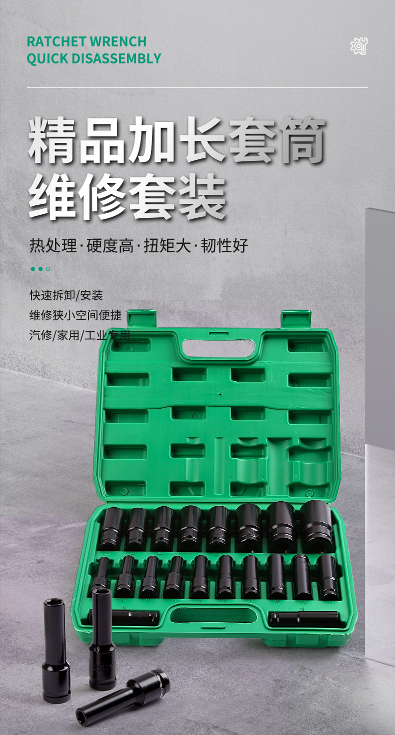 精品加长套筒8-32维修套装套筒扳手内六角加长套筒头汽修五金工具