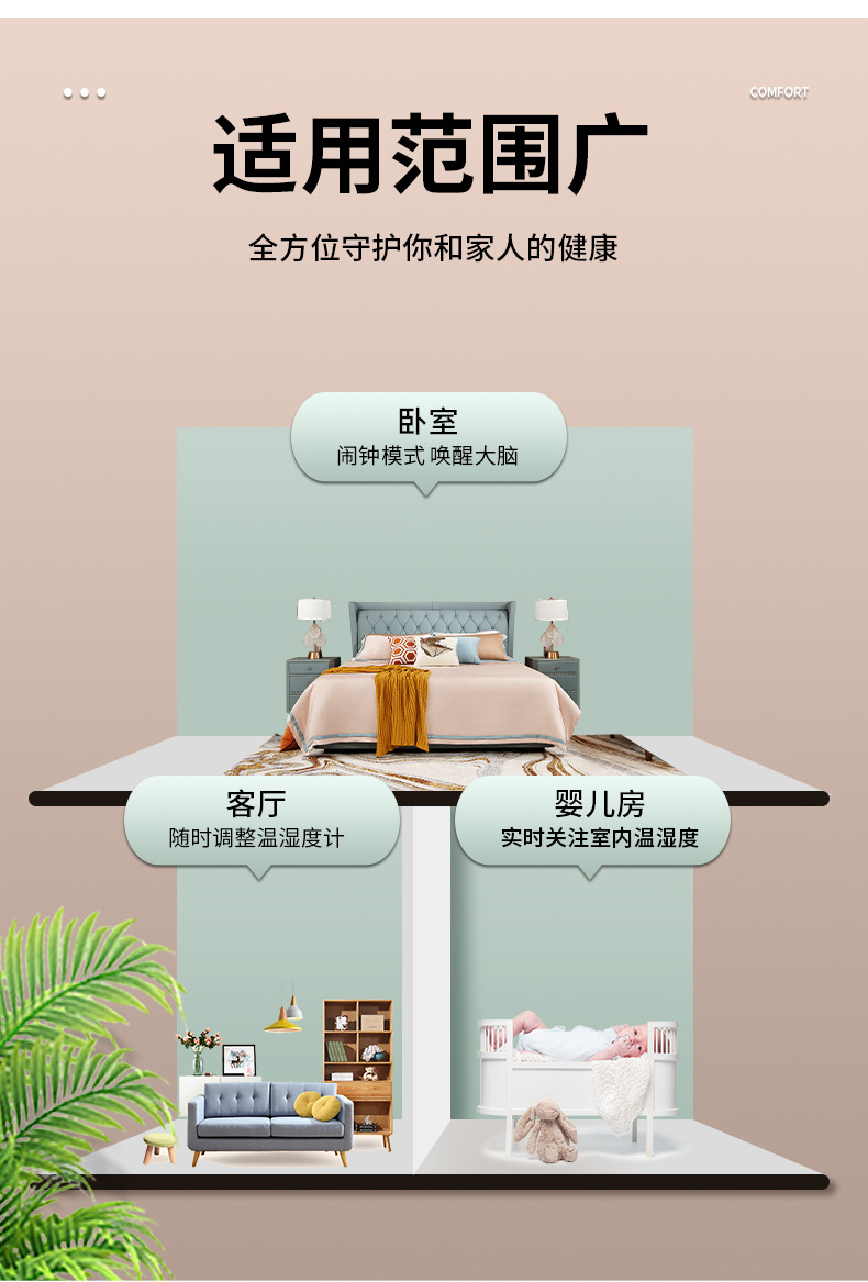 精度较高:特别是采用了较好传感器和较先进电路设计的电子温湿度计,温度误差±1℃,湿度误差±5%,满足居家的温湿度的要求。
