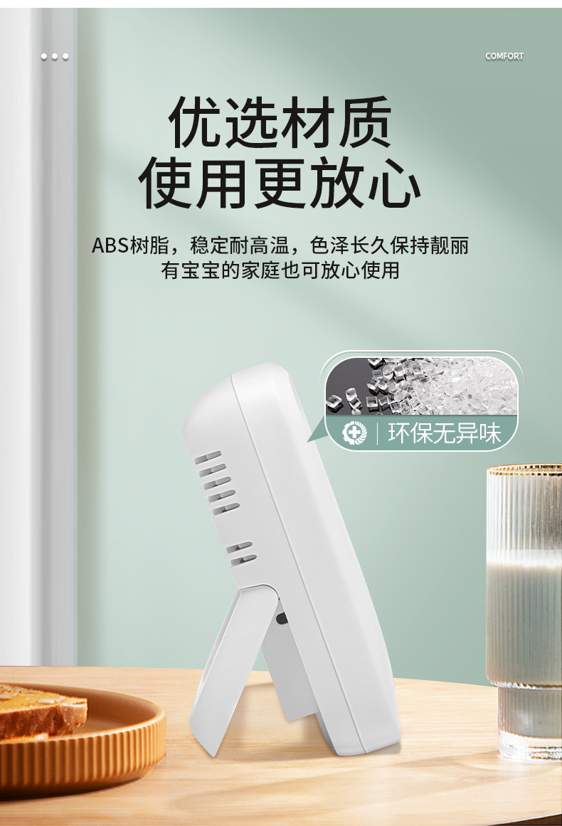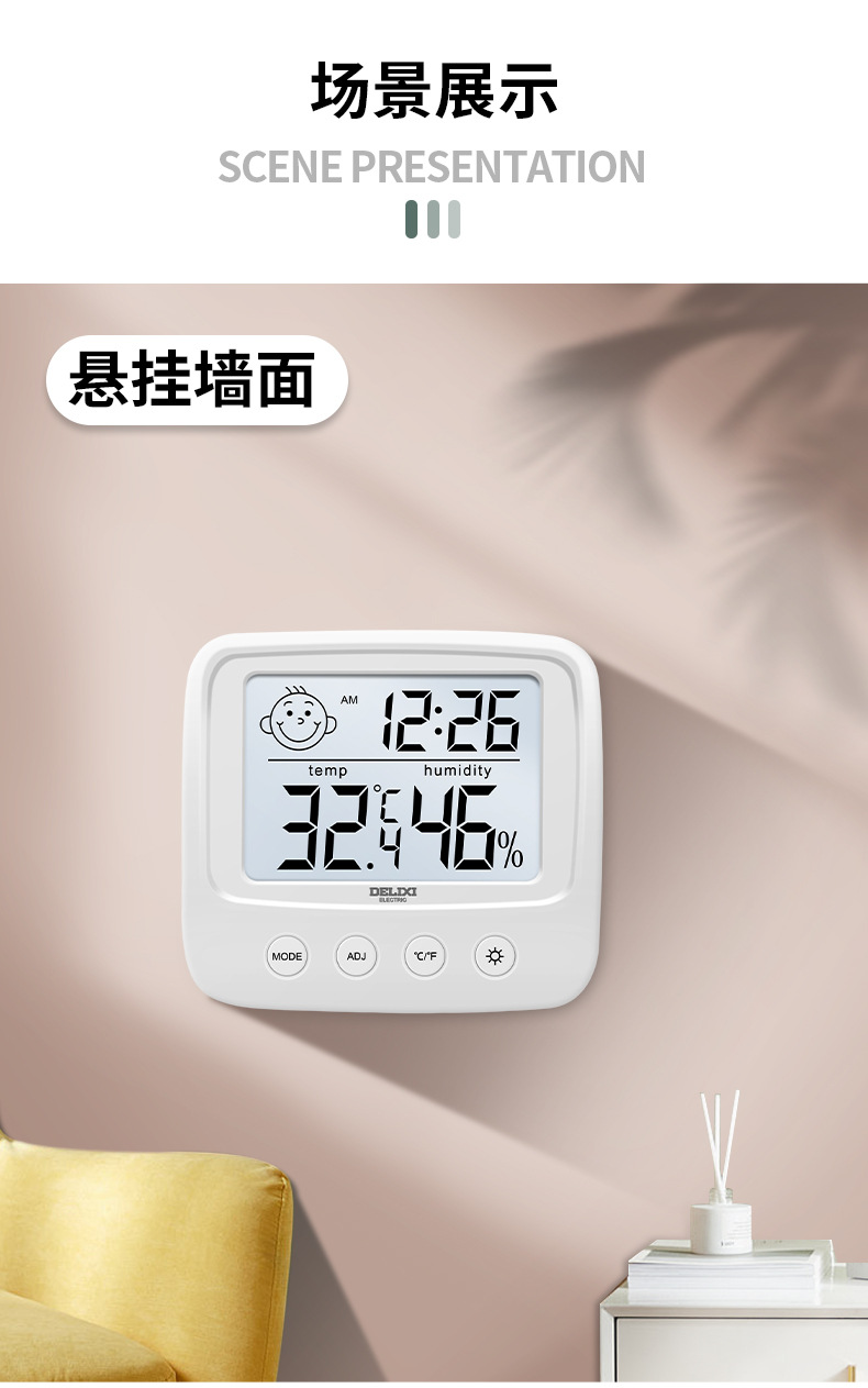 数字显示直观清晰:可以直接以数字形式显示温度和湿度值等信息,比指针式或依靠刻度等方式更易读取。