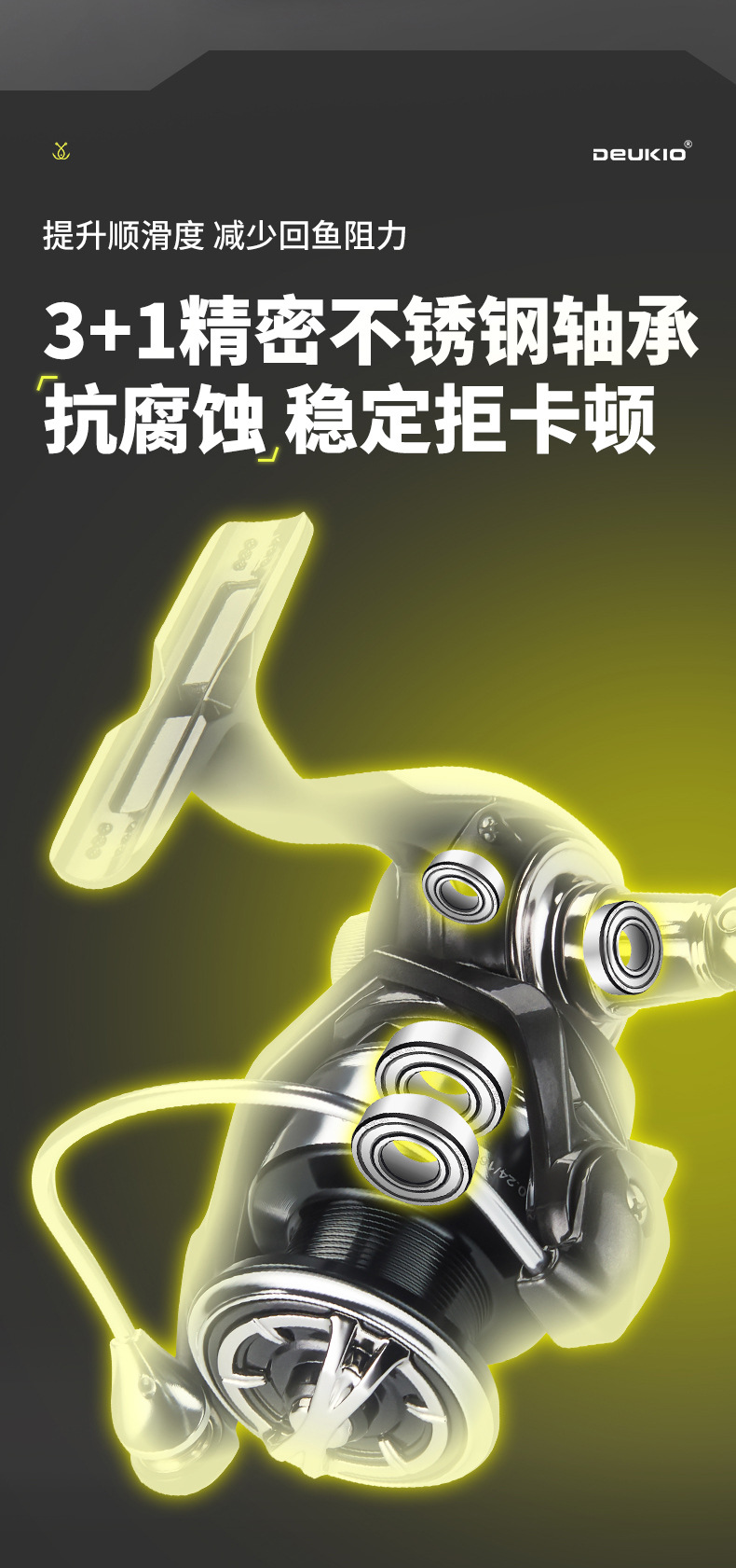 10、3+1精密不锈钢轴承,抗腐蚀,温度拒卡顿,提升顺滑度,减少回鱼阻力