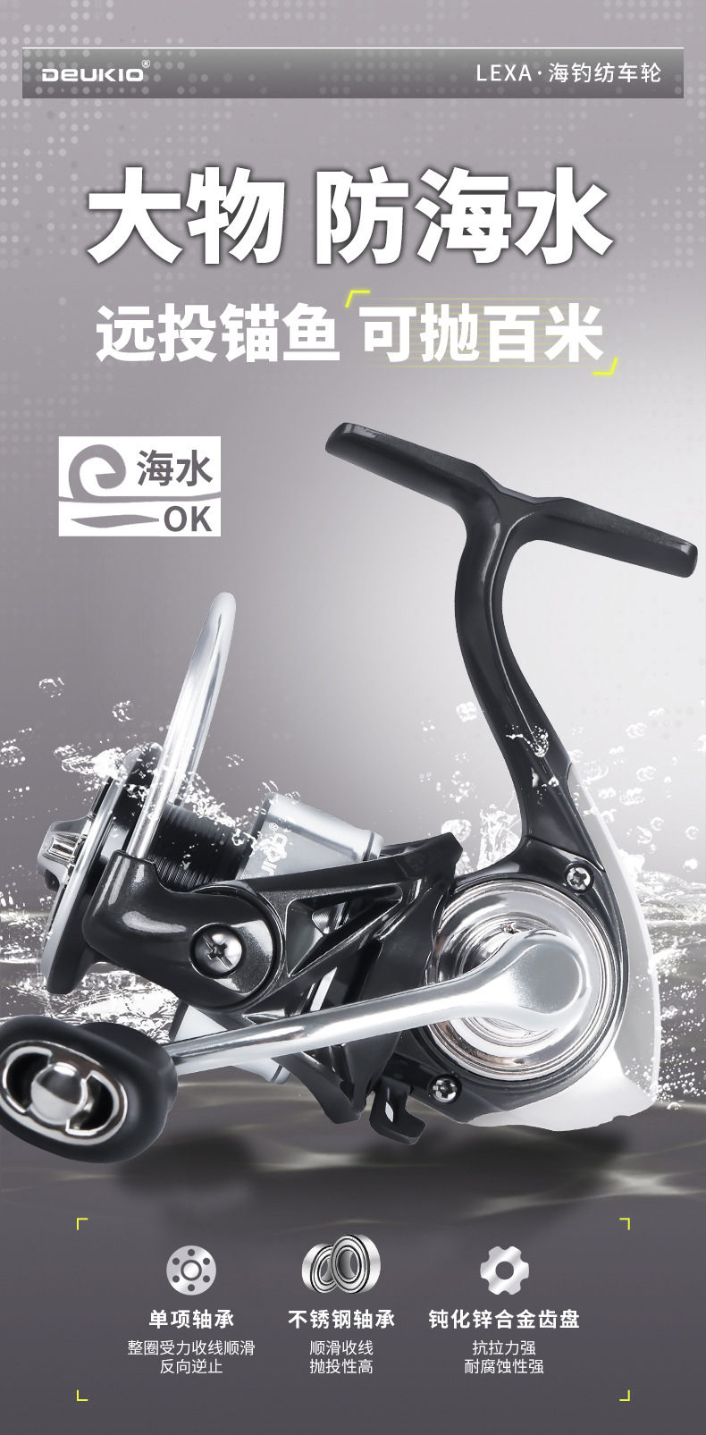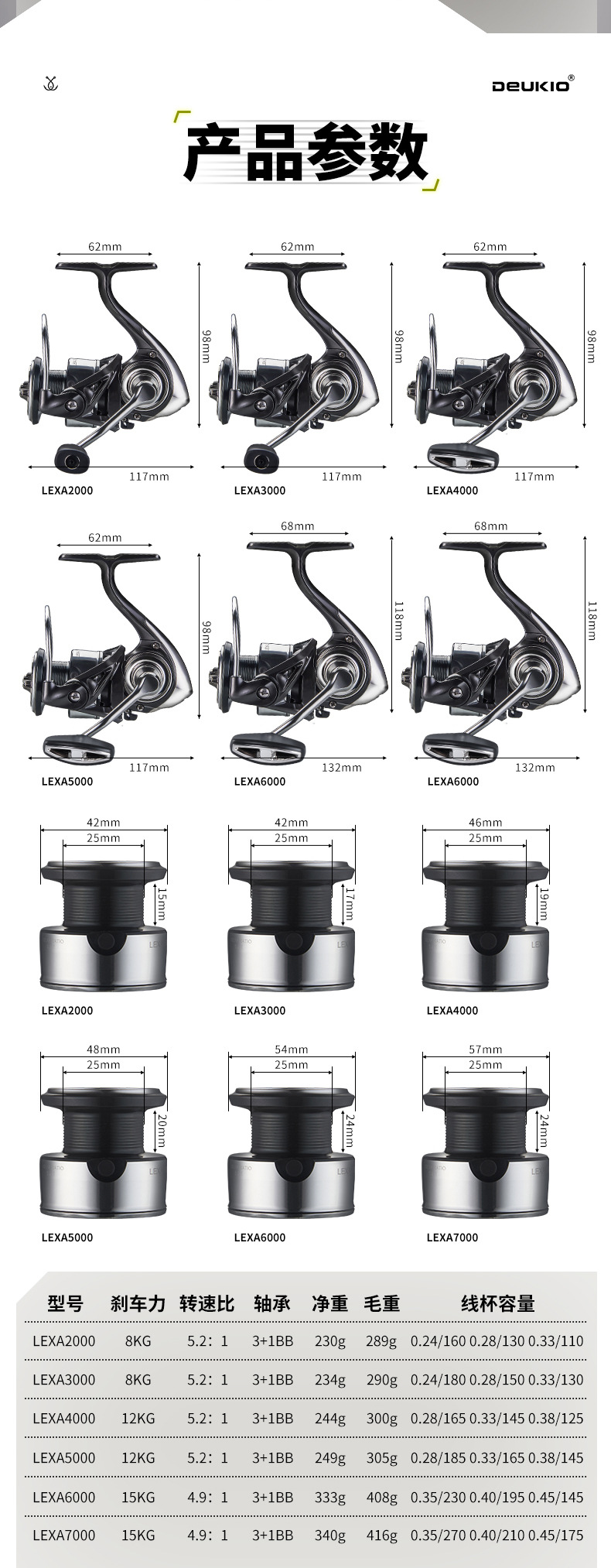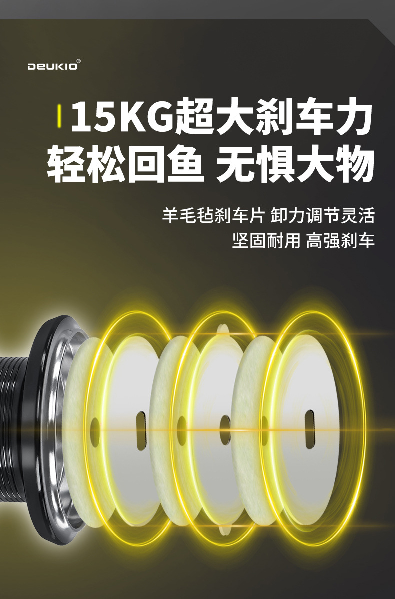 1、15KG超大刹车力,轻松回鱼,无惧大物;羊毛毡刹车片,卸力调节灵活;坚固耐用,高强刹车
