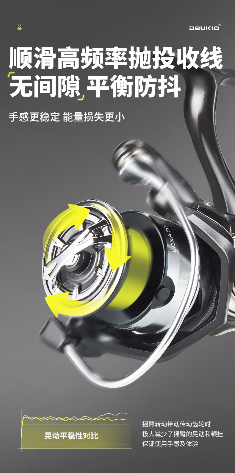 2、无间隙平衡防抖,顺滑高频率抛投收线,手感更稳定,能量损失更小