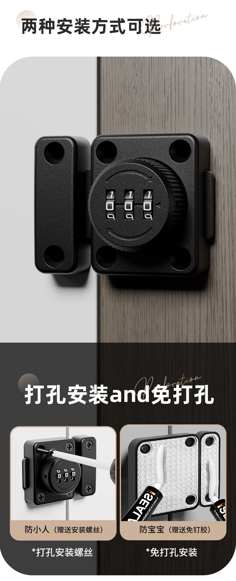 Kait pintu sederhana kunci kode bebas lubang anti-pencurian lemari laci kunci lemari dokumen pintu geser pintu kamar kunci kamar tidur kunci kamar