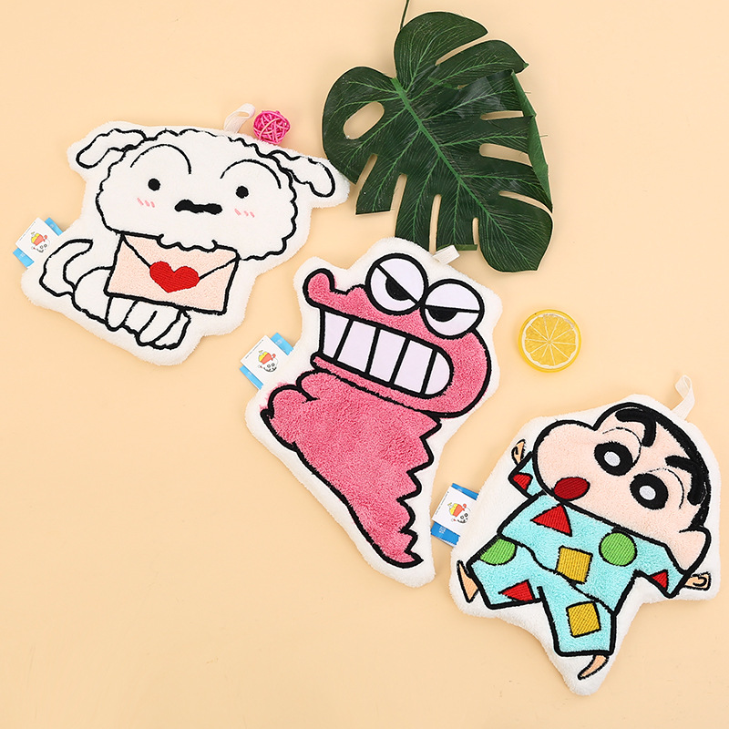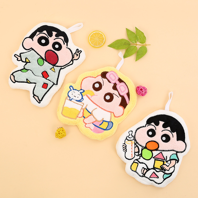 Crayon Shin-chan Lucu Kartun Anak-anak Handuk Tangan Bulu Karang Serap Air Cepat Kering Handuk Bordir Tiga Dimensi Serbaguna