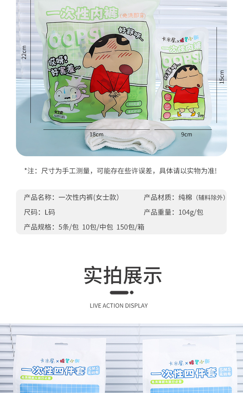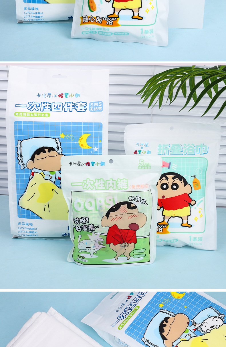 Crayon Shinchan Pakaian Dalam Handuk Mandi Lipat Sekali Pakai Luar Ruangan Wanita Pelajar Setelan Empat Potong Perjalanan Sekali Pakai