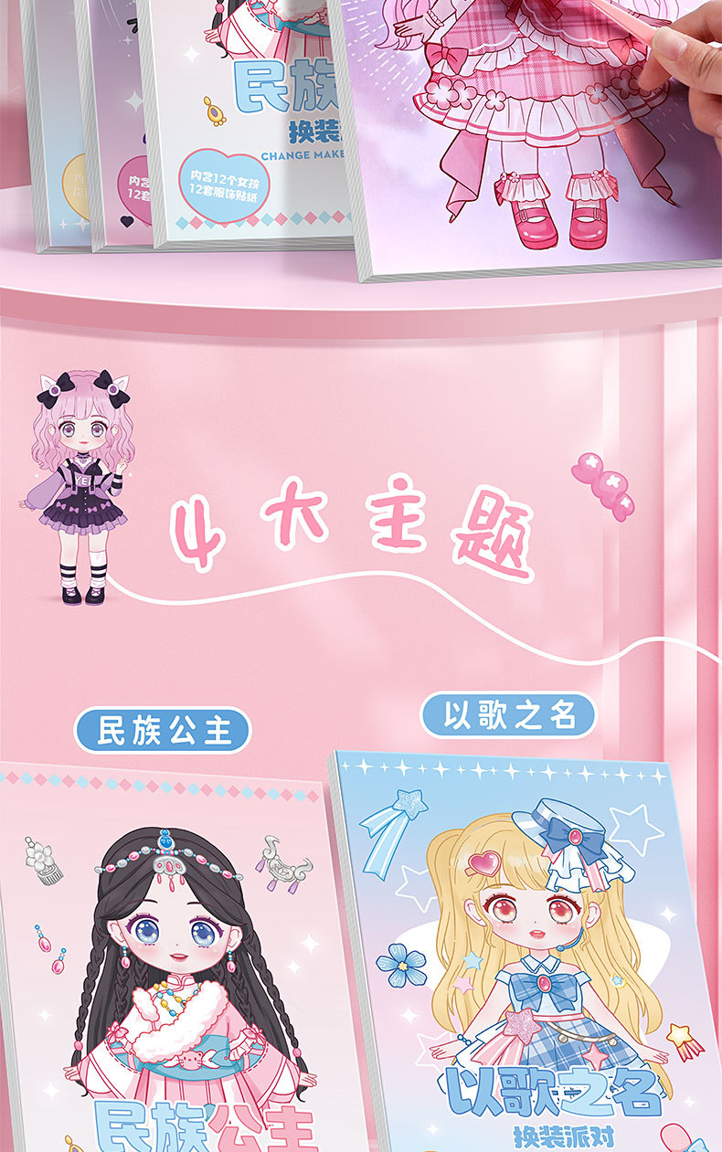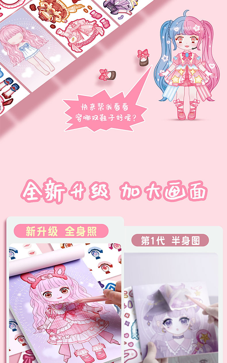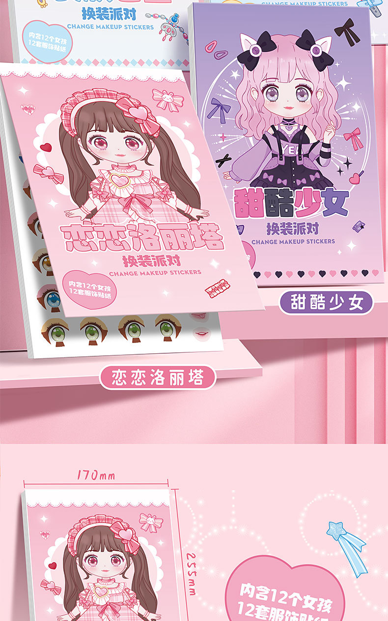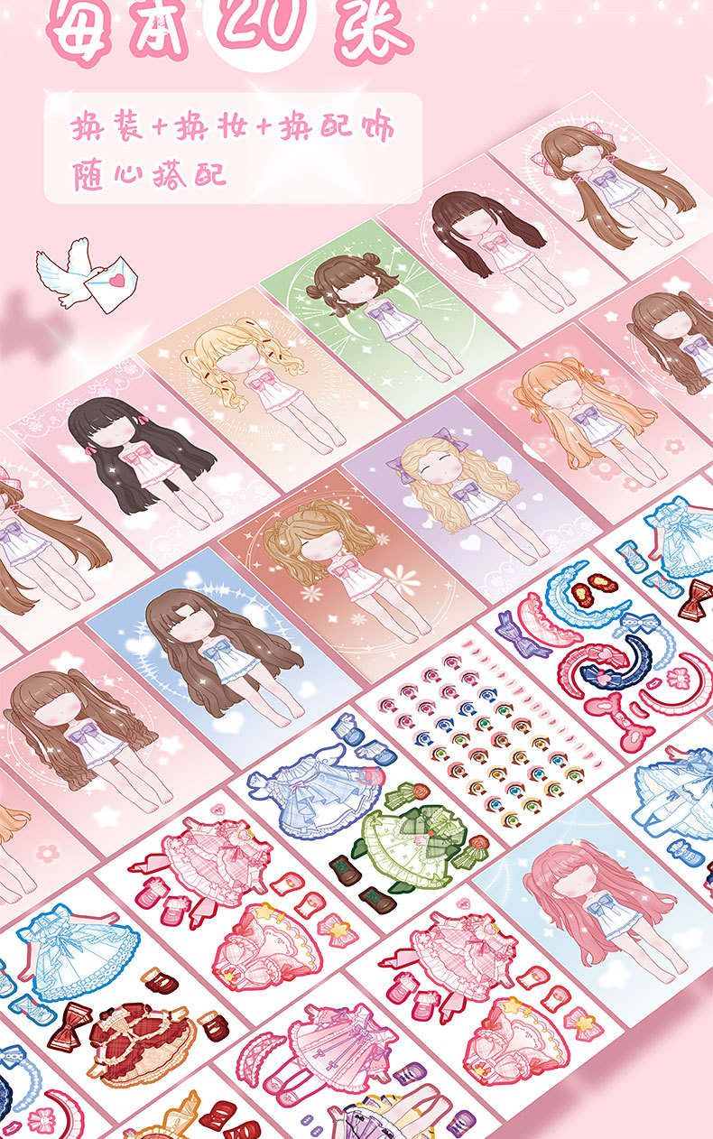 Stiker perubahan seluruh tubuh gaun silang putri besar buku akun tangan makeup anak-anak buatan tangan diy stiker dekorasi pendidikan buku