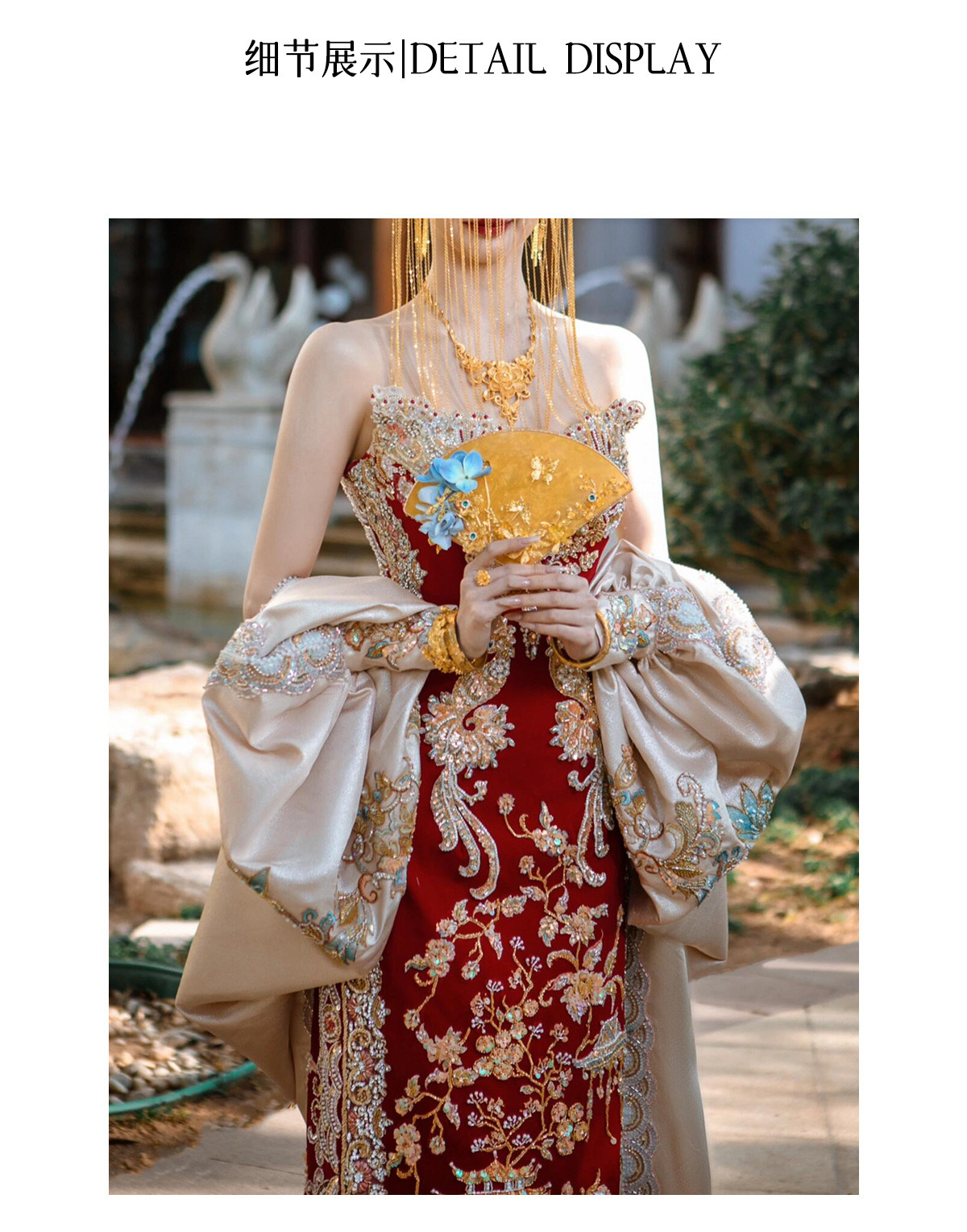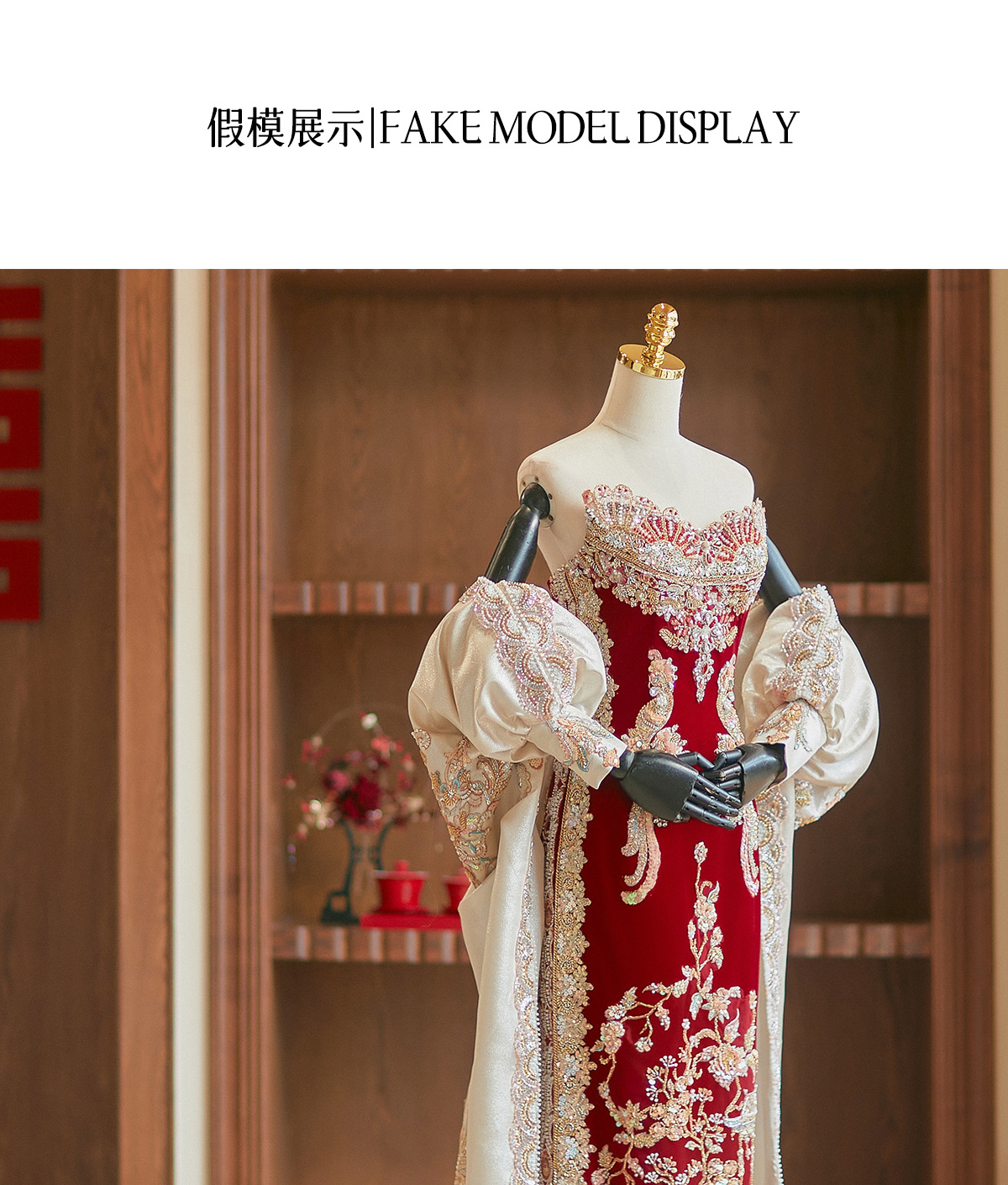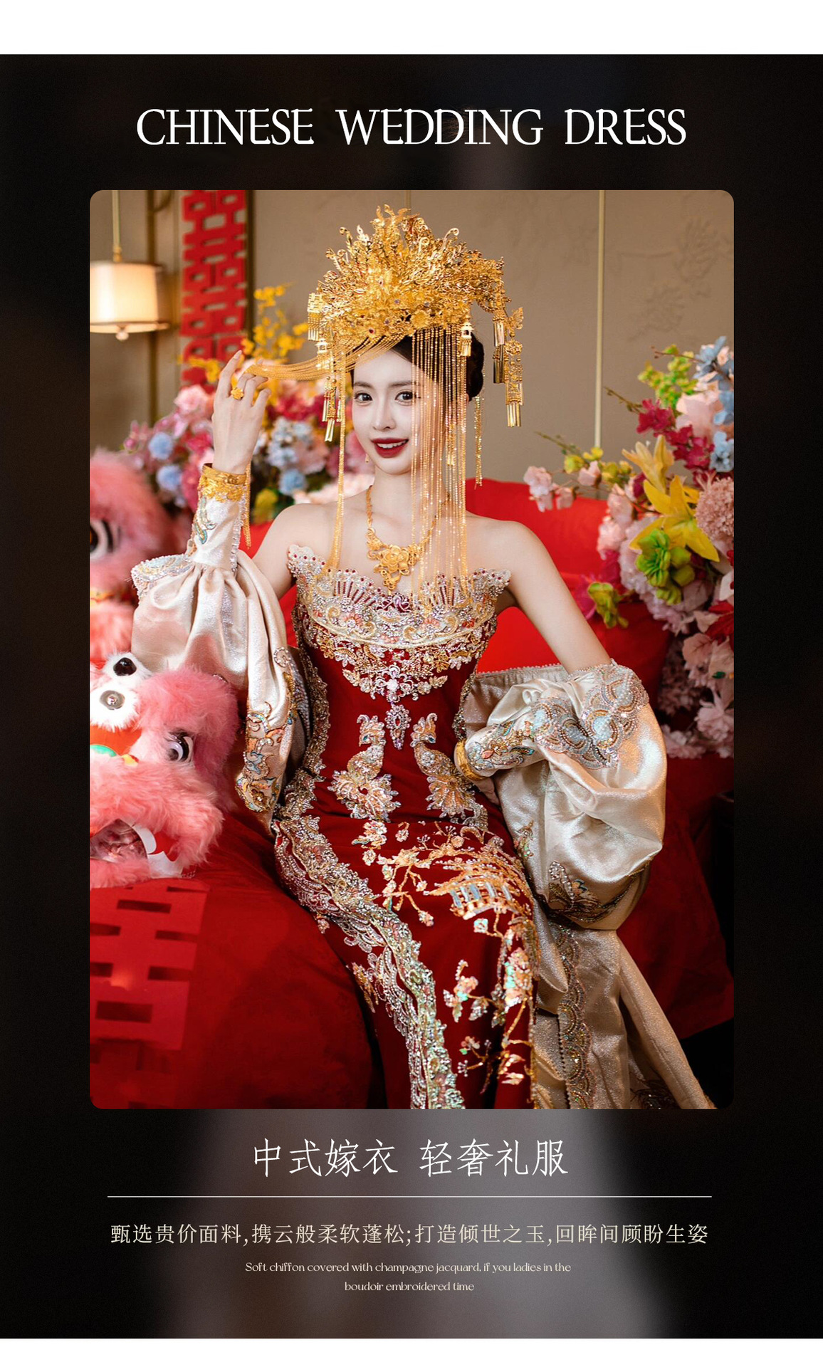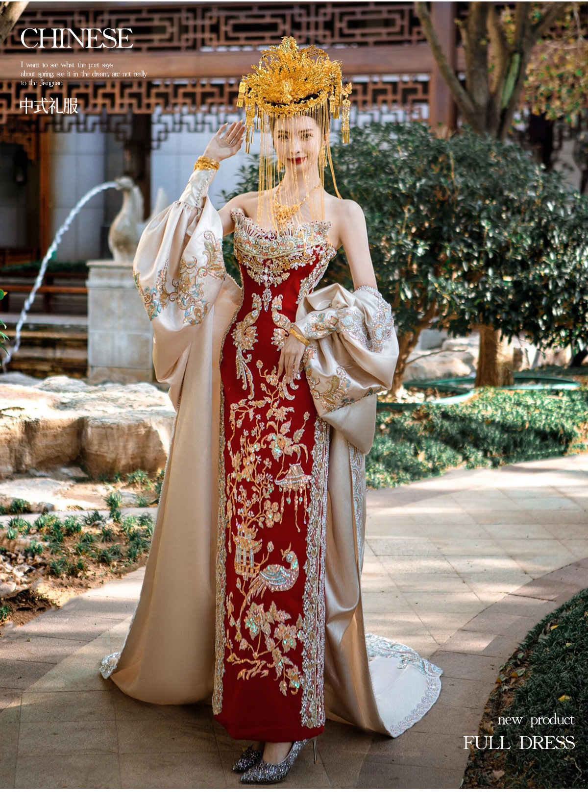 Pakaian Bersulang Merah Pakaian Pernikahan Pengantin Wanita Gaya Tiongkok Baru Pakaian Pernikahan Gaun Gaun Gaun Retro Engagement Gaun