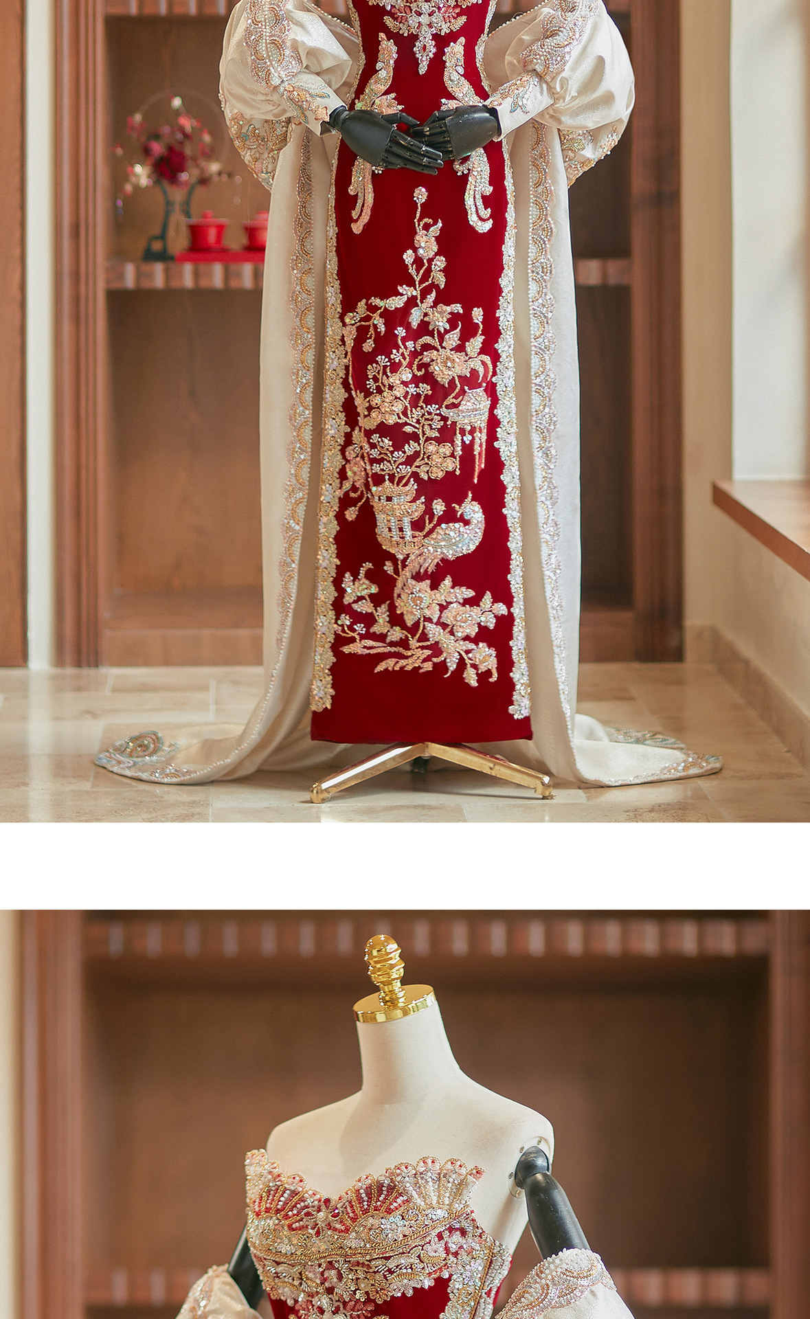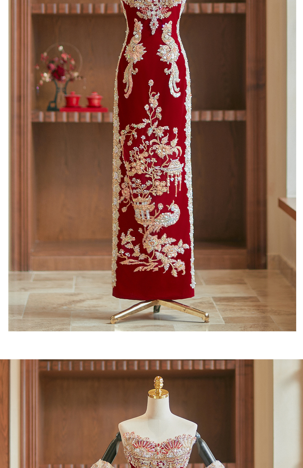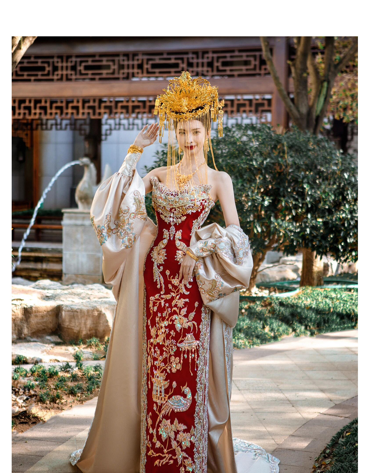 Pakaian Bersulang Merah Pakaian Pernikahan Pengantin Wanita Gaya Tiongkok Baru Pakaian Pernikahan Gaun Gaun Gaun Retro Engagement Gaun