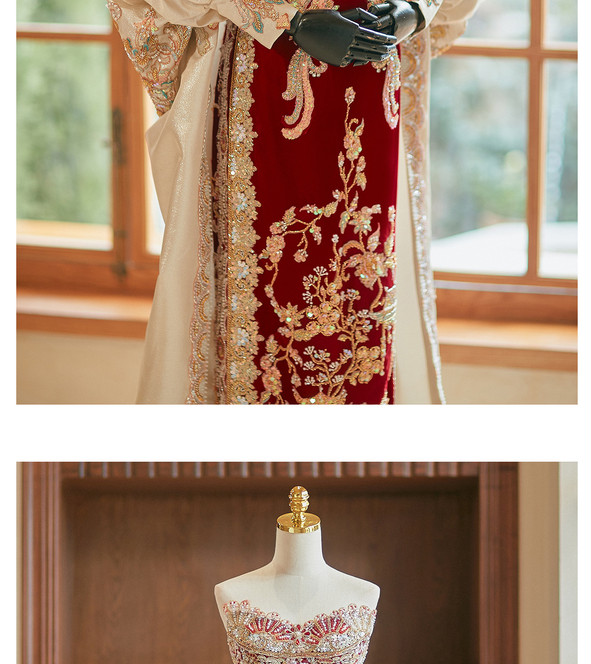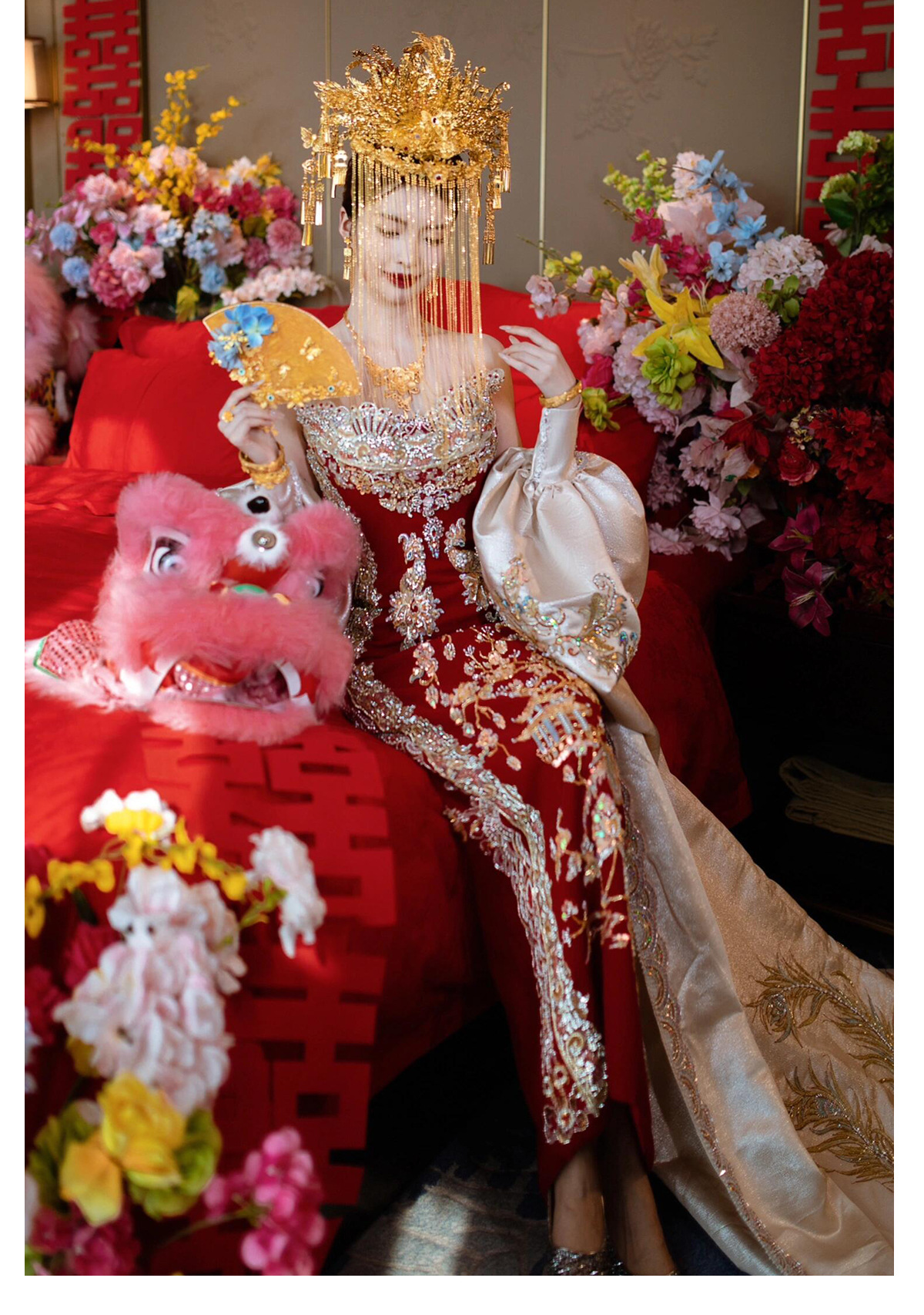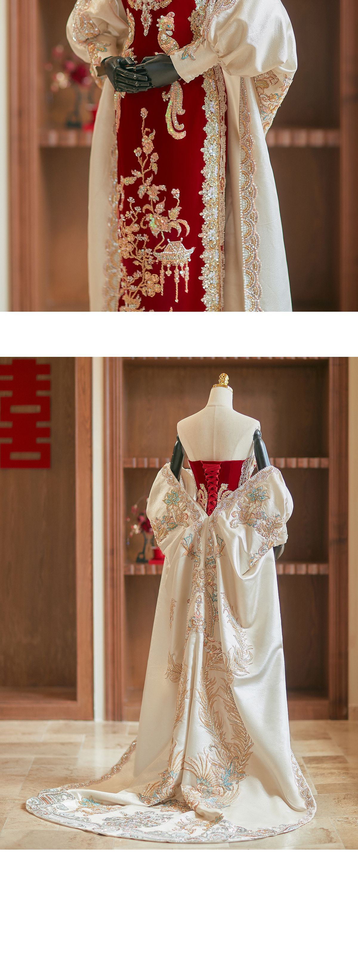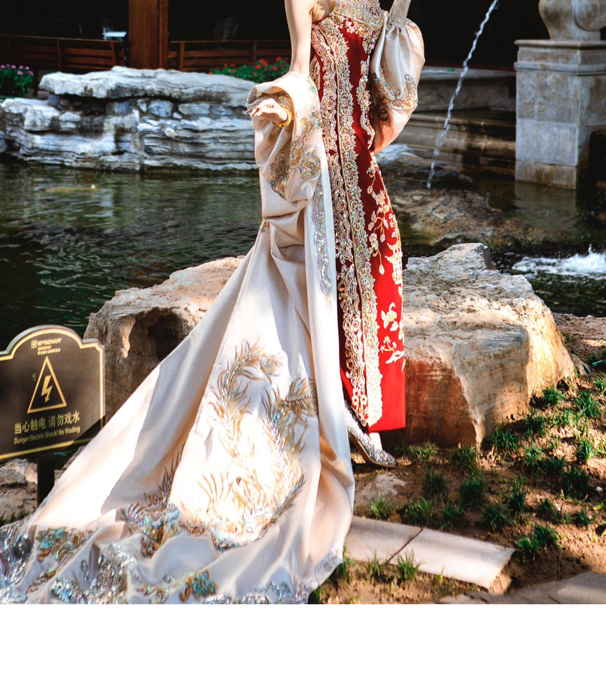 Pakaian Bersulang Merah Pakaian Pernikahan Pengantin Wanita Gaya Tiongkok Baru Pakaian Pernikahan Gaun Gaun Gaun Retro Engagement Gaun