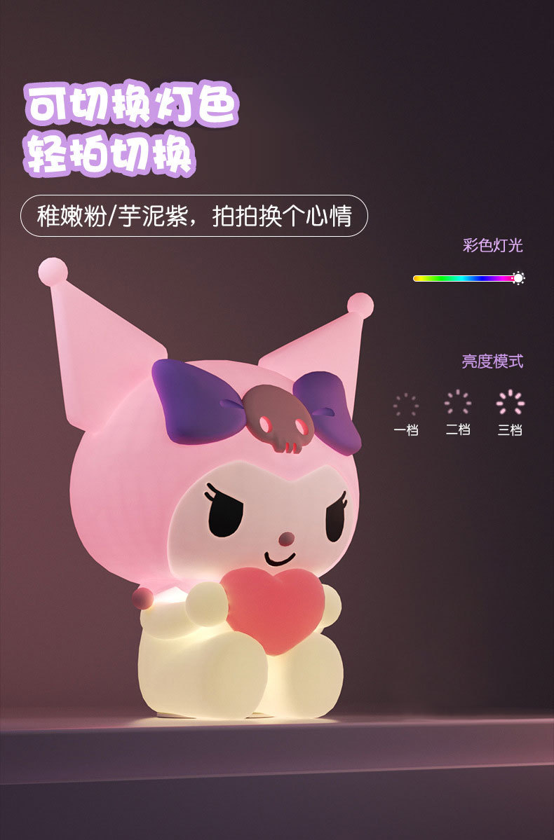 Lampu Malam Sanrio Kuromi Pat Light Lampu Meja Atmosfer Mewah untuk Kamar Tidur Lampu Hias LED