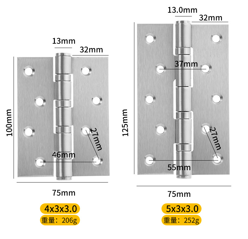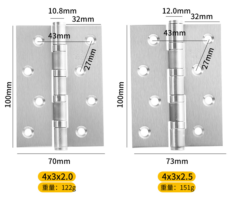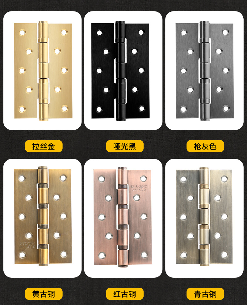 Engsel datar baja tahan karat 4 inci engsel pintu kayu loose-leaf perunggu menebal engsel lipat engsel senyap