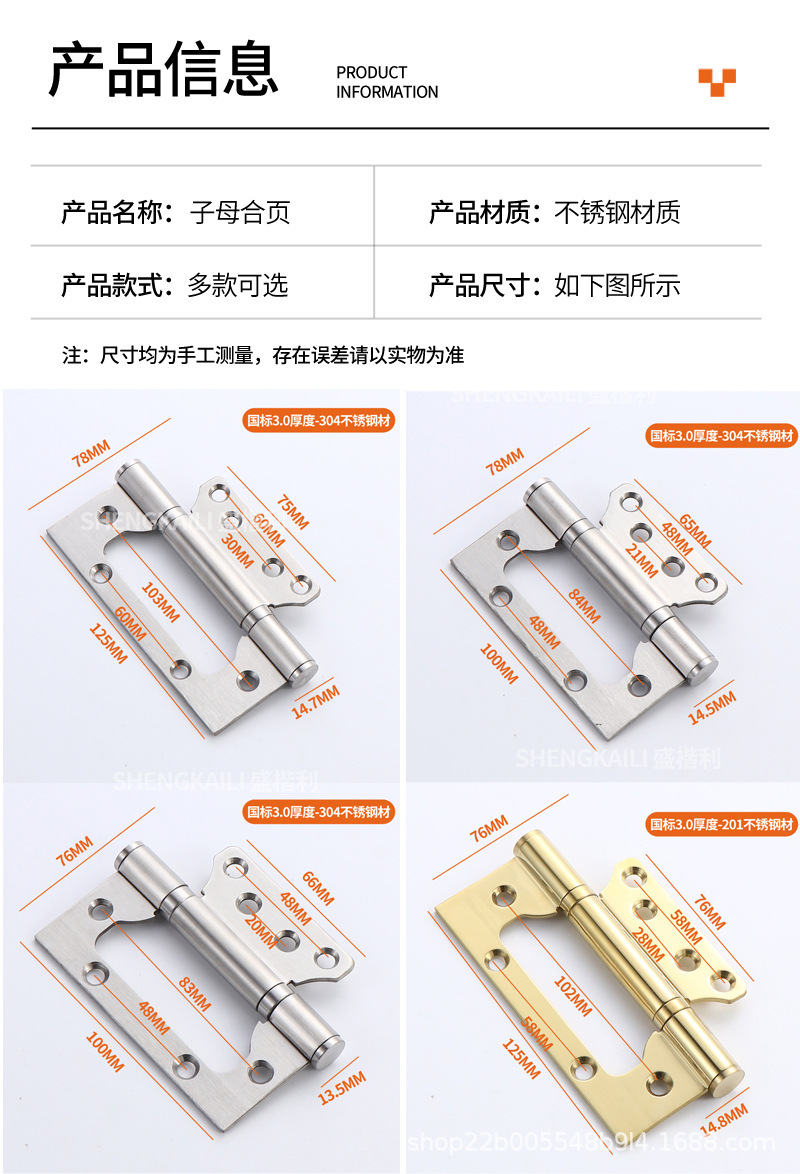 Sheng Kaili Hardware Engsel Wanita Baja Tahan Karat Bantalan Senyap Poros Tengah 4 Inci 5 Inci Pintu Rumah Engsel Pintu Kayu Tanpa Alur