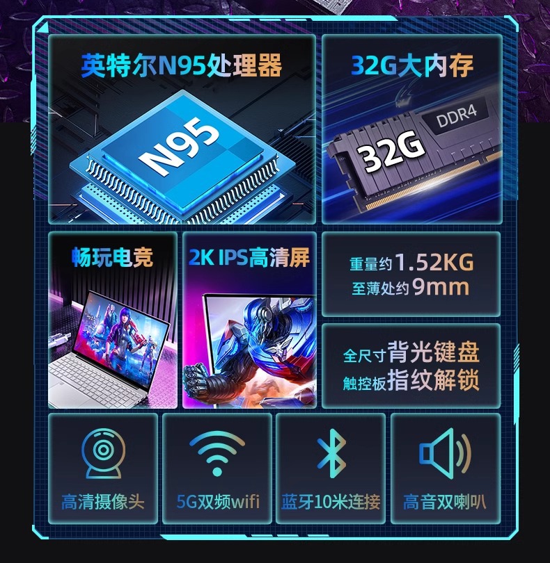 2024 Produk Baru 15,6 Inci Tipis dan Ringan Laptop Windows10 Kantor Permainan 95 Netbook Portabel Baru