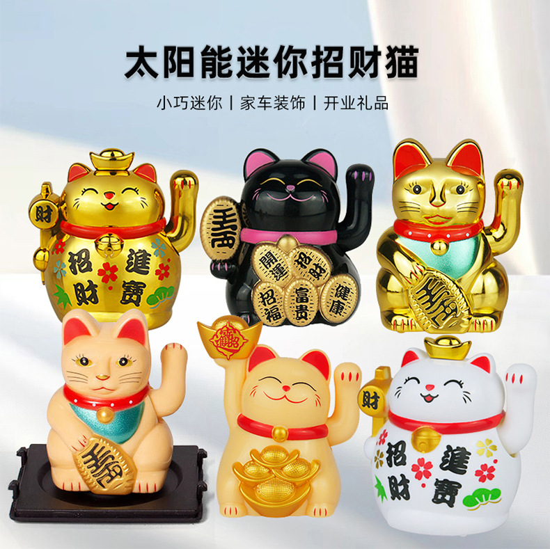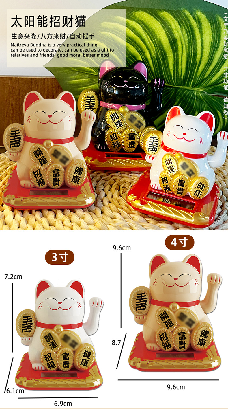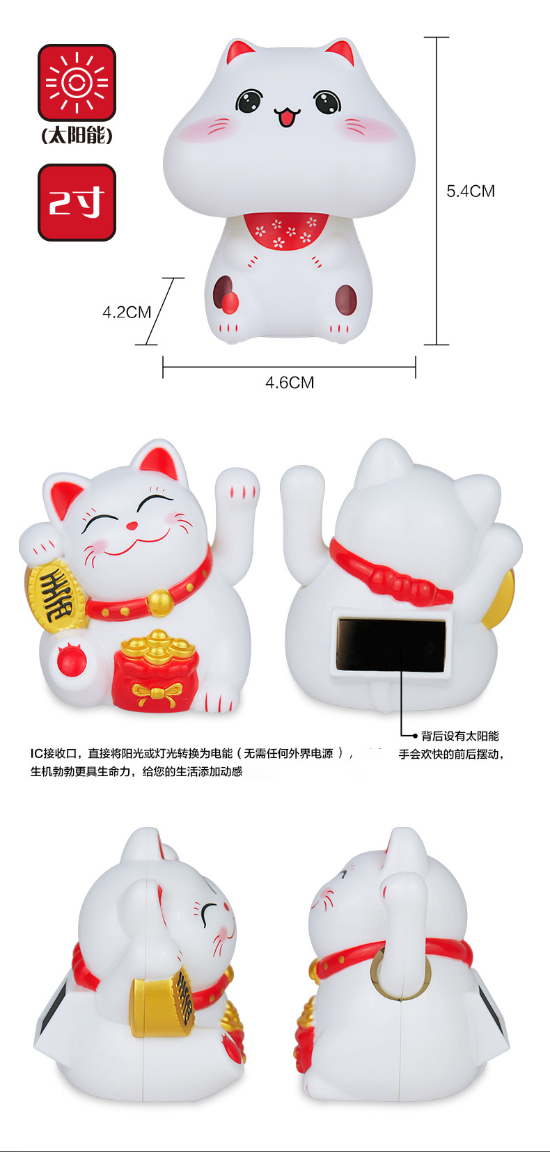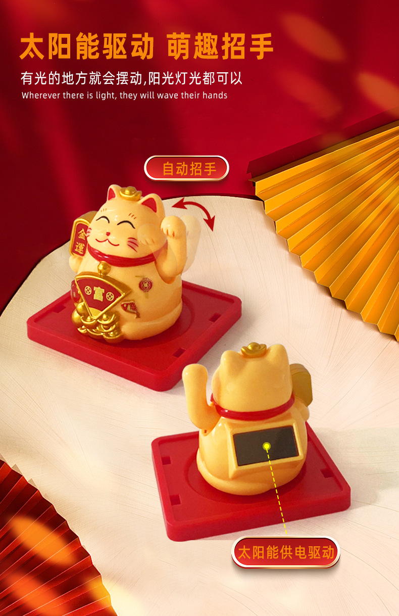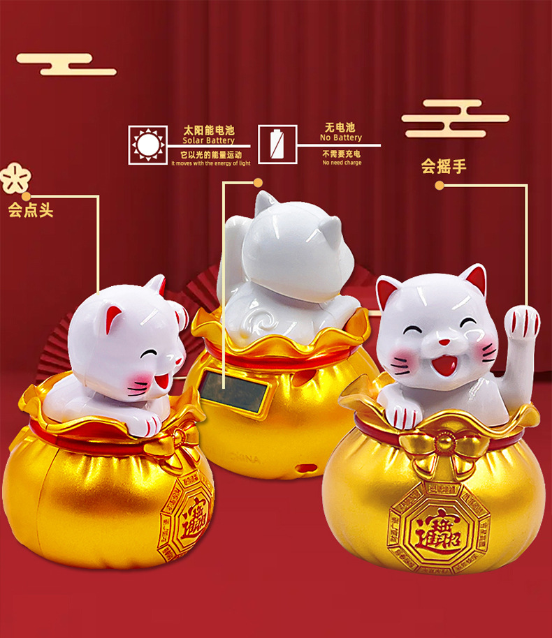 Hiasan Cat Keberuntungan Energi Surya Berisyarat Energi Cahaya Dekorasi Mobil Meja Lucu Hadiah Pembukaan Toko Rumah Lintas Batas