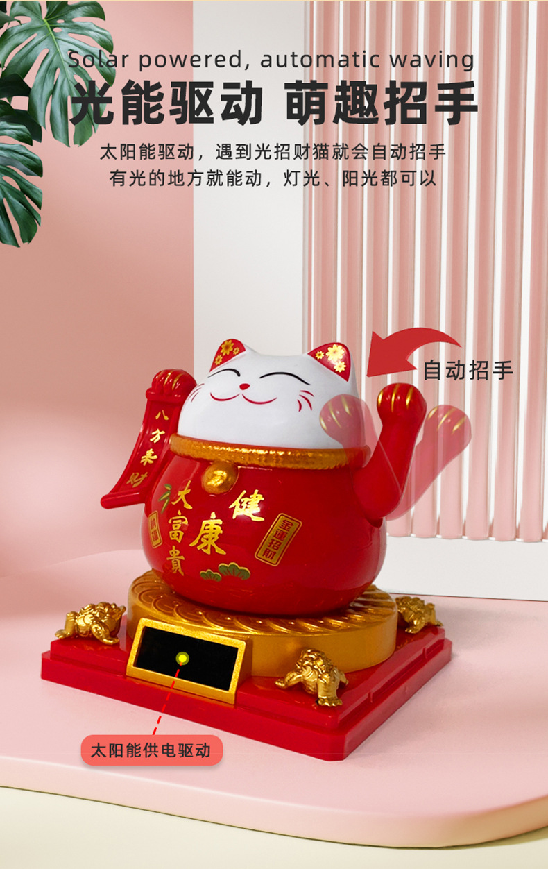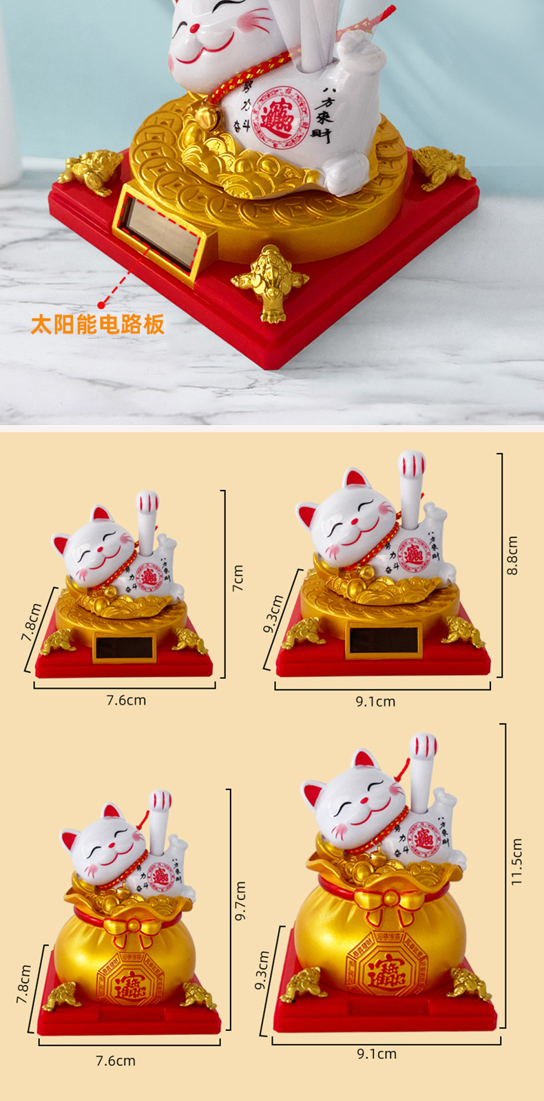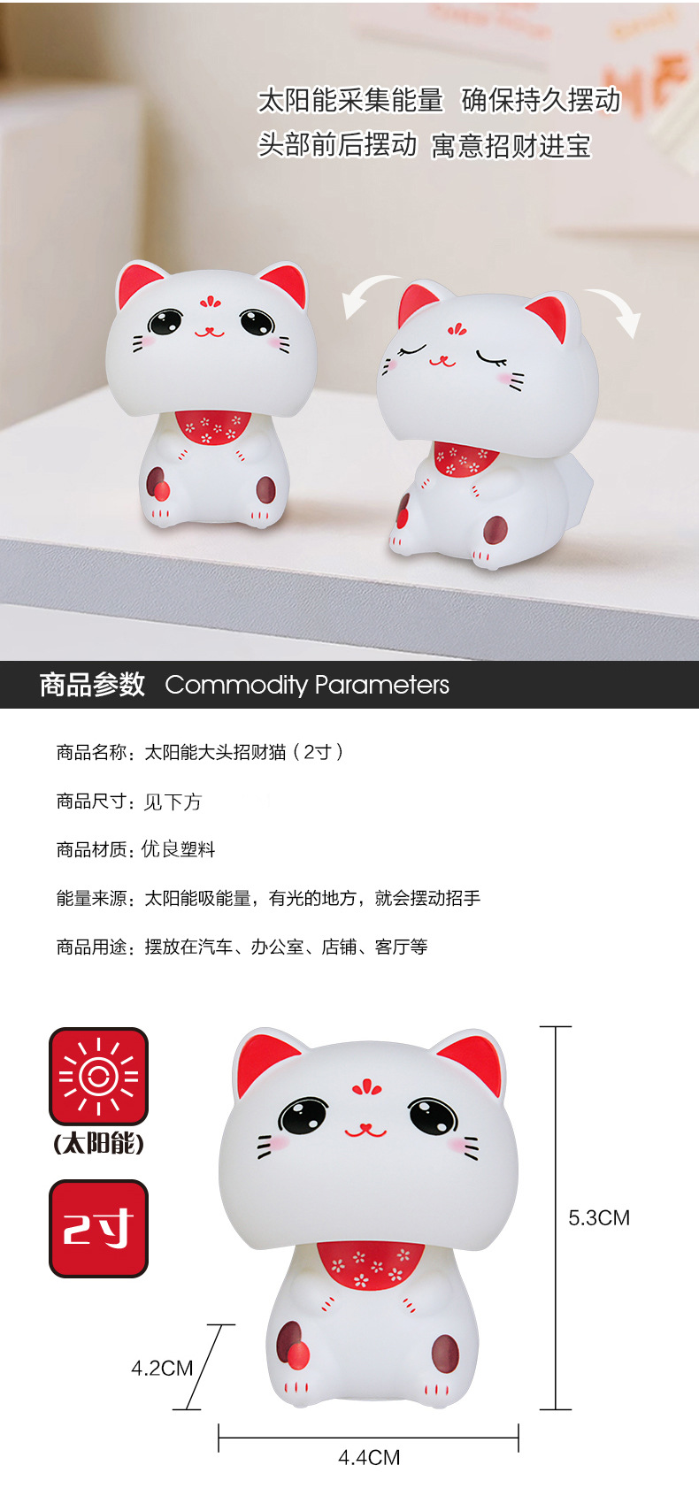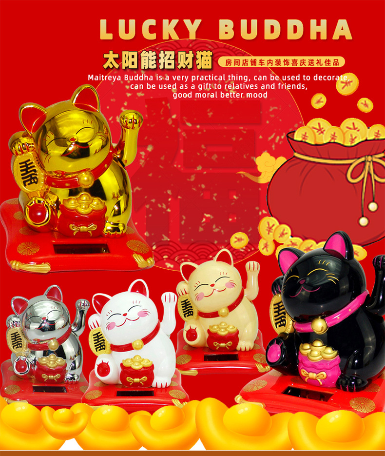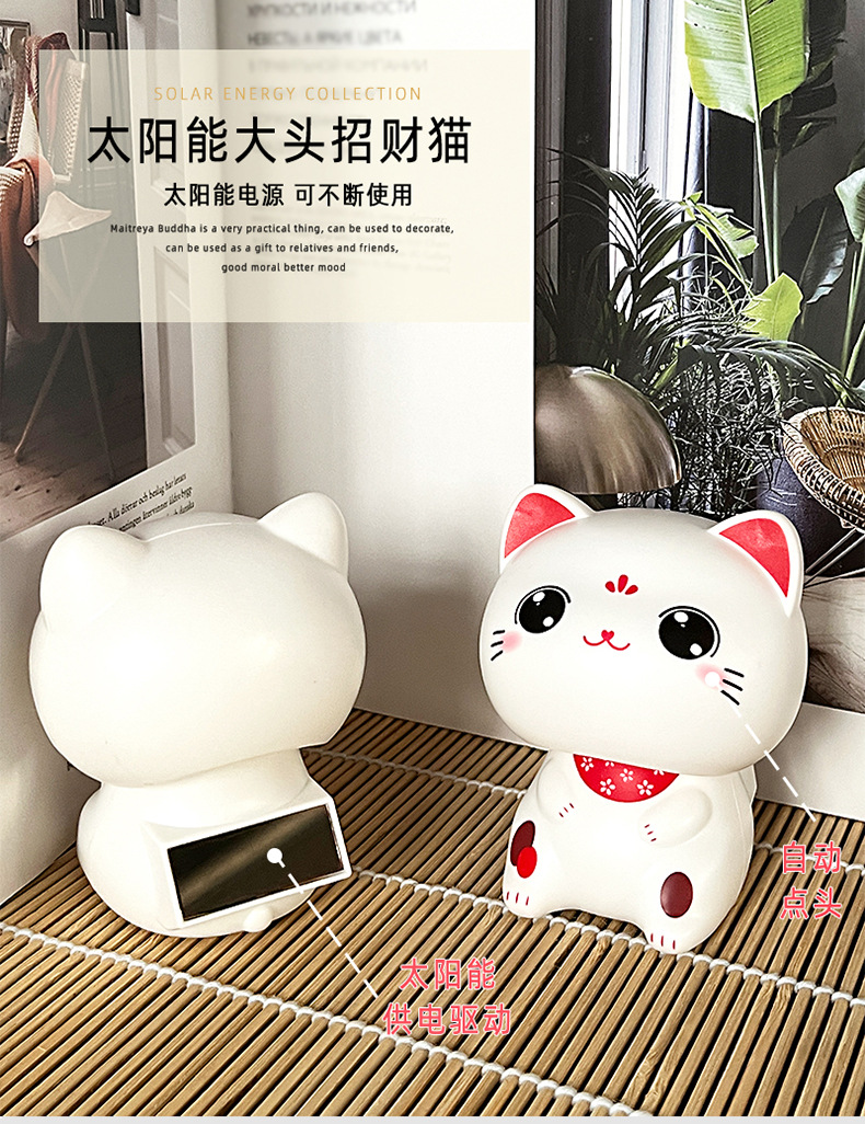 Hiasan Cat Keberuntungan Energi Surya Berisyarat Energi Cahaya Dekorasi Mobil Meja Lucu Hadiah Pembukaan Toko Rumah Lintas Batas