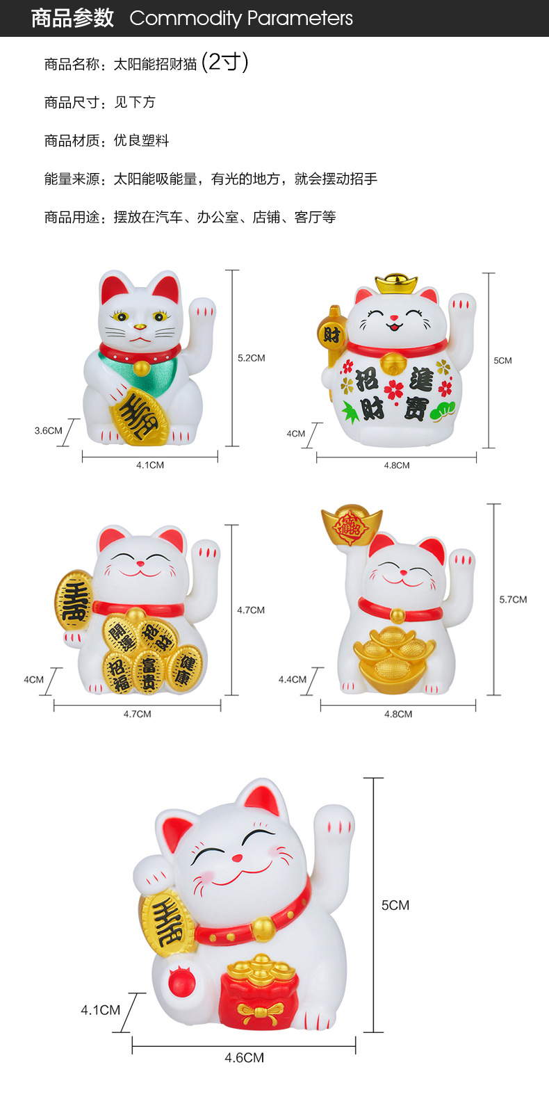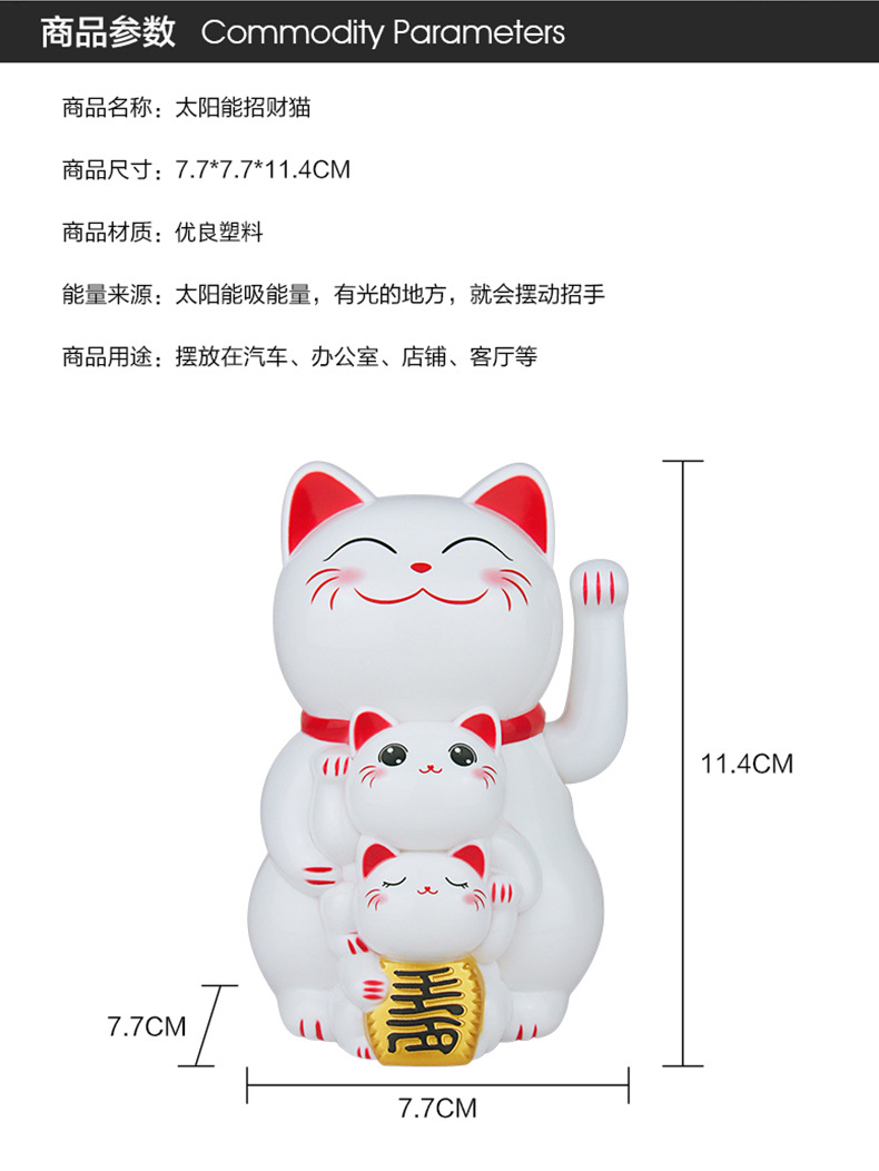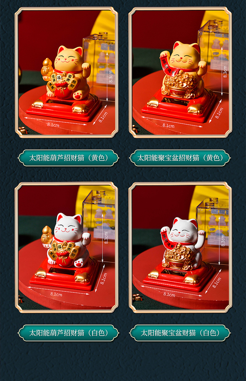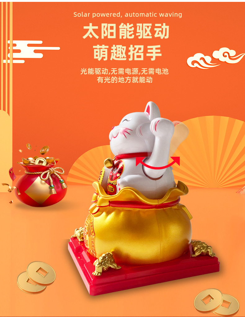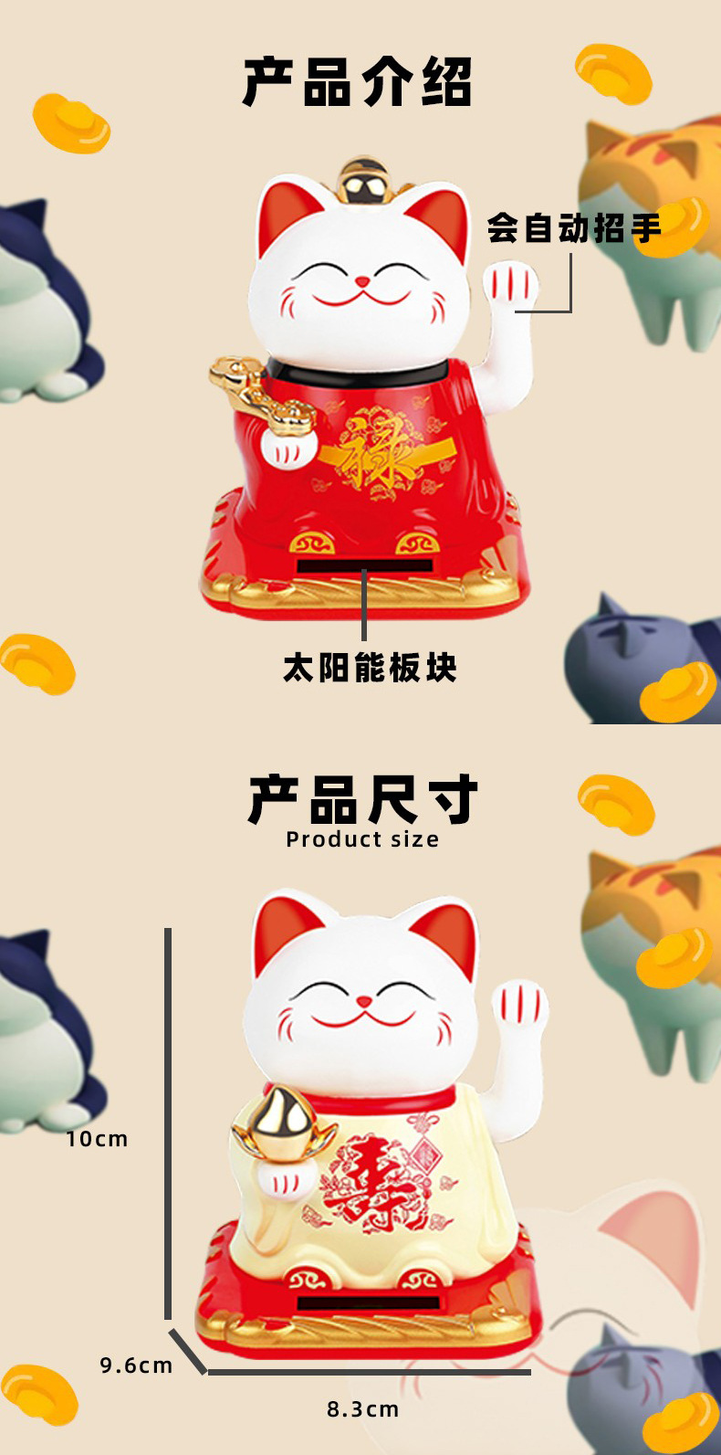 Hiasan Cat Keberuntungan Energi Surya Berisyarat Energi Cahaya Dekorasi Mobil Meja Lucu Hadiah Pembukaan Toko Rumah Lintas Batas