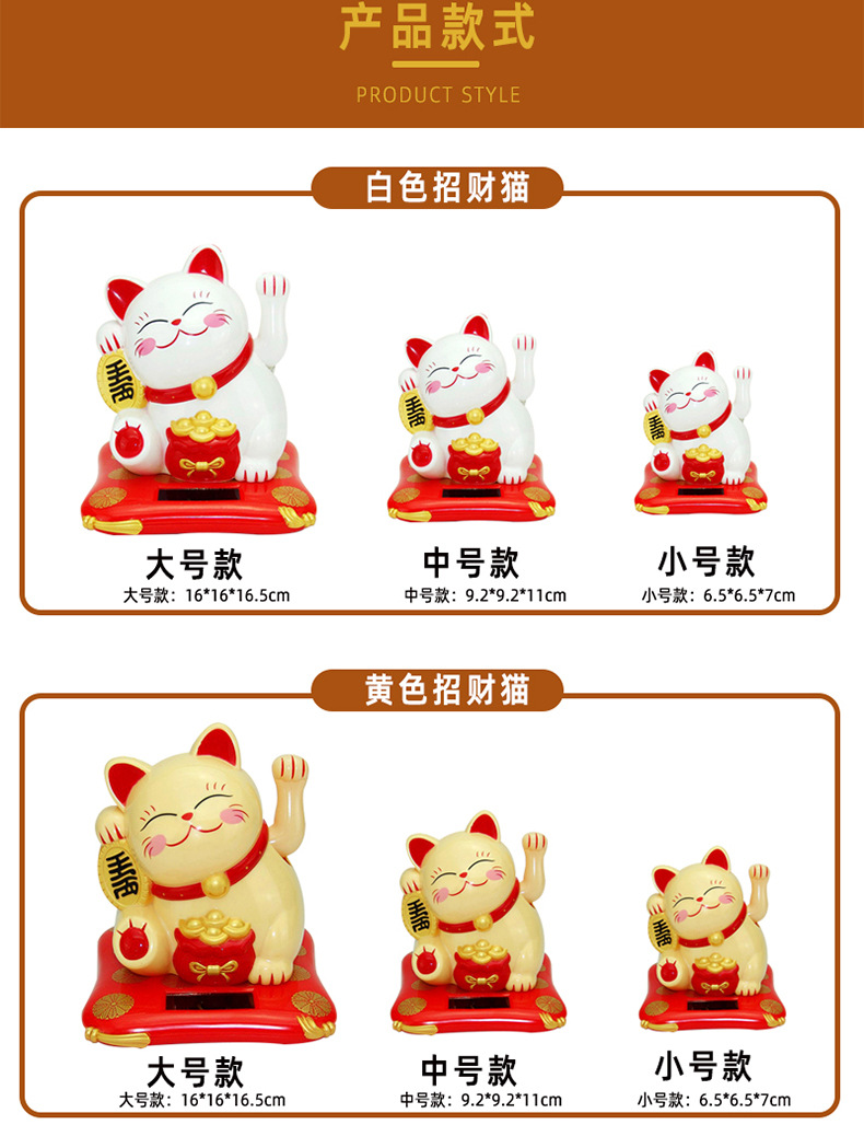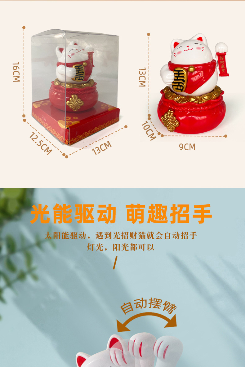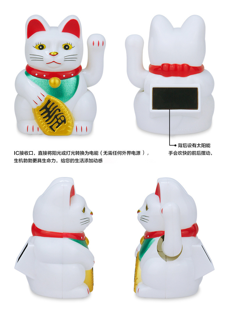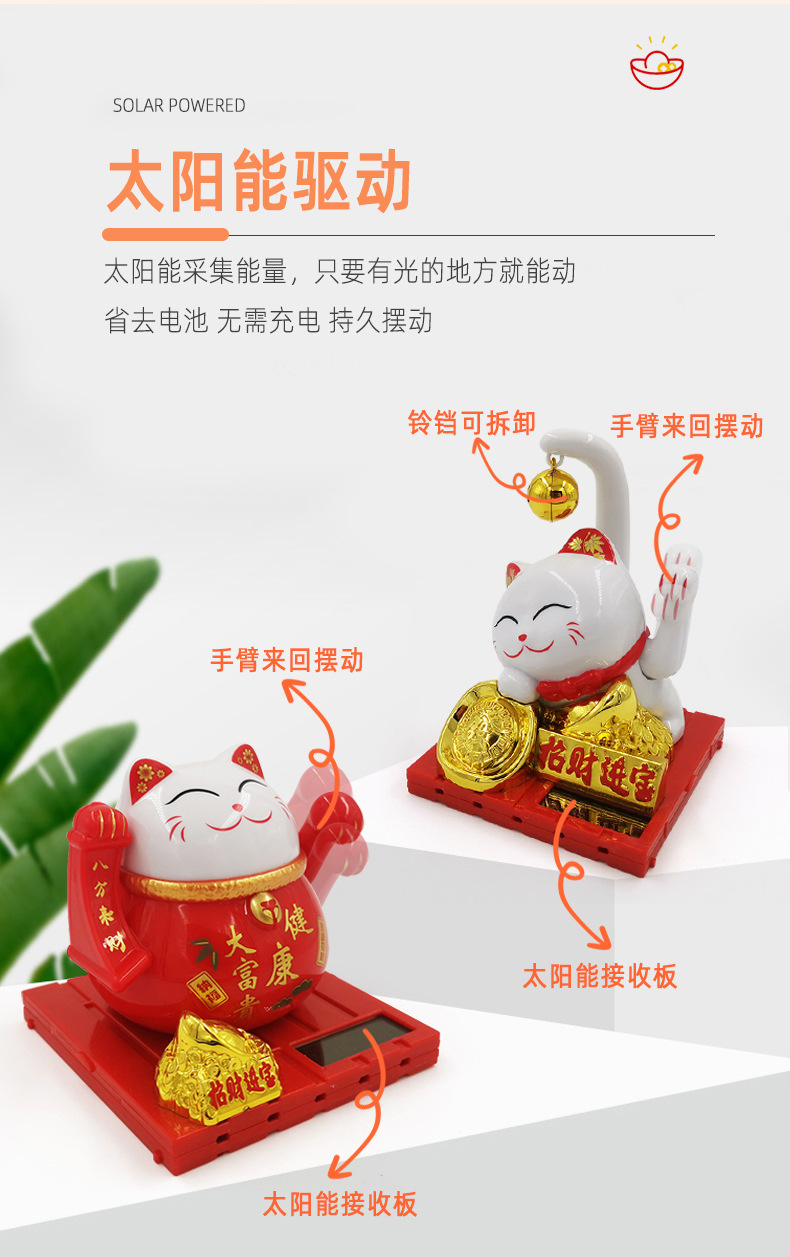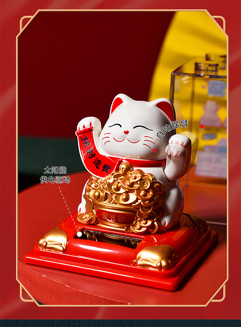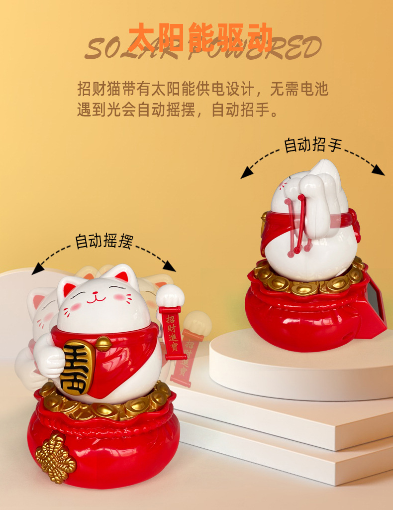 Hiasan Cat Keberuntungan Energi Surya Berisyarat Energi Cahaya Dekorasi Mobil Meja Lucu Hadiah Pembukaan Toko Rumah Lintas Batas