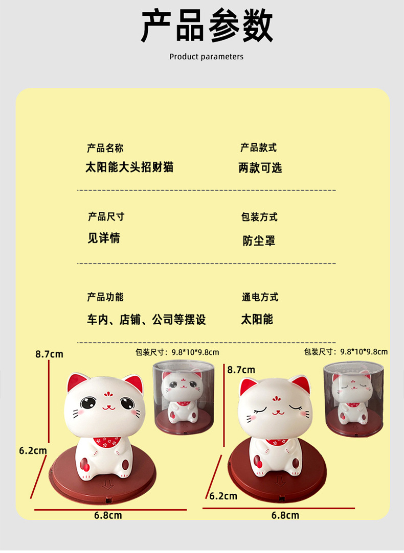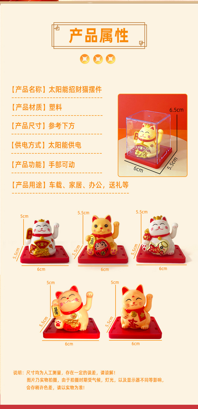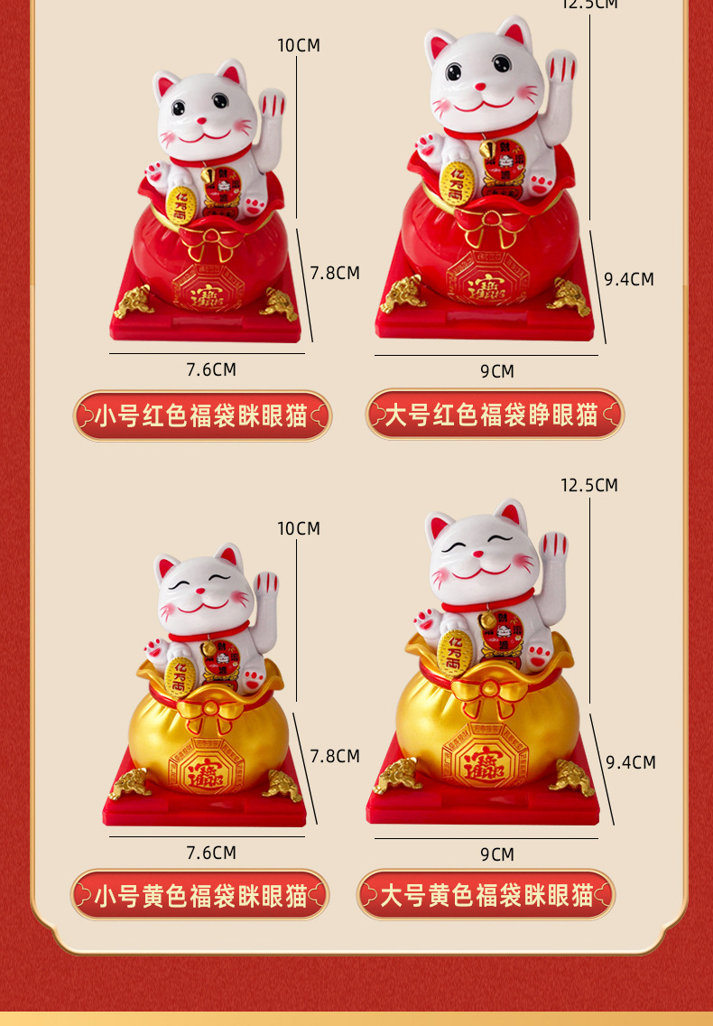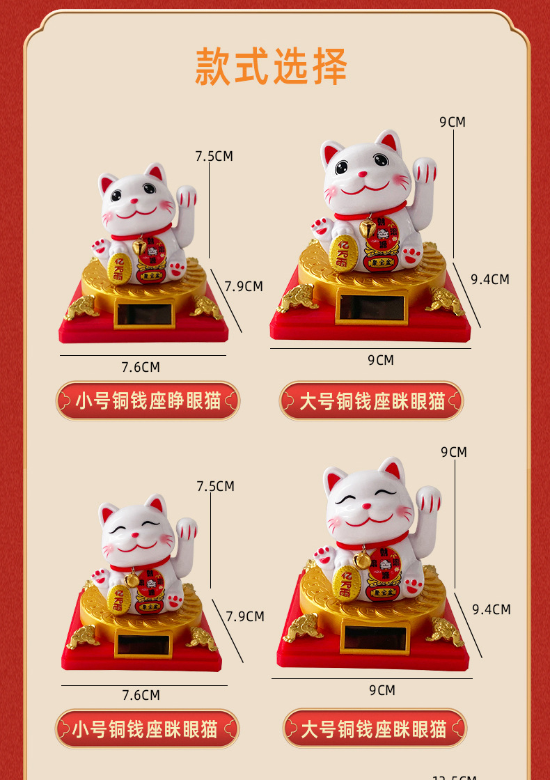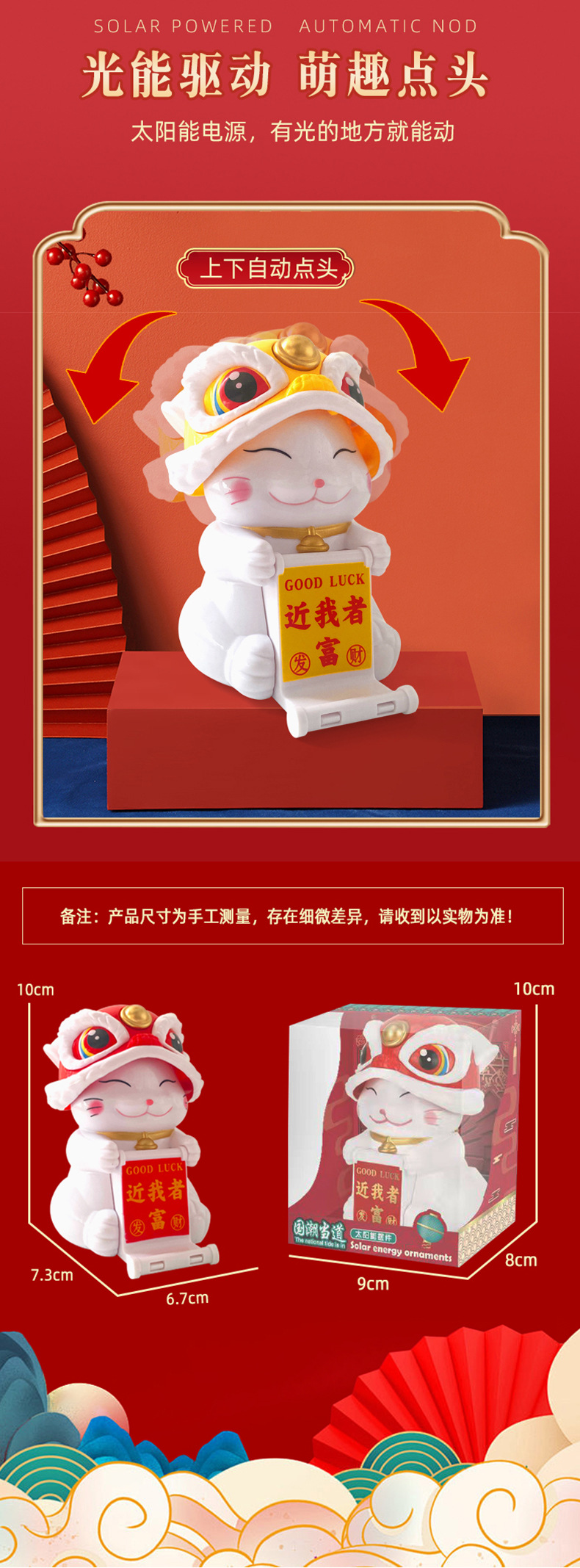 Hiasan Cat Keberuntungan Energi Surya Berisyarat Energi Cahaya Dekorasi Mobil Meja Lucu Hadiah Pembukaan Toko Rumah Lintas Batas