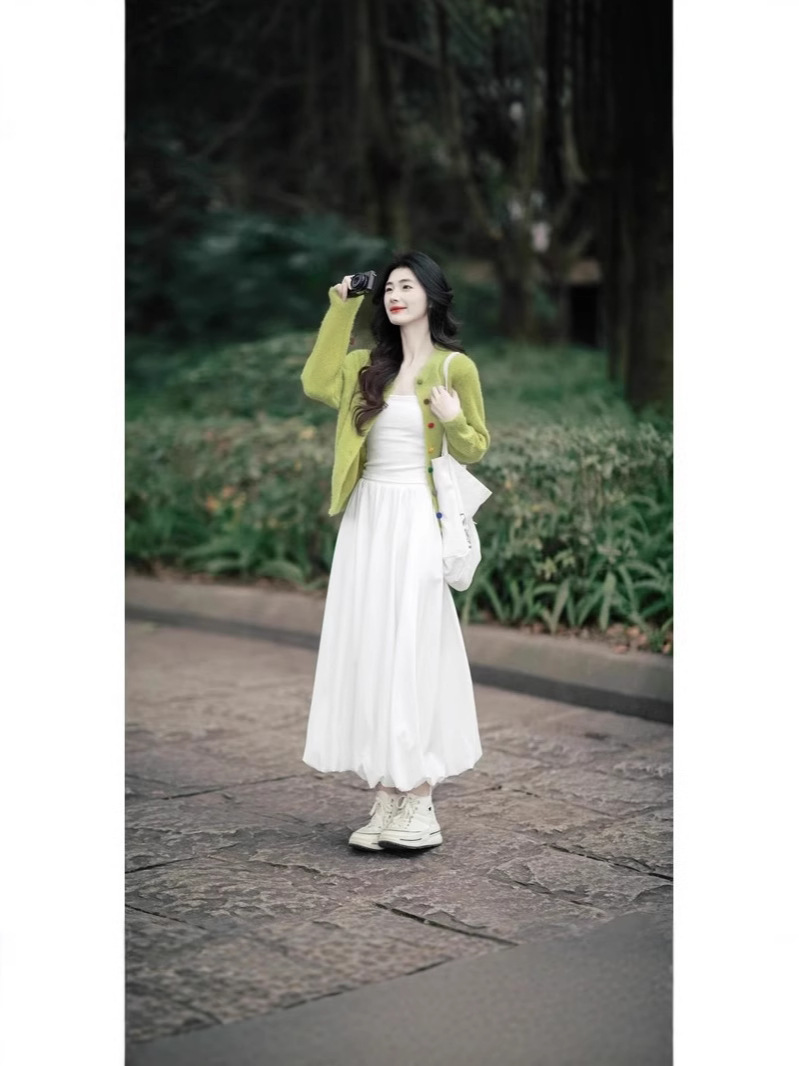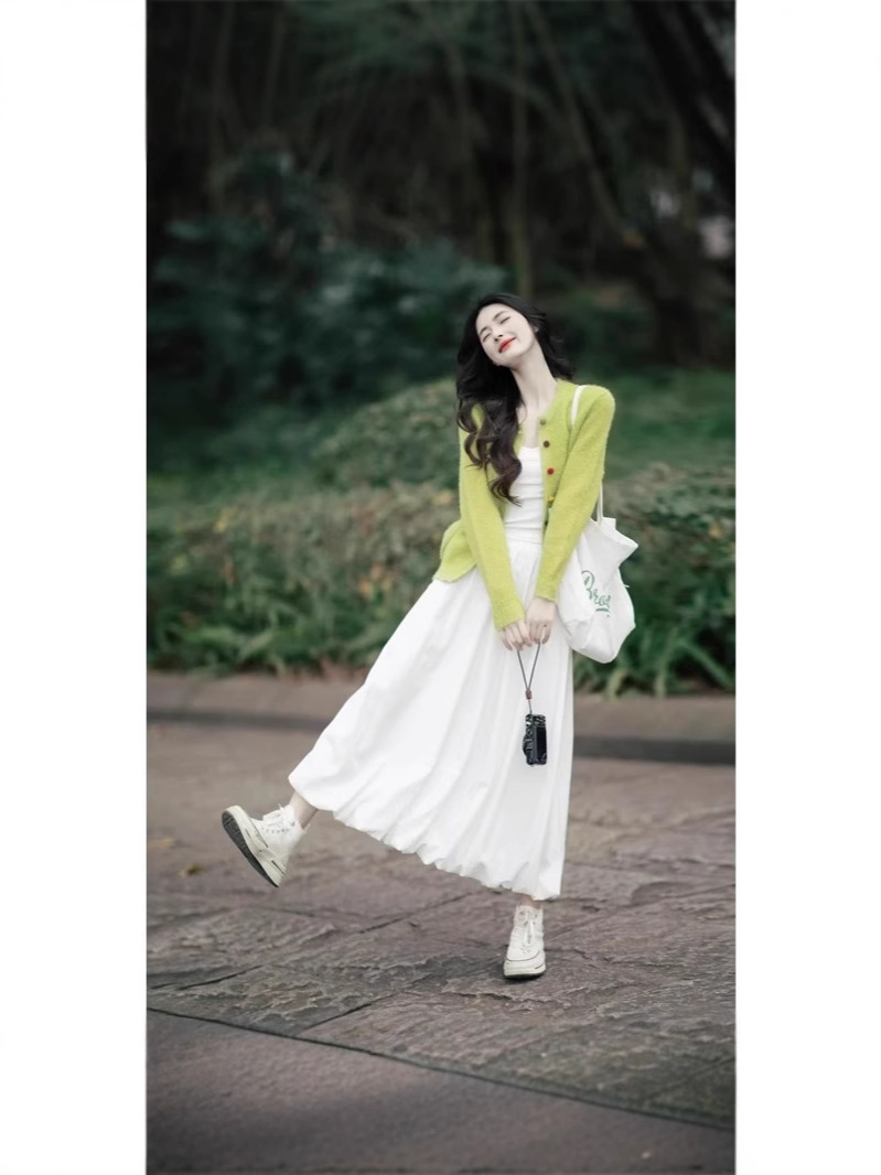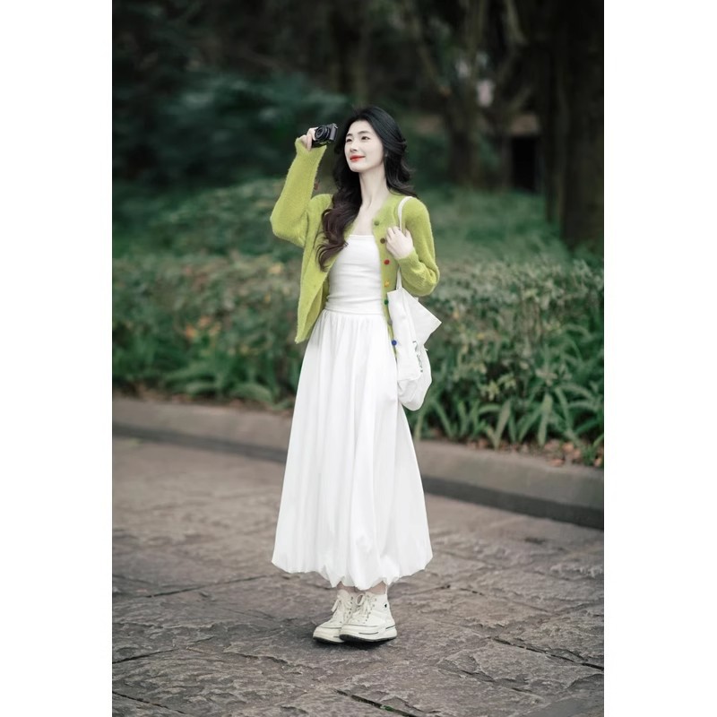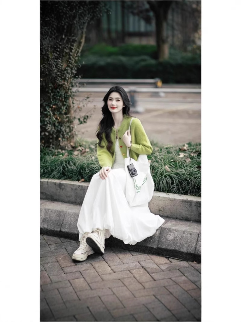 Set Dua Set Kardigan Rajutan Gaya Korea Dipakai di Kaichun Set Dua Potong Pakaian Wanita Modis Mengurangi Usia Model Baru 2025