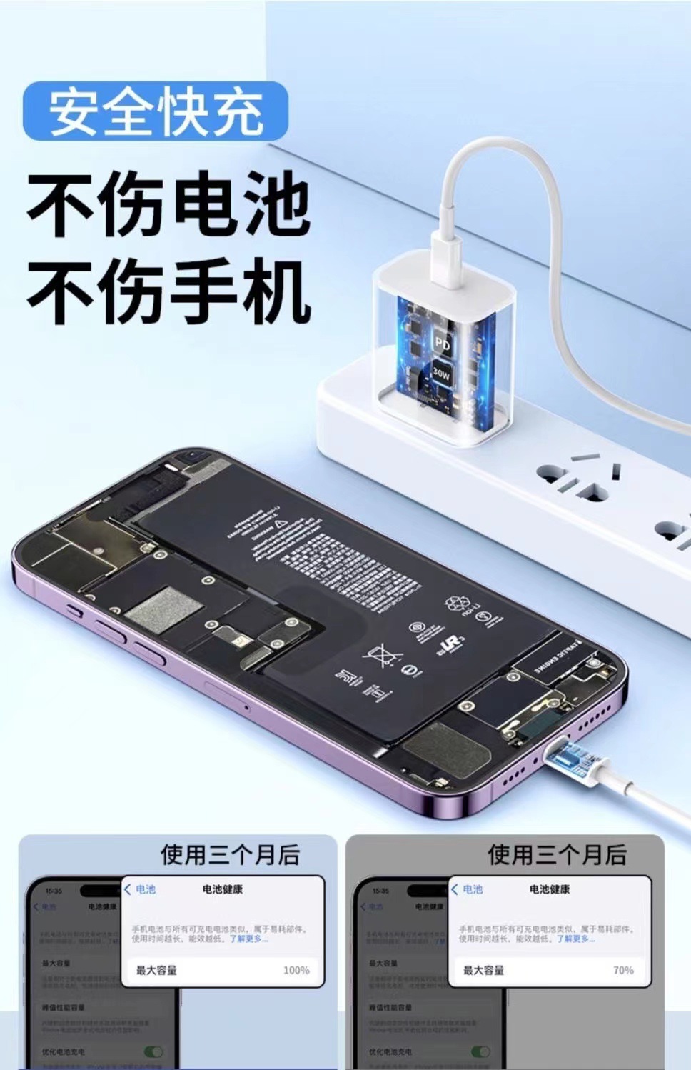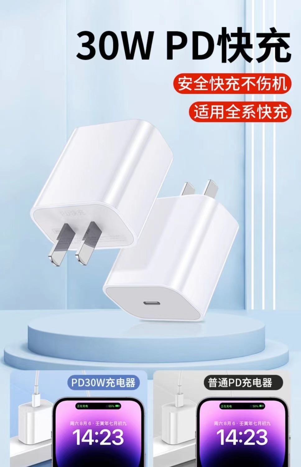 Kepala pengisi daya cepat, cocok untuk Apple 15 setelan charger pd30W kepala pengisian daya iPhone15 kabel data kepang